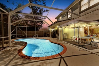 BRAND NEW ROOF & AC 2025 !! Welcome to your dream home! This spacious 5-bedroom, 3-bathroom residence is tucked inside a private gated community and offers the perfect combination of comfort, style, and tranquility. Enjoy the luxury of no backyard neighbors as you relax in your screened-in pool and patio area--ideal for entertaining or quiet afternoons. With one bedroom conveniently located on the first floor, this home provides flexible living arrangements for guests or multigenerational needs.The heart of the home is the kitchen, complete with granite countertops and a seamless flow into the large family room. Upstairs, the primary suite serves as a true retreat with two closets and a luxurious ensuite bathroom. Each additional bedroom offers generous closet space, and accordion shutters provide added peace of mind during storm season. Every detail is designed for easy living in a thoughtfully planned layout that feels both welcoming and functional. Set within a beautifully maintained community that offers resort-style amenities, you'll enjoy a lifestyle of comfort and convenience. From the private pool to the lush surroundings, and proximity to top-notch shopping, dining, and entertainment, this home truly has it all. Don't miss your chance to own this exceptional propertyschedule your private tour today!