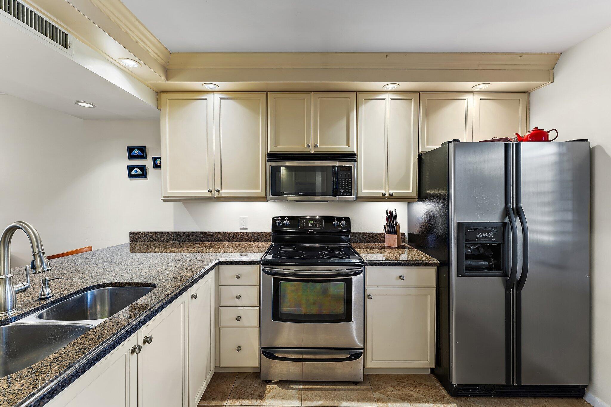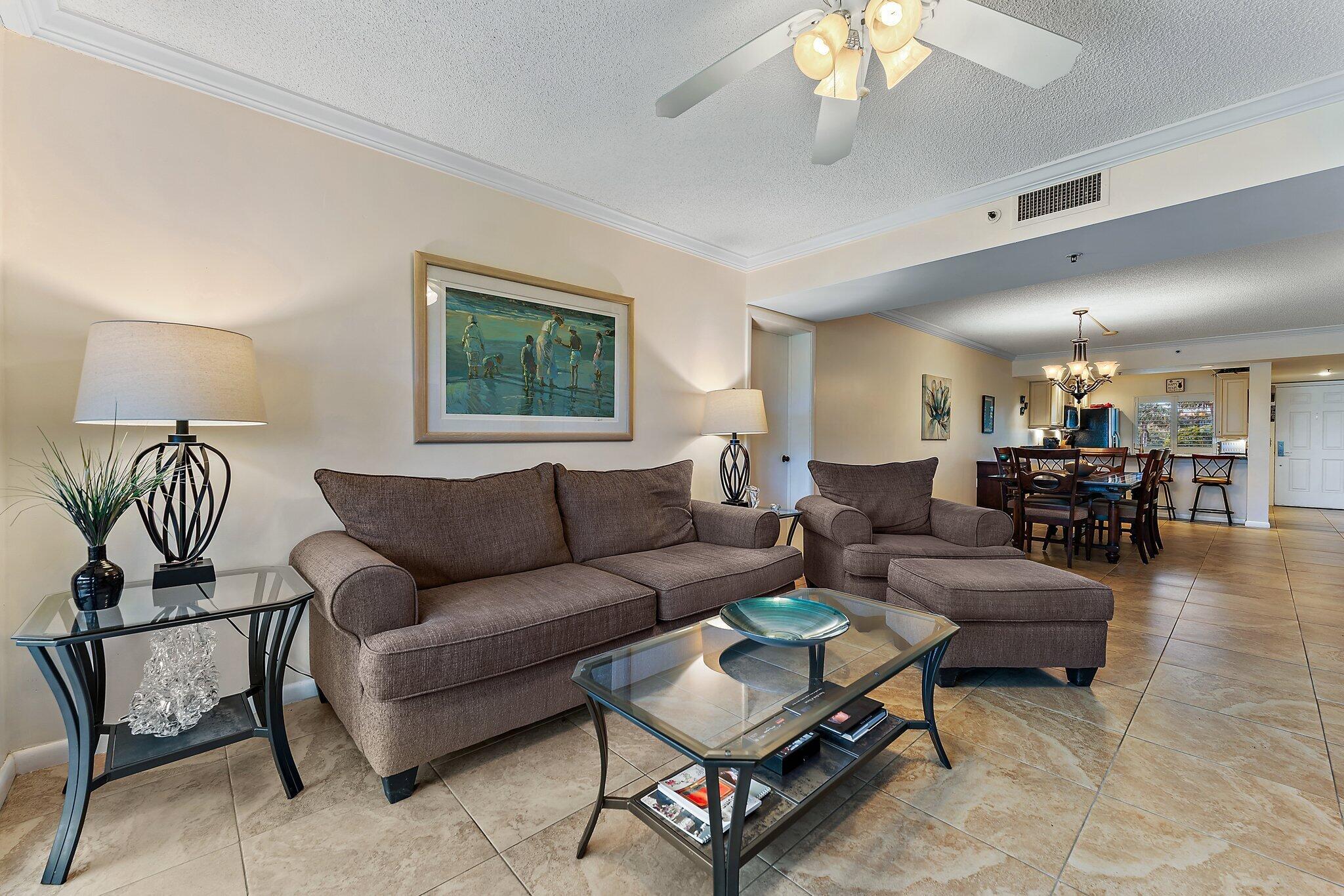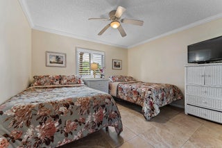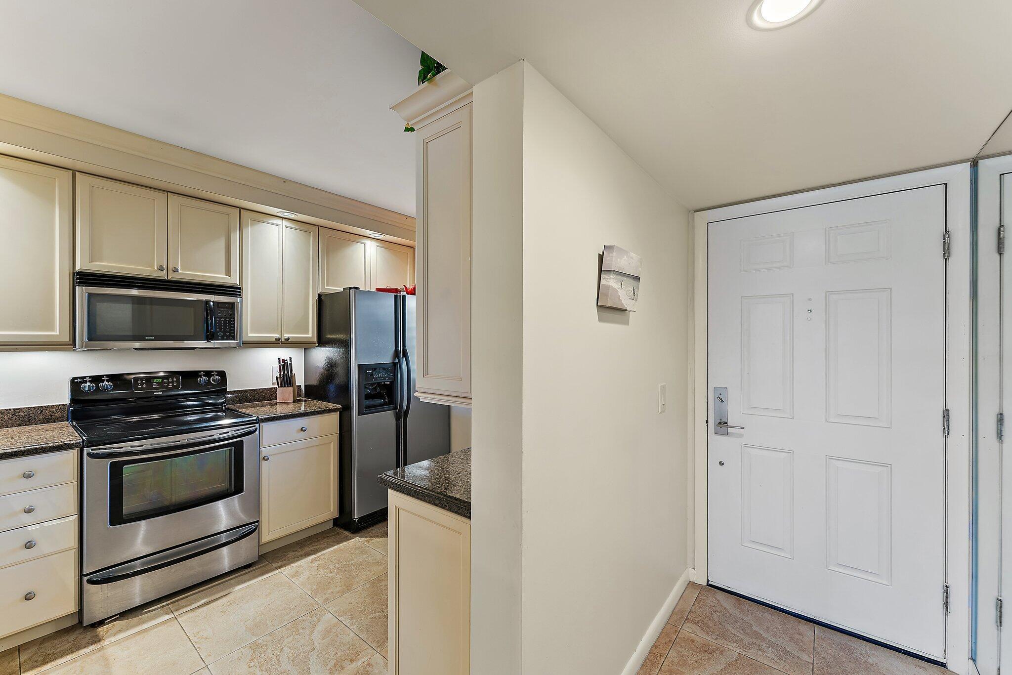Relax on your covered patio and watch the sunrise. A beautiful East facing first floor unit offering upgrades such as updated bathrooms, kitchen with granite counters and stainless appliances, tile floor throughout, impact sliders and a bonus room that can be used as an office, exercise room or extra guest space. Enjoy easy access to the pool, tennis and pickleball courts, and the private walkway to the white sandy beach across the street.