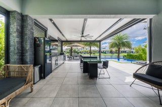 Welcome to the epitome of luxury living in Cascata at Miralago, located within Parkland's prestigious A+ school district. This rare Nile NexGen model offers a stunning lakefront setting and includes a private in-law suite complete with its own kitchenette and laundry area-perfect for extended family or guests. Enjoy resort-style outdoor living with a custom saltwater pool, fully equipped summer kitchen, and an expansive pergola with motorized ind/sun screen ideal for entertaining. Inside, this 5-bedroom, 4-bath, 2-car garage home showcases high-end finishes, meticulous attention to detail, and breathtaking pool and lake views throughout. Energy efficiency is a highlight - with over $50,000 in solar panels, you'll enjoy significantly reduced energy bills while living in comfort and style. The main level features elegant dining room that opens to a spacious great room perfect for both grand gatherings and intimate moments. Designer porcelain tile flooring graces the first floor, while the second level boasts premium hardwood floors. The primary suite includes built-in custom closets for added luxury and functionality. The allure of Cascata doesn't end at your doorstep. As a resident, you'll enjoy the exclusive privileges of two clubhouses: the Mira Lago Clubhouse and Club at Cascata. These exceptional facilities redefine leisure, offering resort-style pools, kid's water parks, tennis and racquetball courts, outdoor & indoor basketball courts, billiards, saunas, and a state-of-the-art fitness centers.The community is not just a place to live; it's a vibrant and engaging environment that hosts regular food truck nights and various social events, ensuring a lively and connected community spirit. Seize the opportunity to experience the epitome of Florida living.