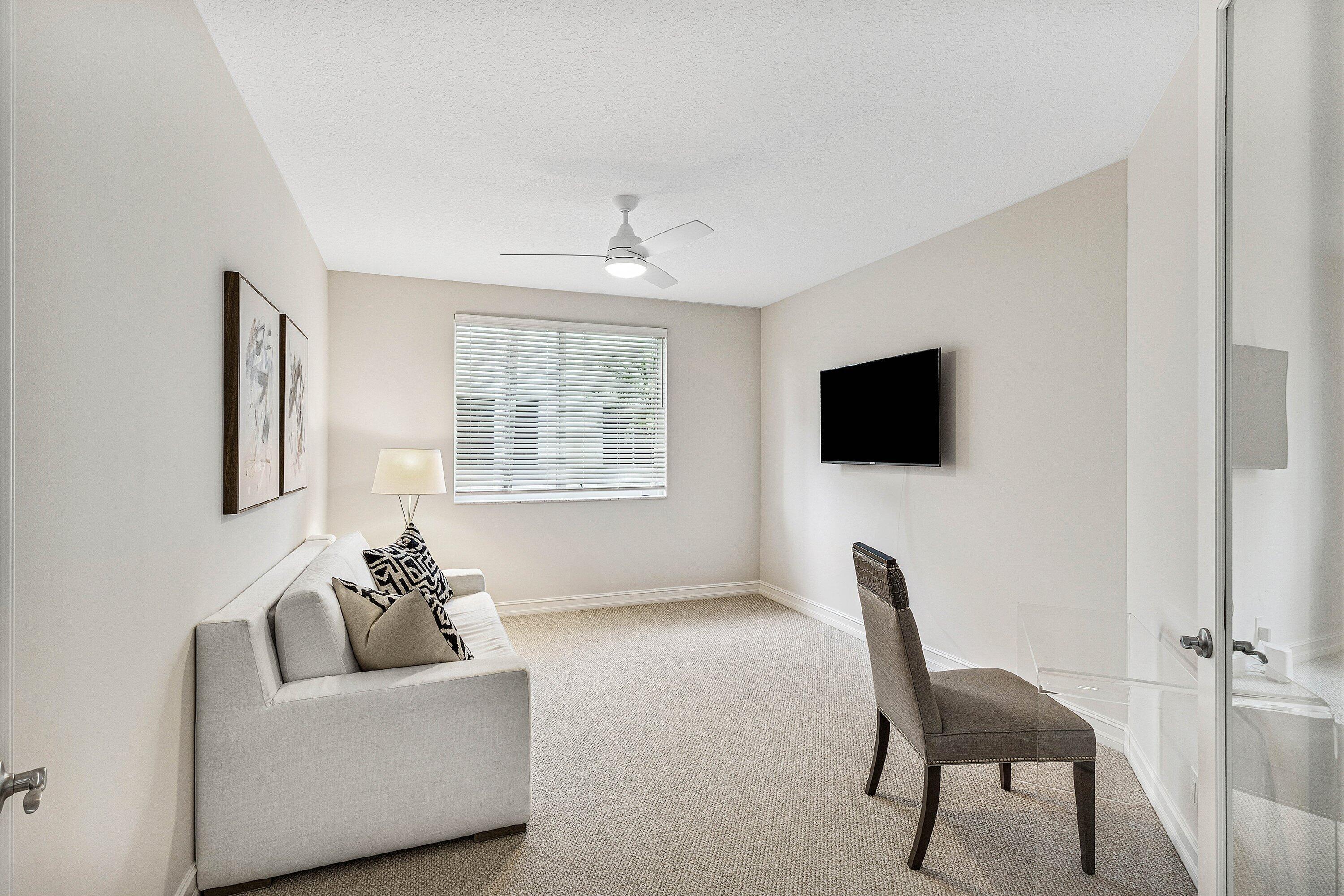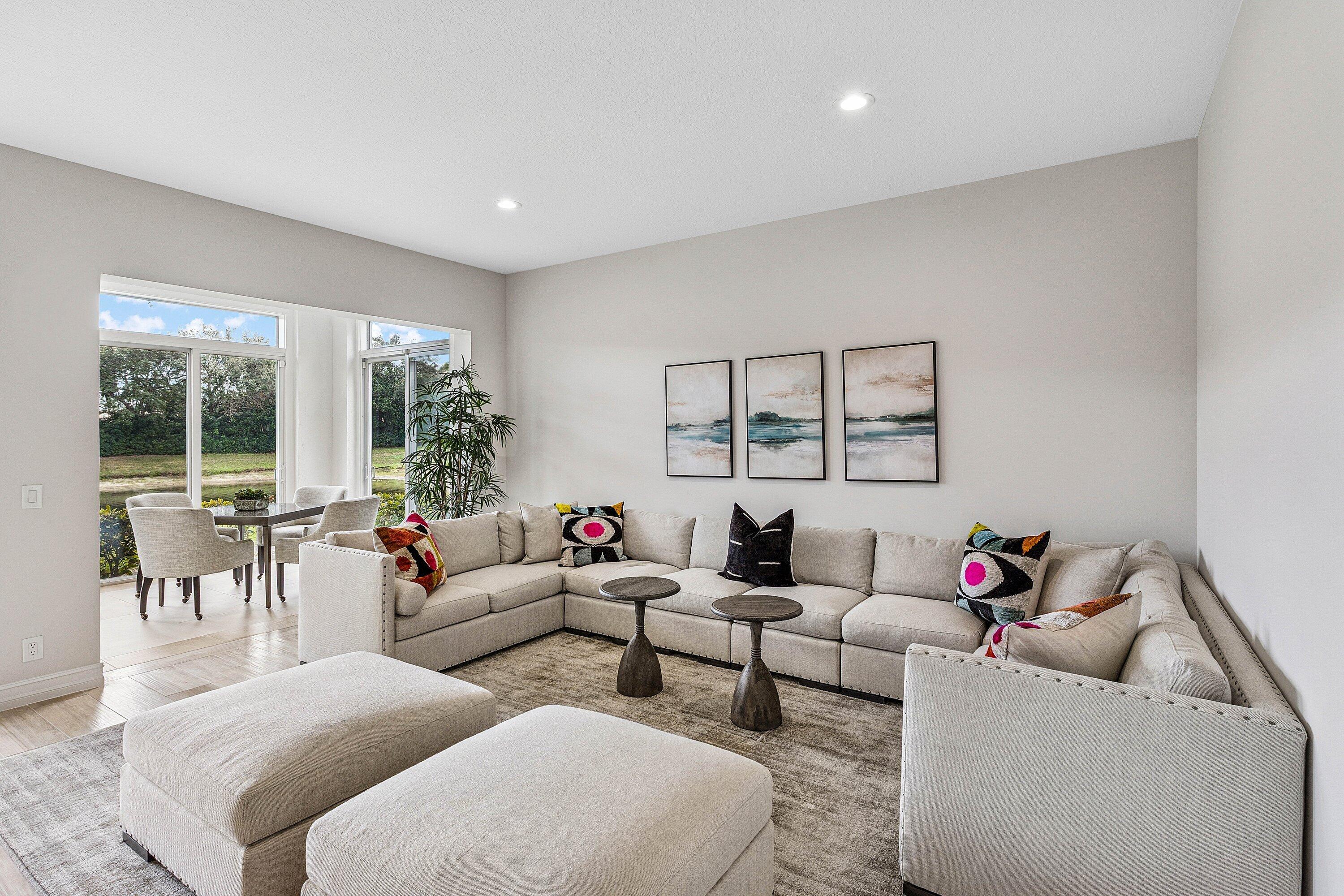 This stunning, newly renovated 1st-floor unit condo at 106 Palm Bay Drive, B, in Palm Beach Gardens offers 2 bedrooms, 2 bathrooms, plus a versatile den/office, spanning 2,085 SF. Enjoy serene and private lake views from the bright sun filled patio, complete with impact glass sliders for peace of mind. The modern interior features new flooring, stainless steel appliances, and sleek quartz countertops. A 2-car garage adds convenience. Available for annual unfurnished rental at a 6 month minimum. No membership conveyed with this rental. Experience luxury and tranquility in this exquisite Ballenisles retreat!