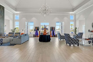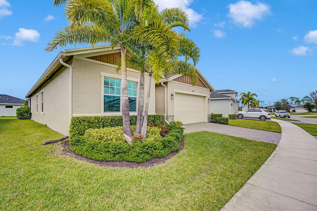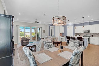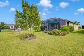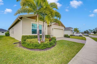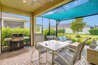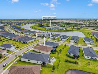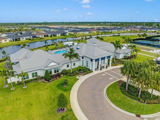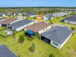 Beautiful lakefront 3/3 home w/office in the vibrant 55+ gated community of Veranda Preserve. This open floorplan offers 9-foot ceilings, plank tile flooring throughout, crown molding, ceiling fans & IMPACT glass. Enjoy the gourmet kitchen with S/S appliances, GAS range and large bar top island w/quartz countertops & backsplash, large dining area & family room w/a mounted 75'' TV that conveys. The primary suite offers views of the lake, master bath has dual sinks and accessible walk-in shower. Relax on your extended covered lanai w/ gas hook-up for your grill overlooking the sunset on the water. Resort style clubhouse offers a heated pool/spa, cafe, fitness room, movie theater, card room, tennis, pickleball and monthly planned activities. Awesome location near the FL Turnpike and I-95