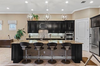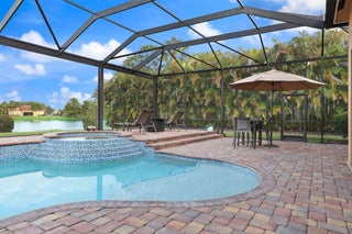 Immaculate custom-built lakefront home in the gated Copperleaf community. Built in 2016, this stunning 3-bedroom, 3-bath residence offers 2,500 sq. ft. of luxury living with a 3-car garage extended 4 ft and insulated doors. Upgrades include impact windows and doors, crown molding, plantation shutters, zero-corner sliders with motorized shades, and a custom saltwater pool & spa with lake views. Enjoy a gourmet kitchen with marble backsplash, wine/beverage cooler, and custom pantry. Tray ceilings, wood floors, surround sound, and custom closets throughout. Copperleaf amenities include clubhouse, fitness center, playground, and heated pool. Golf cart access to Crane Creek Golf & Country Club available. Truly turnkey and meticulously maintained!Schedule your private showing today!Immaculate custom-built lakefront home in the prestigious Copperleaf community where timeless elegance meets modern comfort. Built in 2016, this beautifully maintained 3-bedroom, 3-bath residence offers 2,500 square feet of refined living space and a 3 car garage extended an additional 4 feet, featuring insulated doors and dual LiftMaster openers with battery backup. Inside, sophistication is evident in every detail impact windows and doors, crown molding throughout, and plantation shutters on every window. The family room showcases striking zero corner sliding doors with motorized shades, opening seamlessly to the screened outdoor retreat. Enjoy a custom saltwater pool and spa with water features, framed by a panoramic picture-window enclosure overlooking the lake. Entertain with ease in the outdoor kitchen with SunBrite TV, designed for year-round enjoyment. The gourmet kitchen features a polished marble backsplash, undercabinet lighting, wine and beverage cooler, and a custom-designed walk-in pantry. Tray ceilings elevate the master suite, family room, and flex room (ideal for a home office or 4th bedroom). Surround sound is pre-wired in the master, family, and flex rooms for an immersive experience. All bathrooms are adorned with floor-to-ceiling tile and frameless 3/8" glass shower enclosures. Additional upgrades include wood flooring in the master and flex rooms, central vacuum system, custom closets, premium lighting and fans, and an upgraded laundry room with built-in cabinetry, sink, and high-end washer/dryer. Residents of Copperleaf enjoy a private clubhouse, fitness center, children's play area, and heated community pool, with optional membership at Crane Creek Golf & Country Club just a golf cart ride away for a round of golf, happy hour, or dinner with friends. This is a truly turnkey luxury home, offering refined design, exceptional craftsmanship, and serene lakeside living. Schedule your private showing today!