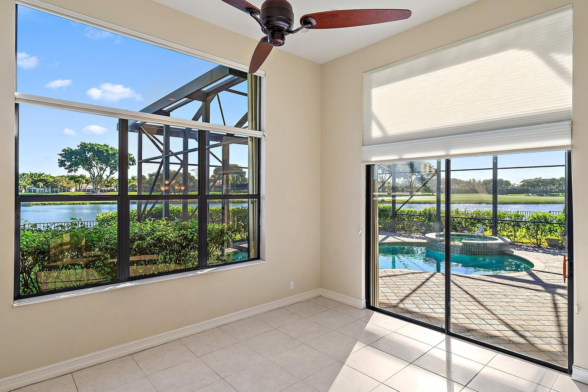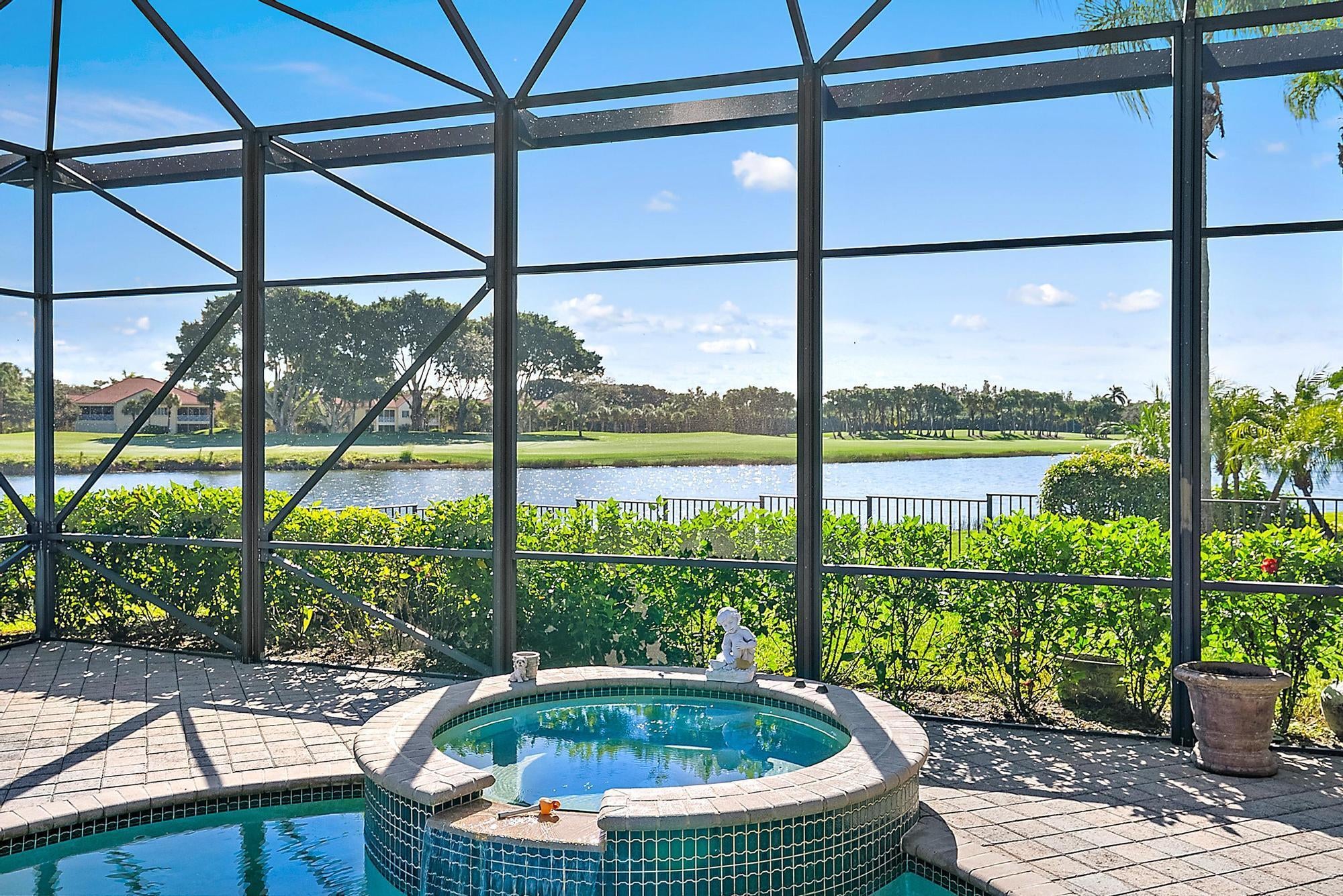 IMMEDIATE PREMIER GOLF MEMBERSHIP AVAILABLE with the purchase of this extraordinary home--perfectly situated on one of the most coveted lots in Blue Heron Bay and all of Ibis. Tucked away on a private cul-de-sac, this residence enjoys double fairway views of the newly redesigned Nicklaus Heritage Course, capturing the 13th and 15th fairways in breathtaking fashion. This home has been thoughtfully upgraded for both comfort and peace of mind. A new roof (2022), new HVAC system (2024), and new pool equipment--including heater, pump, and filter (2024) ensure lasting reliability. Accordion shutters throughout provide full hurricane protection, completing the package of essential improvements that make this home a great choice for the buyer who wants to inherit important upgradeslocated on one of Ibis's most incredible lots. Beyond its updates, the property itself is exceptional. The oversized lotamong the largest in Blue Heron Bayoffers a rare combination of space, privacy, and panoramic views. With an unusually large front yard, expansive side yards, and a broad backyard that opens to the lake and course, the setting feels both open and secluded. From the pool area, no neighboring homes are visibleonly tranquil water and the sweeping fairways of the par-5 15th hole. The popular Alaina model offers 3 bedrooms, 3 baths, plus a den, and includes a full two-car garage with a separate golf cart garage. Inside, soaring ceilings, abundant natural light, and an open, airy layout define the living spaces. The living and family rooms flow seamlessly to the screened patio and pool area, where the panoramic golf and lake views take center stage. Whether hosting guests or enjoying quiet mornings, every space has been designed to celebrate the home's incredible setting. The large screened patio extends your living space outdoors, ideal for entertaining, dining al fresco, or simply relaxing in total privacy. The pool area, enhanced by the brand-new equipment, offers sparkling blue water framed by tropical landscaping and endless views of the Nicklaus-designed Heritage Course. Located within Blue Heron Bay, Ibis's fastest-selling new community when it was first built, this home provides easy access to the community's world-class amenities, including a 90,000-square-foot clubhouse, three Nicklaus-family championship golf courses, five exceptional restaurants, a state-of-the-art fitness complex and spa, and premier tennis and pickleball facilities. With its rare double fairway panorama, significant recent upgrades, and immediate availability of a Premier Golf Membership, this home offers a unique combination of peace of mind, beauty, and prestige. A rare find in Blue Heron Bay, this residence defines the best of Ibis livingelegant, move-in ready, and set against one of the most spectacular backdrops in Palm Beach County.
