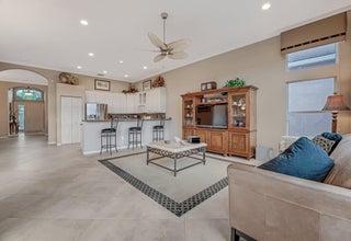WATER VIEWS ARE OUTSTANDING! BEST PRICE EVER!! This spacious light, bright 3 bedr, 2.5 bth home is located on one the most private peaceful,serene lots in community. Long lake southern views & oversized extended screened lanai offers tranquility like none other! Sliders from the family room &owners suite + high transom windows make this home light throughout the day!No carpet! Neutral color tile flooring on a diagonal throughout, in pristine condition! Newer A/C & H/W heater, spa tub, add to the high quality upgrades this home offers! Fabulous oppty to own a highly desirable home,with accordian shutters throughout for best storm protection! HOA fee includes outside painting of the home, cable TV, hi speed wi-fi, security system, lawn maintenance, landscaping, amenities galore! LOVE IT!