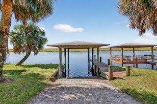 What we have here is a unicorn location! Situated on 1.214 acres of private land with over 450' of waterfrontage that stretches across the back and along one side of the lot. These listings don't come up for sale very often, so don't delay in checking out this solidly built 2221 SF CBS home. Whether you're into boating, fishing, kayaking, or just enjoying nature at your fingertips, this is a prime spot for it all! Backed up to the Rim Ditch/C-24 canal and right next to the Locks to bring you into Lake Okeechobee, we've got the best spot in town. Enter the fenced and gated yard and you can immediately appreciate the yard space. You'll have parking for everyone on the long driveway with circular extension. There is a covered carport for protecting your toys, as well as a 2-car garage,Launch your own kayak or boat on your own ramp with boathouse cover or chill on the covered dock and watch the wildlife. On the land, you'll have room to let your imagination run wild. Grow your own food, raise your own animals, build a pool, do whatever makes you happy! You'll inherit fruit trees such as avocado, mango, banana, and loquat too! The mature trees give an amazing canopy of shade for the ultimate in relaxation. I can just picture you in that hammock! The metal roof was replaced in 2018, so no worries about the roof. On the inside, you'll find a welcoming foyer entry that opens up to the large living room. The kitchen has lots of counterspace for prep and limitless storage with 2 big pantries. Island cooktop with separate wall oven/wall microwave combination. You'll get to enjoy the view while washing dishes at the kitchen window. Eat-in kitchen with a full dining area, so you can take a pick where to eat. As if the living room weren't big enough, there's also a den, so no arguing over who's watching what on the TV! You'll find a bonus room extended off of the primary bedroom, a great place for a dressing room, office, nursery, reading room...you decide the best use of that space. Interior laundry room with more storage space. The home is on well and septic, which helps with utility costs. The well has a full softener and treatment system with a whole-house reverse osmosis system. There's so much more to know, but you'll just have to call and make an appointment!