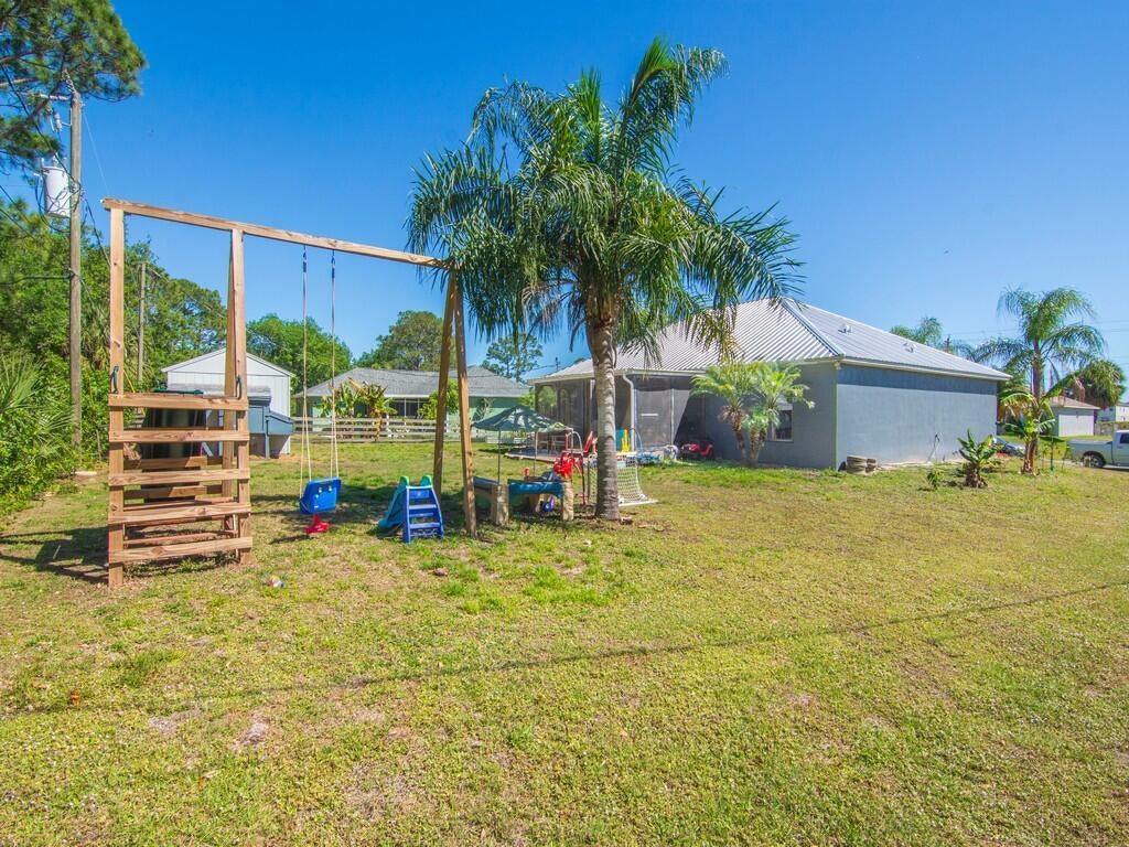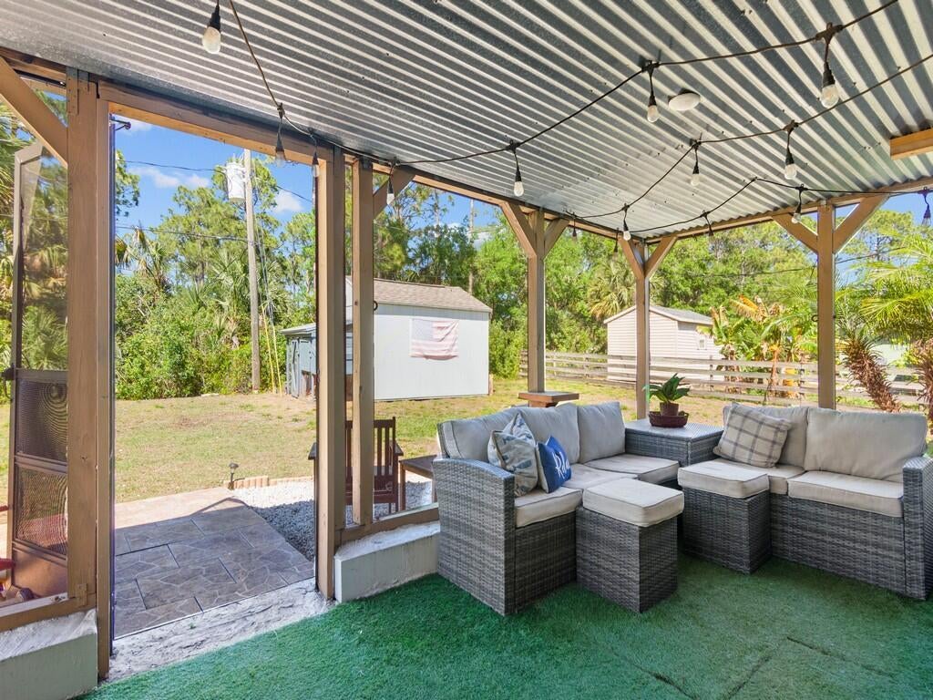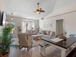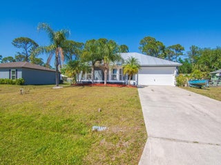 Cozy and well maintained home in convenient location just minutes to I-95 and shopping. NO HOA. Metal roof 2022, Trane AC 2021 and water heater 2021 = peace of mind for years to come. Super large island kitchen w/ pantry & stainless steel appliances opens up to dining and living area. MAN CAVE garage is air conditioned, offers additional space but can easily be converted back.is tub/shower combo w/ full size jetted tub in master bath. Spacious, screened back porch is lined with artificial turf. Chicken coop w/chicken in the back yard may convey. Extra cabinets in the laundry closet.
