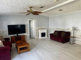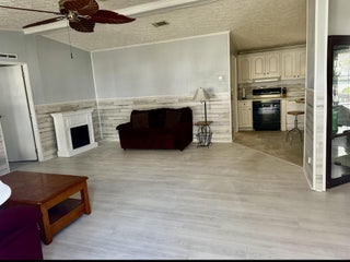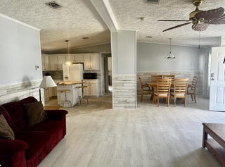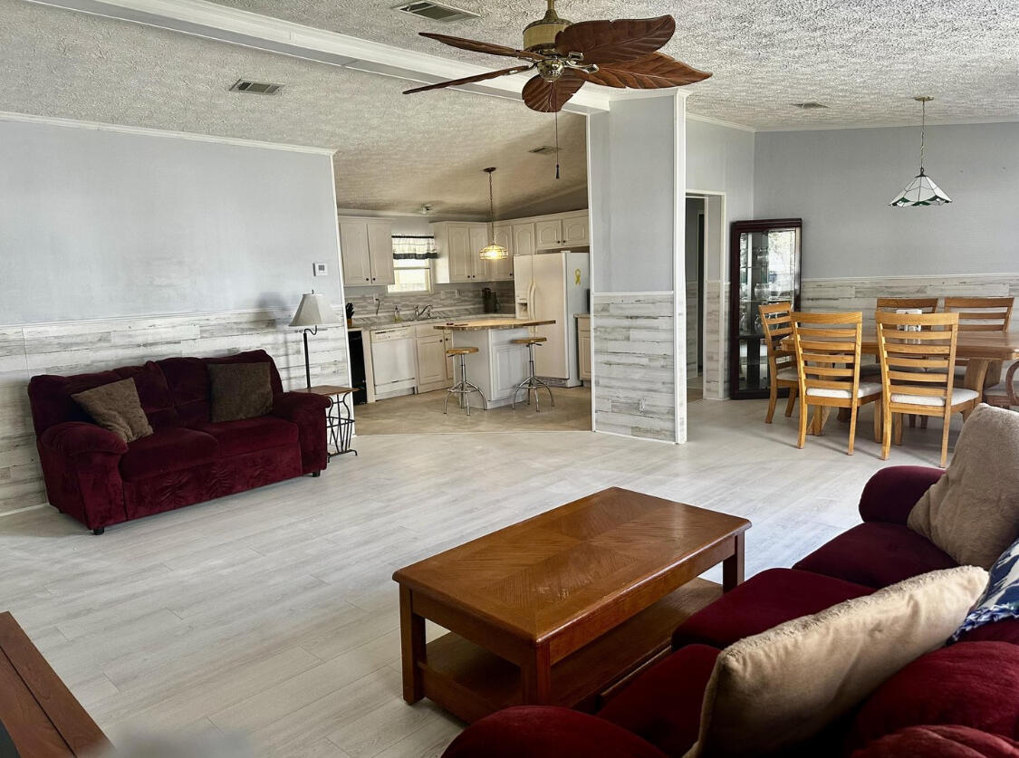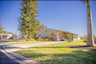 SEMINOLE COVE 3/2 DWMH on corner lot with captive lake view. Newer roof, new HVAC! Open concept, breakfast bar, spacious living and dining, walk-in closets, master features garden tub and separate step-in shower. Freshly painted interior and lvp flooring and tons of storage. Screened in patio perfect for bbqs and sunsets. Attached carport, ramp, and workshop. Home comes partially furnished and complete with storm panels. Public water and sewer. 55+ Community offering heated pool, clubhouse, fish cleaning station, and activities. Priced to sell!Measurements are approximate.