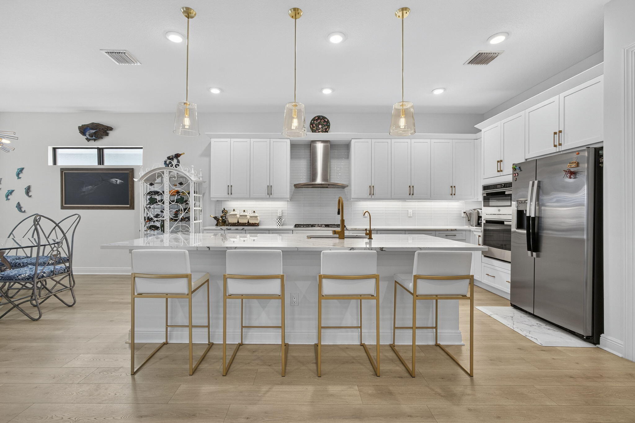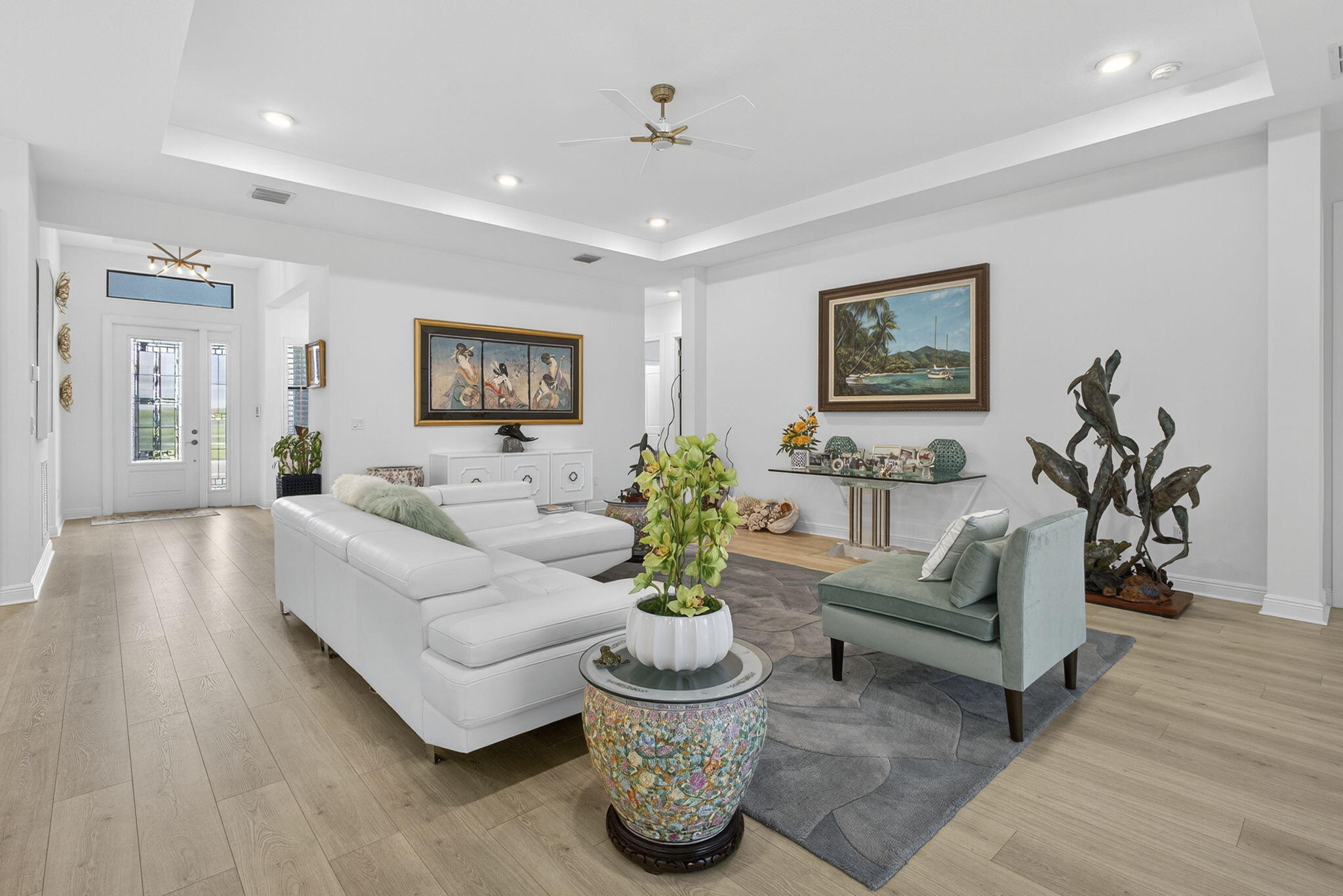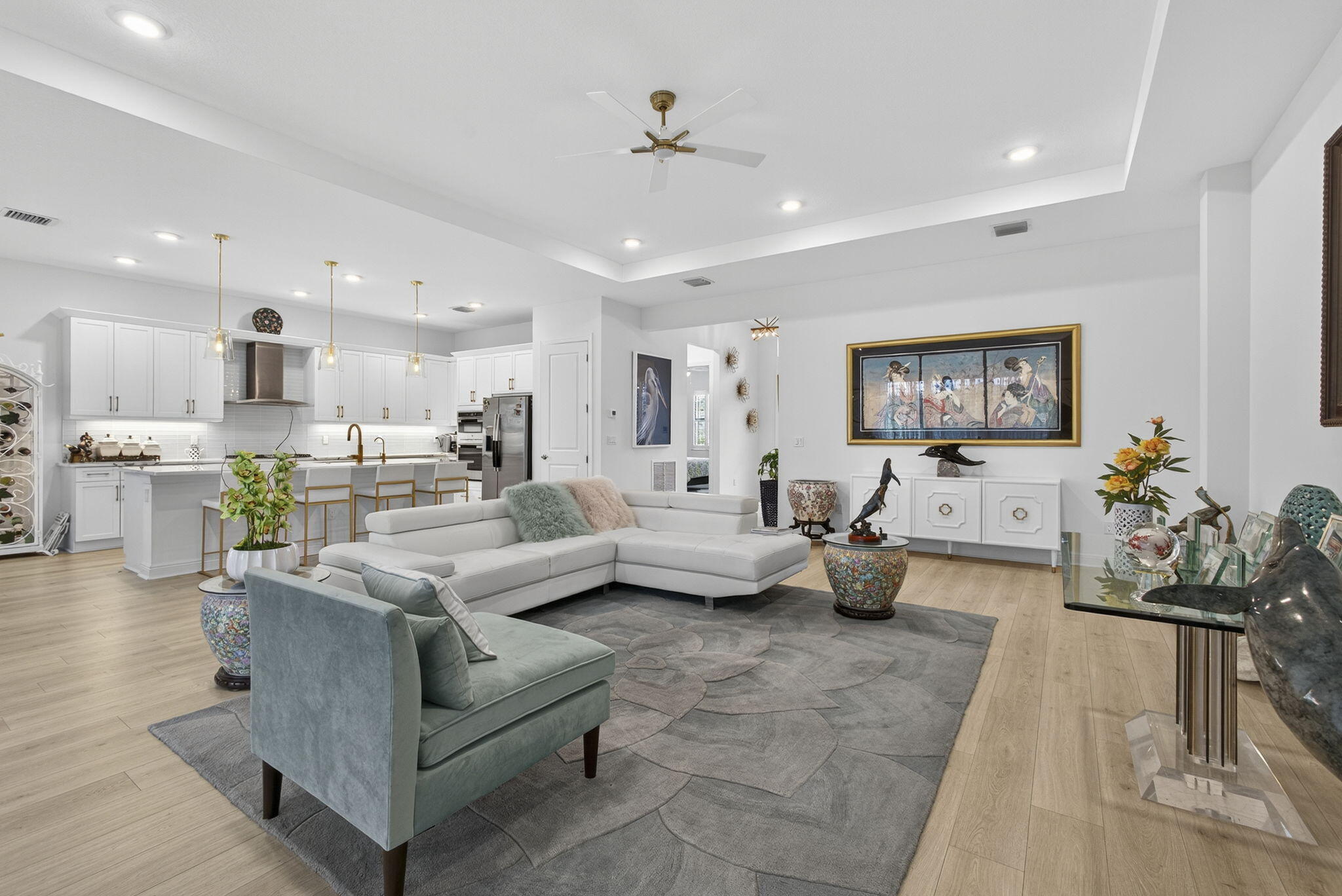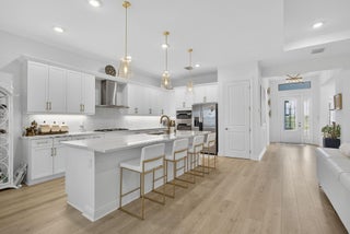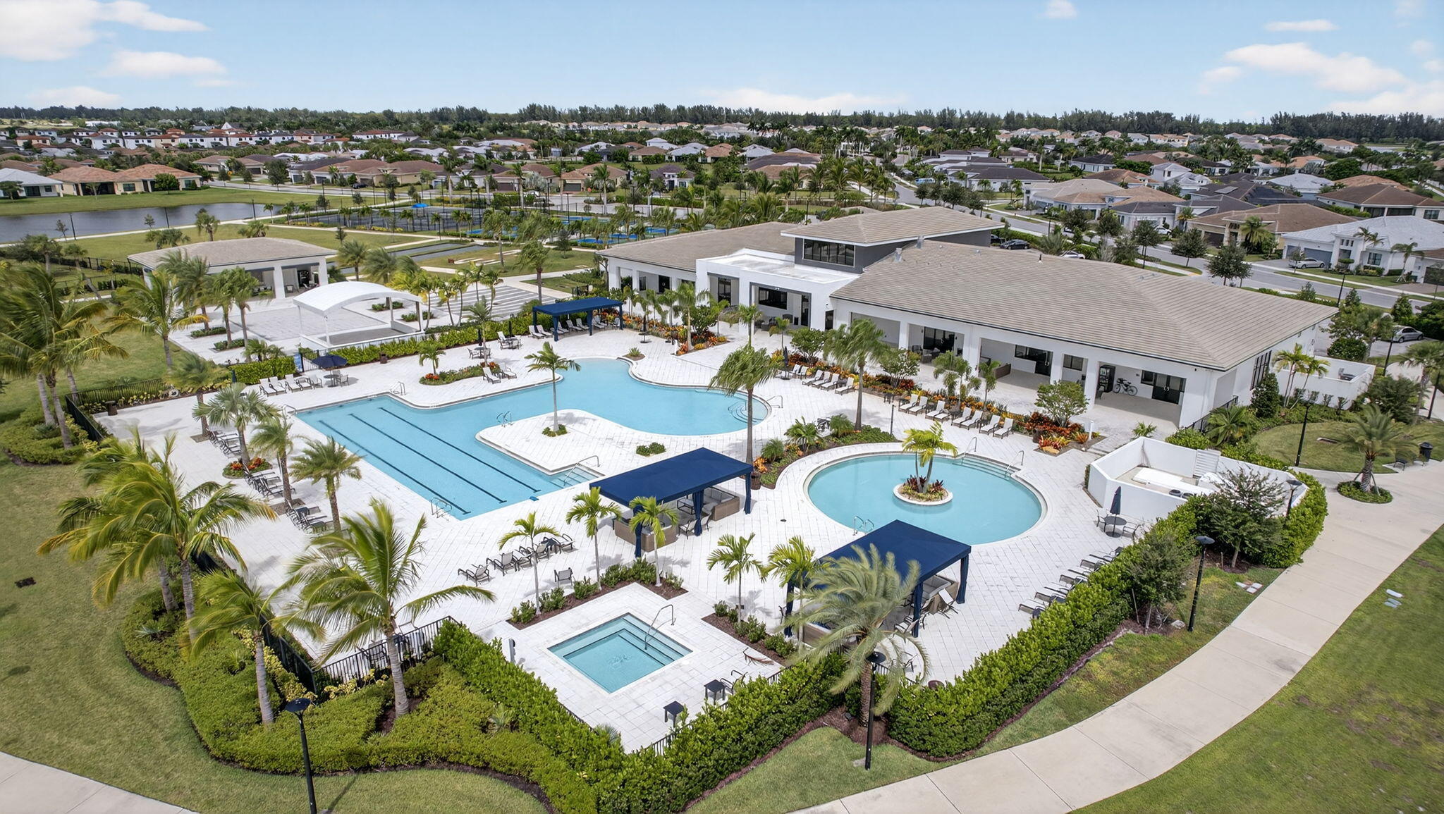 FINISHED IN 2023 - PALM BEACH floor plan with lake view includes 3 bedrooms, 3 full ensuite bathrooms and 1 half powder room. The gourmet kitchen features gas cooktop with hood, quartz counter tops, Plantation shutters throughout, screened-in extended patio, finished closets, upgraded lighting fixture and more throughout the home. Cresswind's amenities & packed activity calendar with pickleball teams, concerts & events.