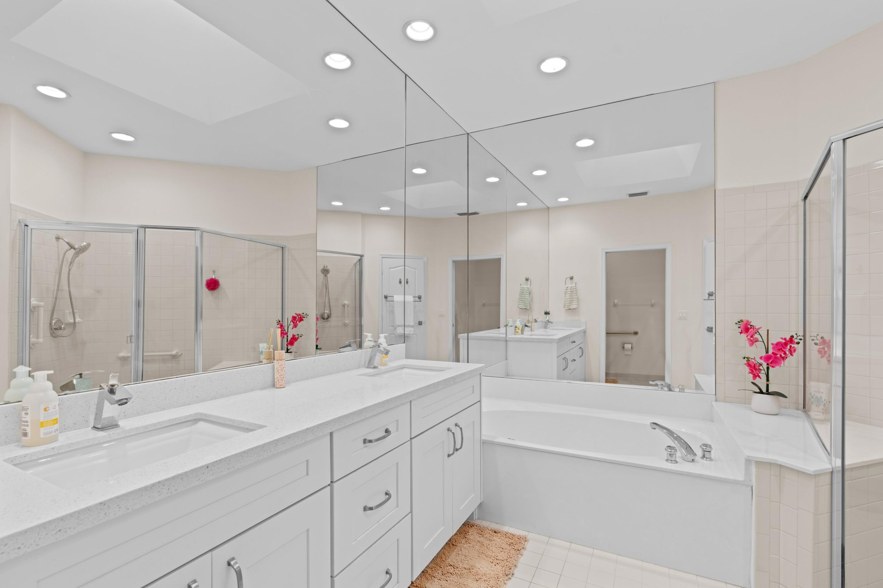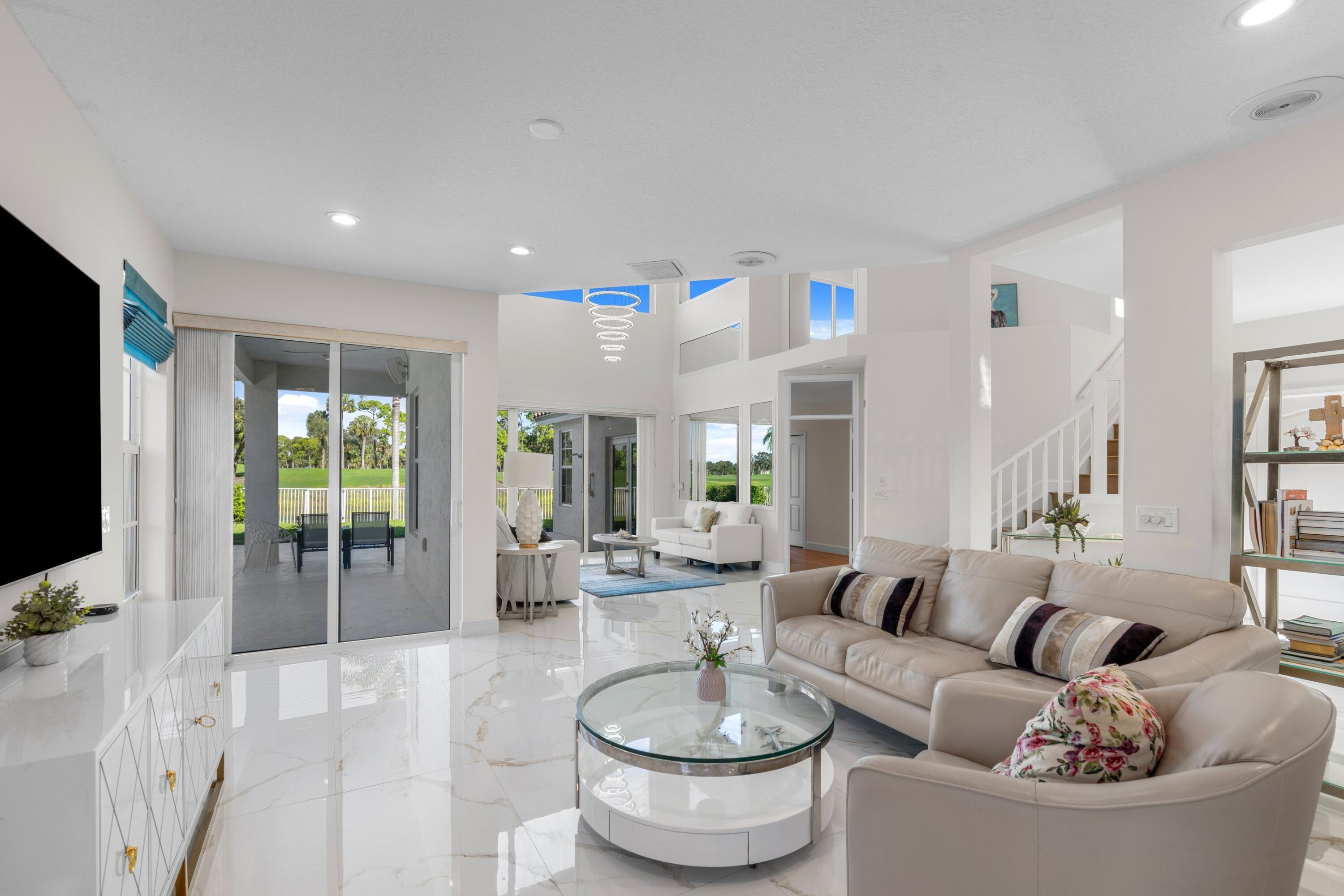 Enjoy luxury, privacy, and comfort in this stunning, light-filled home nestled in the heart of PGA National. Overlooking the 18th tee of the Championship Golf Course, this 3-bedroom, 3.5-bath residence offers a peaceful setting with sweeping golf course views and glowing sunsets as your daily backdrop. The home features new large-format porcelain tile flooring throughout the main living areas, adding a clean, modern touch. Large, oversized windows flood the interior with natural light and offer beautiful views of the outdoors from every room. Kitchen features Quartzite countertops, a KitchenAid gas stove, and custom cabinetry. The primary bedroom is conveniently located downstairs, providing privacy and easy access.Upstairs features two-guest beds and a spacious loft area adds versatile living space perfect for a home office, media room, or play area. Brand new, timeless wood flooring has also added upstairs to enhance the warm and cohesive feel of the space. Step outside to a gas-operated saltwater pool and spa, creating a private oasis surrounded by lush landscaping. The newer pool systemincluding pump, heater, and tankensures optimal efficiency and enjoyment year-round. A built-in speaker system, indoors and out, adds to the home's effortless appeal. A whole-home gas generator provides added security and peace of mind during storm season. New roof and windows coming soon! Additional upgrades include impact windows, HVAC systems, updated light fixtures, and manicured landscaping. Membership to PGA National is entirely optional, giving residents the choice to enjoy world-class golf with five championship courses, tennis courts, state-of-the-art exercise facilities, croquet, and more.