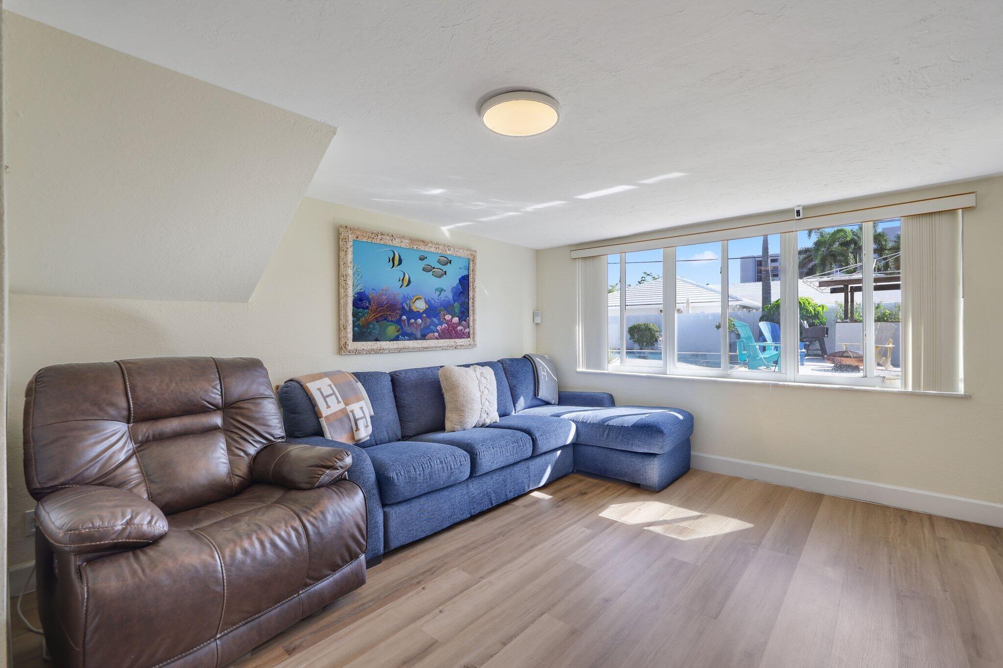 Situated in the heart of the highly sought-after Coral Ridge neighborhood, this elegant 4-bedroom, 3-bathroom tri-level residence offers timeless style, comfort, and architectural character on a generous lot. Soaring vaulted ceilings with exposed beams create a bright, airy ambiance. The chef's kitchen overlooks a private backyard oasis and features stainless steel appliances, custom cabinetry, and granite countertops--perfect for both everyday living and entertaining. Updates include new A/C (2023), water heater (2023), impact windows and doors with accordion shutters, and a durable S-tile roof. Enjoy a resort-style pool, outdoor bar, and expansive yard. Don't miss this rare opportunity in one of Fort Lauderdale's most desirable neighborhoods! Schedule your private showing today!