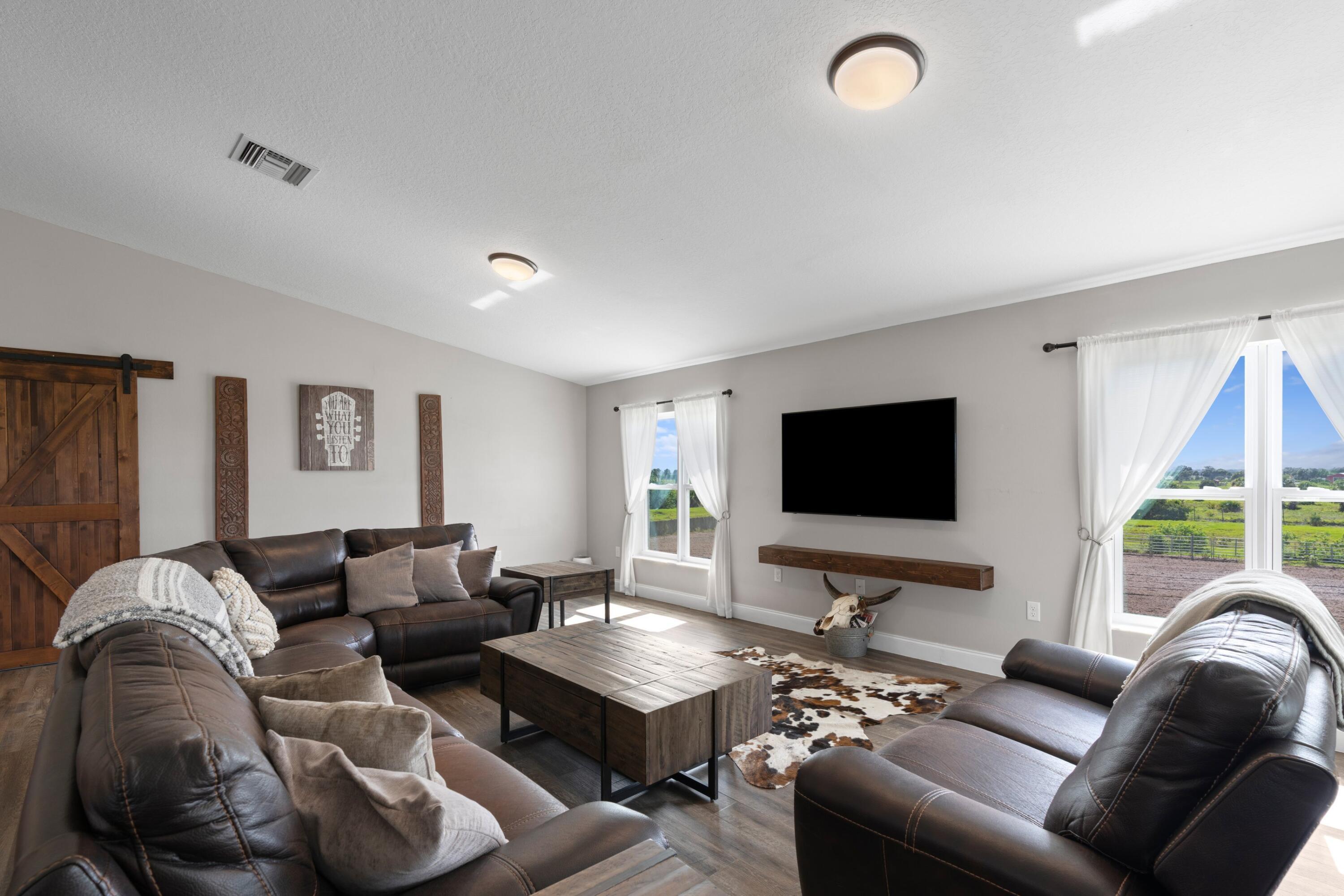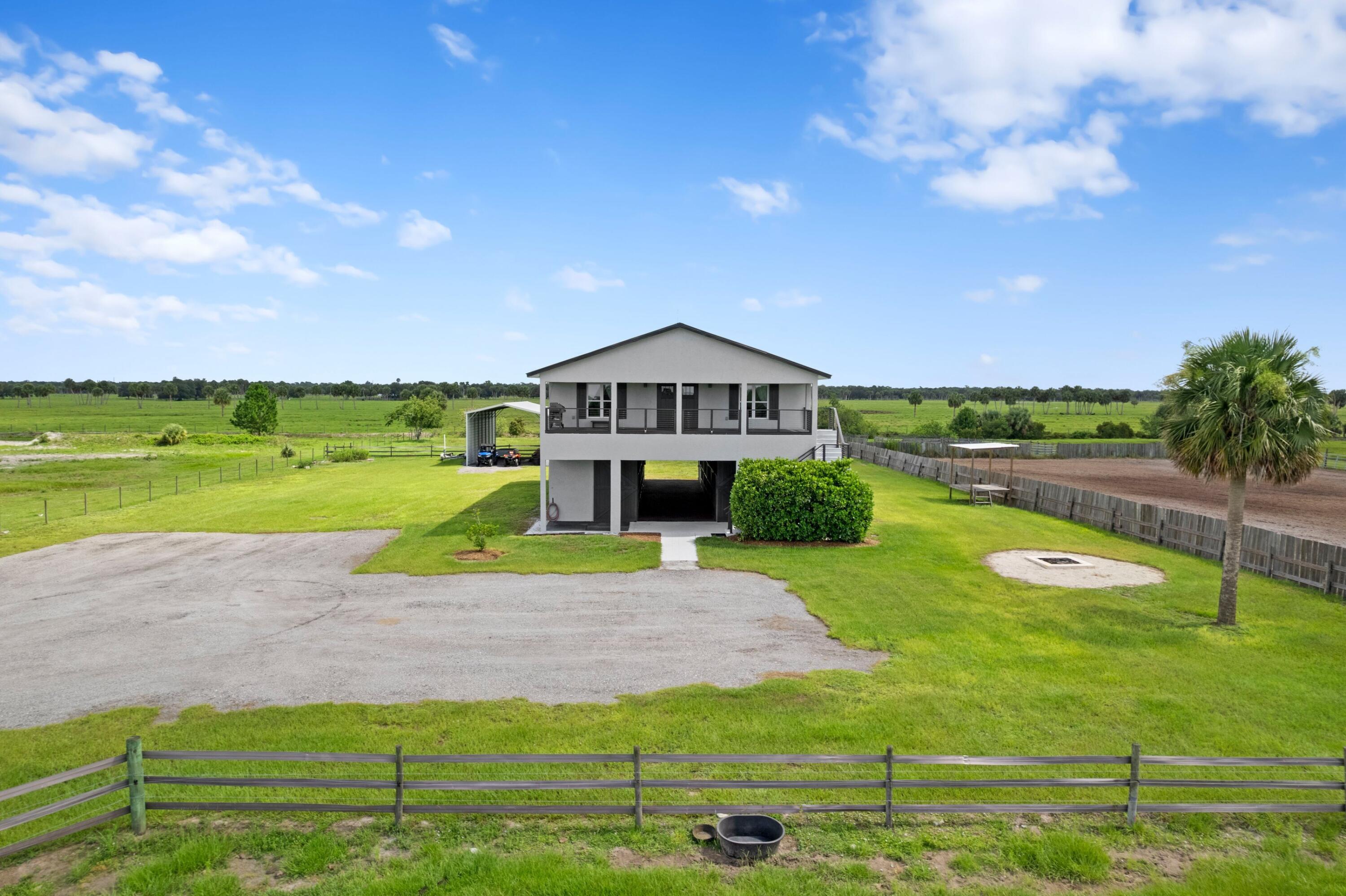 Stunning Equestrian Training Facility. Sherman Wood Ranches an Exclusive Gated Community. Situated on 8.65 acres of fully fenced pasture blends modern living with top-tier equestrian amenities. Custom built 8 stall barn offering air-conditioned tack room, feed room, auto fly spray system, horse wash bay and half bath. Riding amenities include a 140'x225' arena as well as a round pen. The house showcases modern farm house living with 3 bedrooms, 2.5 bathrooms. Endless picturesque sunset and sunrise views from nearly every room. 40x30 metal shop and garage. Sherman Wood Ranches is a gated community with easy access to Okeechobee Fair Grounds and Wellington International. This property offers a Turnkey Home being sold Fully Furnished, just bring your clothes!