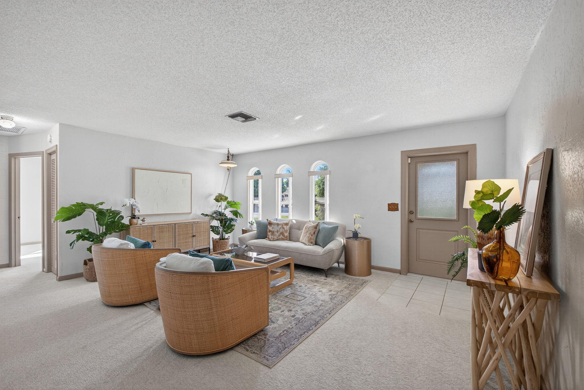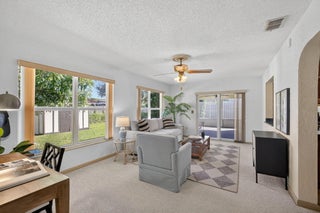 Charming 3/2 CBS home on corner lot in desirable Florida Gardens neighborhood. Florida Gardens is conveniently located off Lake Worth Rd and only 1 mile to turnpike entrance. No HOA fees! Home features newer roof (2023), new hot water heater, new front door, impact windows, transferrable termite bond and new carpet. The 0.28 acre lot is fully fenced and features a large mango tree and storage shed.