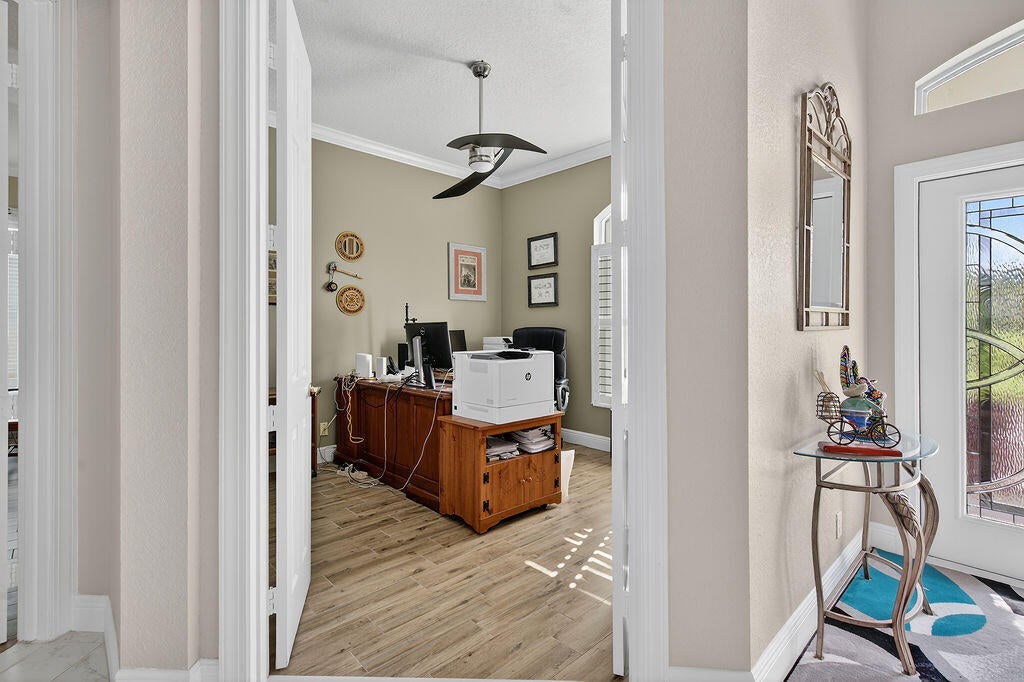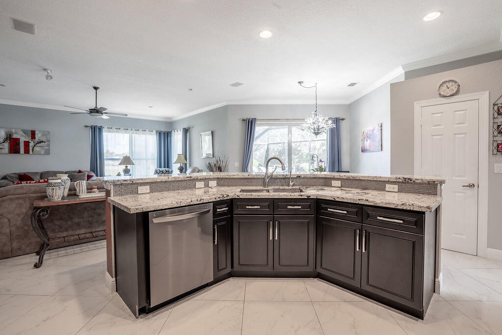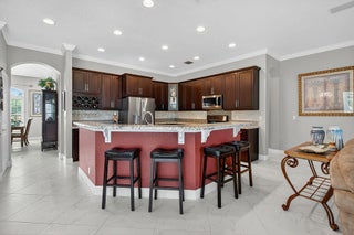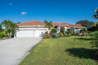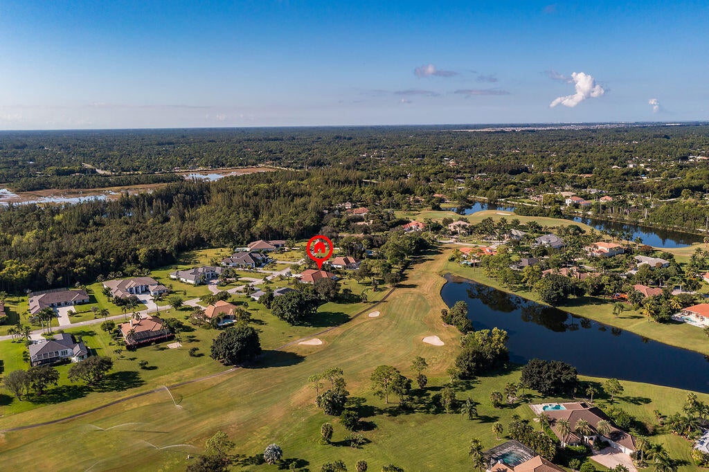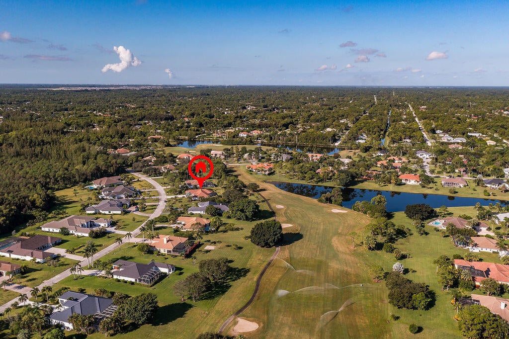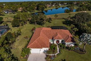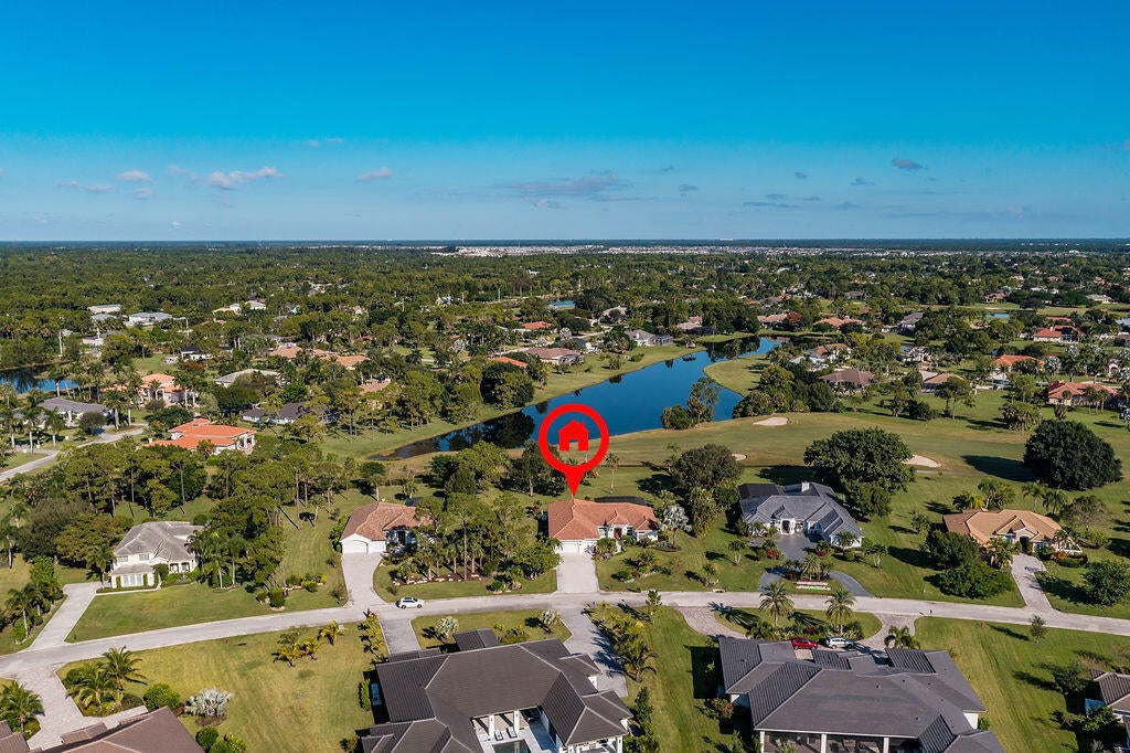 Fabulous move-in ready 5 BR + office, 4.5 BA home with pool on a stunning 1 acre lot in Bayhill Estates. This one story home offers 3,600 SF of living space with a split floor-plan and magnificent views of the18th hole of the PGA Estate Course and a sparkling lake. Generously sized rooms and 24'' porcelain tile give the home a modern feel. The updated kitchen opens to the family room and breakfast area, all overlooking the tranquil lanai and golf course. Large primary suite with 2 walk-in closets and luxurious renovated bathroom. All other bathrooms have been renovated as well. The outdoor living is just as stunning as the interior with a pool with lanai that was replaced in 2015, lush landscaping and lighting and plenty of yard space beyond.