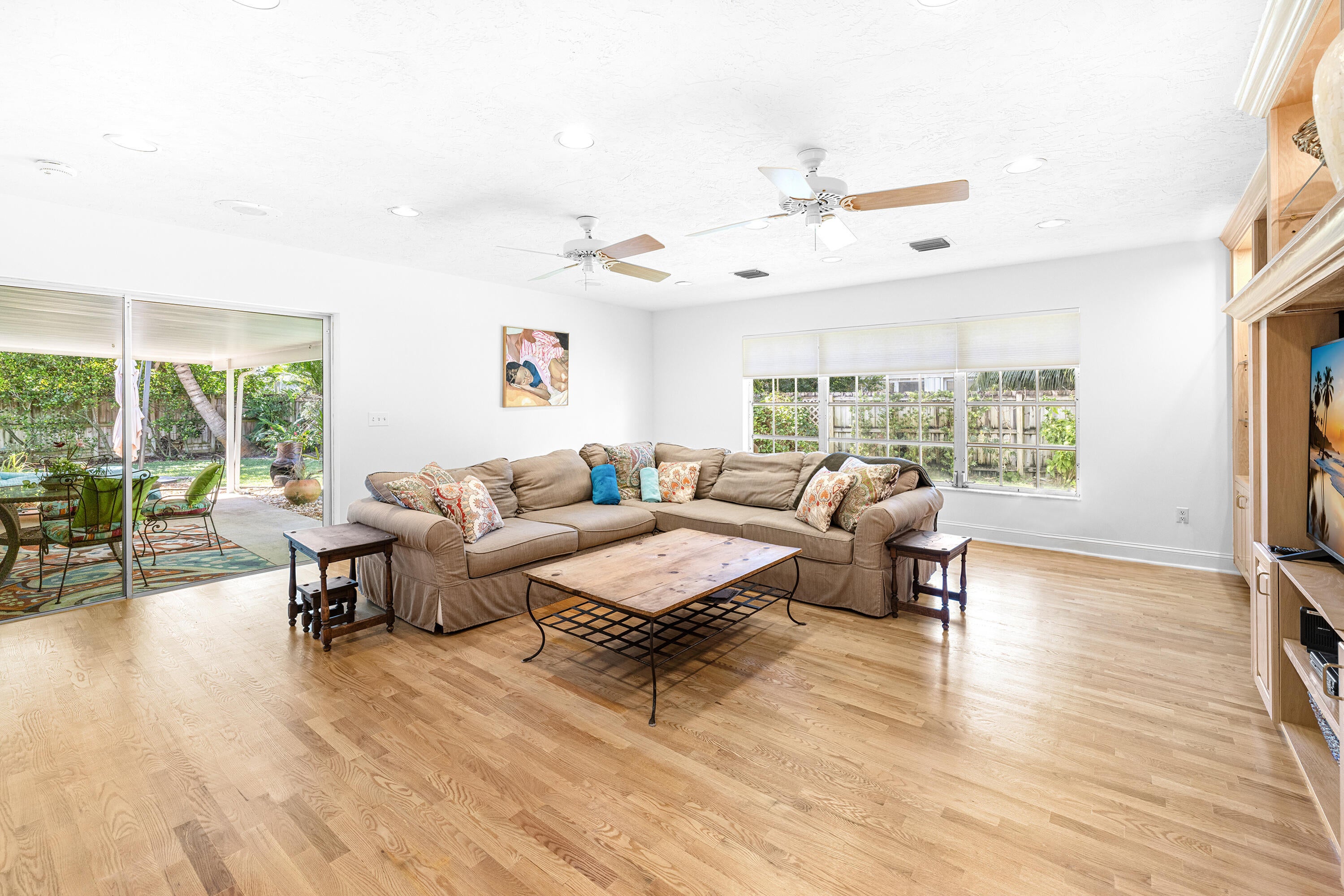 Own your slice of paradise in coveted Lake Clarke Shore! This spacious 3-bedroom, 2-bathroom home with a 1-car garage sits on a private, fenced 0.22-acre lot in a great, NO HOA community. Recessed lighting brightens the open layout, while the kitchen shines with granite countertops, stainless steel appliances (including a 2023 dishwasher and brand-new 2025 refrigerator), tile backsplash, and a pantry for extra storage. The primary suite offers a walk-in closet and a beautifully remodeled (2023) bathroom featuring a marble vanity and a 66'' soaker tub wrapped in elegant tile. An additional walk-in closet in the hallway adds convenience. Enjoy your outdoors and a covered patio surrounded by lush landscaping. Community perks include a boat ramp and playground within walking distance, plustennis and basketball courts and picnic area. Just 5 miles from Lake Worth Beach and minutes to I-95, PBI Airport, fun downtown Lake Worth, shopping, dining, and more. All measurements are approximate. Take a look at the 3D virtual walkthrough.
