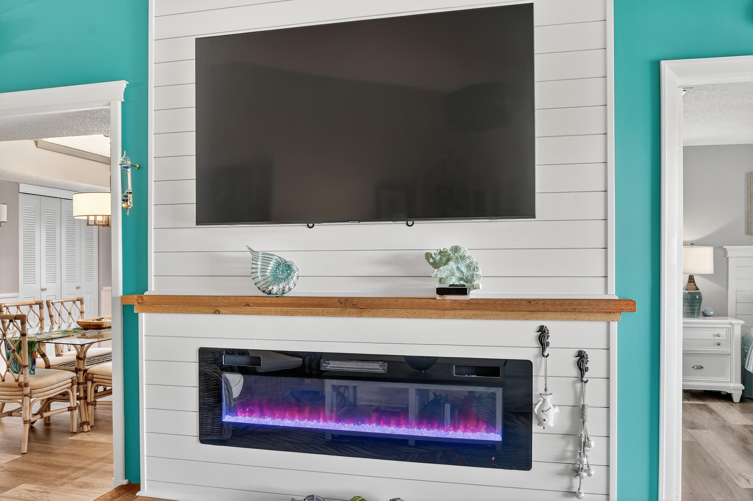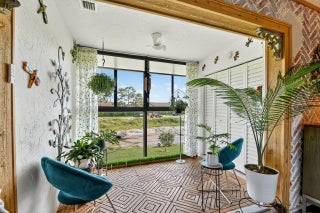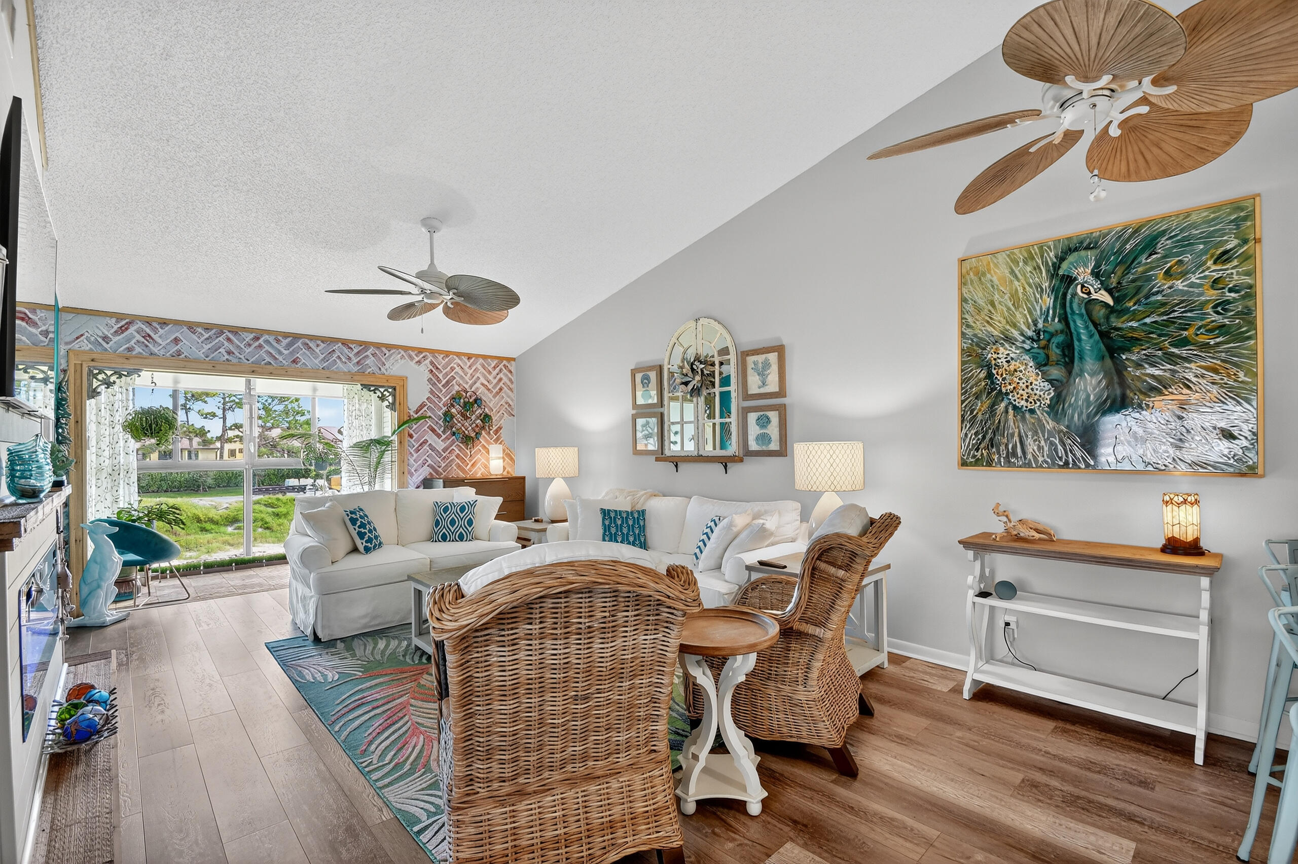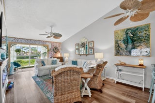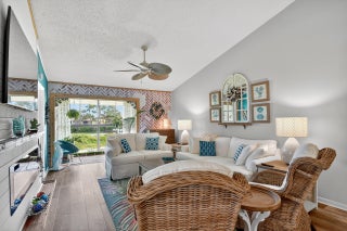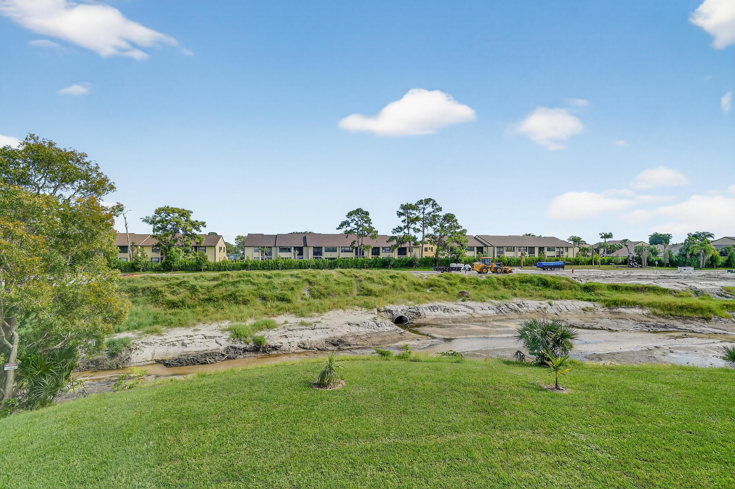 Impeccable, stunning aparment with views of water from all windows. This end unit apartment with vaulted ceilings has been beautifully updated starting with high rated impact windows. The a/c is a larger high efficiency unit, 2 yrs old. The water heater and washer and dryer are 4 years new. Bathrooms have been updated with frameless shower within 1 year. Kitchen with extensive cabinets including by bar stools. Built in firepalce with designer wood accents on wall - doors are upgraded with designer inserts. The patio area has a/c and is part of the home. The views are water and park areas. This is a 2 story building and does not have state required engineering requirements. Roof is 6 1/2 years new. This home is perfect. Close to Turnpike, shopping movie theatre.