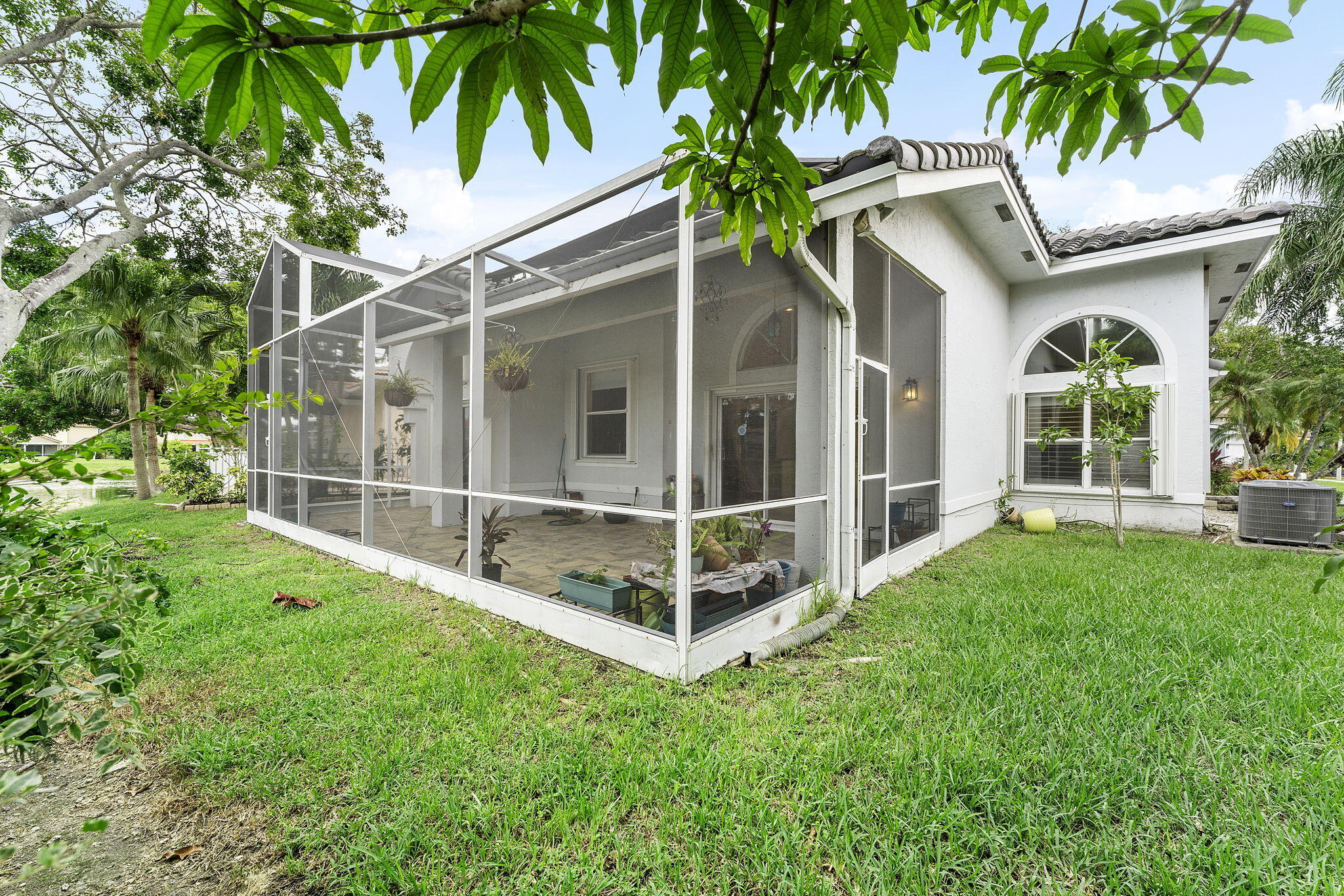 **New Roof 2022**Welcome to this beautifully maintained 3-bedroom, 2-bathroom single-family home, quietly nestled in a rare, intimate community of just 55 homes perfectly positioned away from the hustle and bustle of Sample and Rock Island Roads. This is where privacy, peace, and comfort meet. From the moment you arrive, the charming curb appeal and mature shade trees draw you in. Step inside to discover soaring vaulted ceilings, a spacious open layout, and oversized tile flooring that flows seamlessly throughout the main living areas. The gourmet kitchen impresses with granite countertops, rich wood cabinetry, stainless steel appliances, and a center island with bar seating ideal for everyday living or entertaining guests.The oversized primary suite offers a serene retreat with updated flooring, a walk-in closet, and private access to the lanai. The en-suite bath features dual vanities, a soaking tub, and a walk-in shower with elegant tile work and upgraded fixtures. Enjoy Florida living year-round in your expansive, fully screened-in porch with two sets of sliding glass doors that open to peaceful water views and lush greenerya perfect spot for morning coffee or a relaxed evening under the stars. Major updates bring peace of mind: A/C and water heater (2020), brand new roof and solar panels (2023).