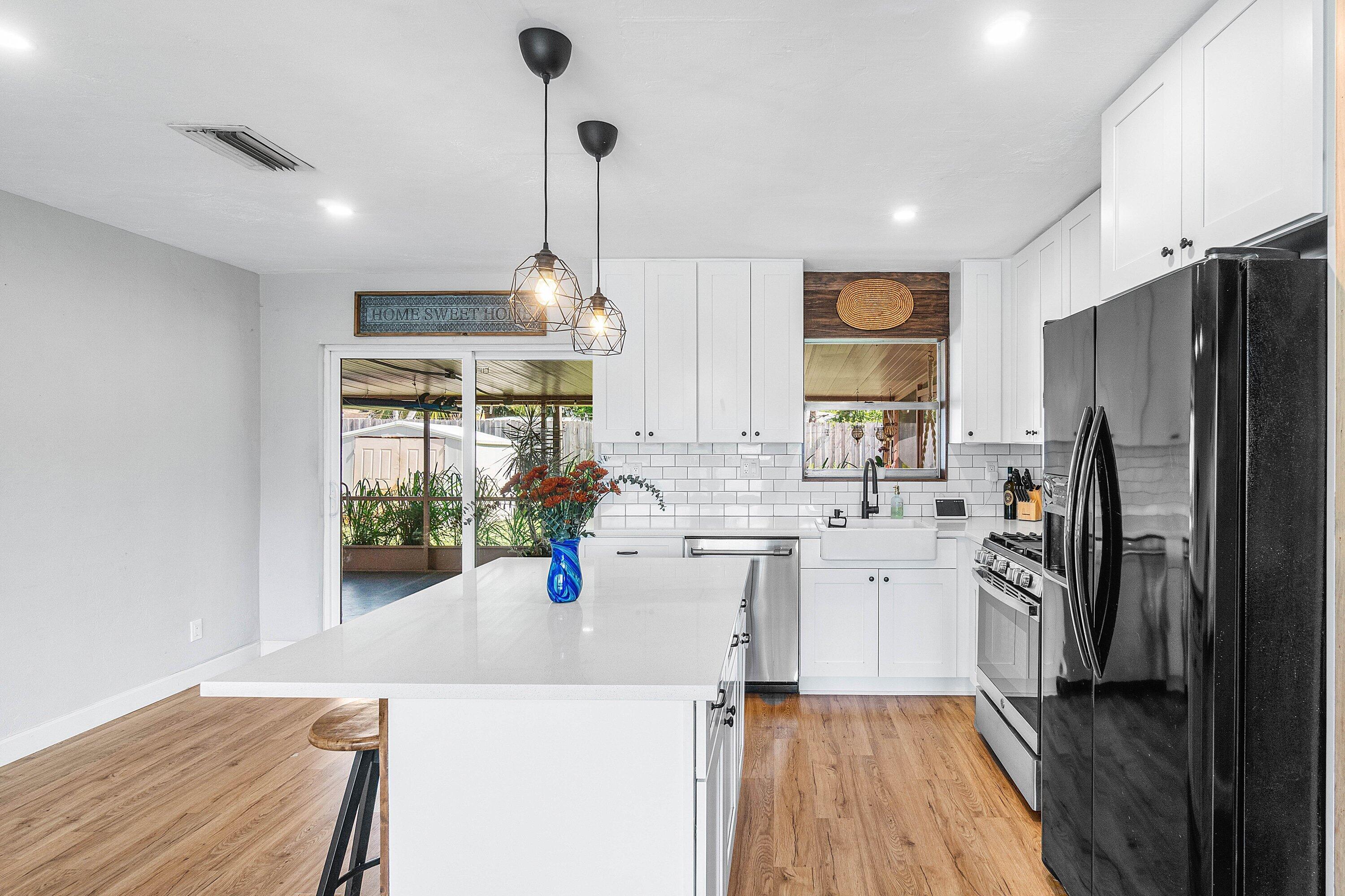 SELLERS MOTIVATED! Charming 3-Bed, 2-Bath Home w/Carport - Loaded w/ Upgrades! Welcome to this updated home w/ a carport & space for your toys! This gem boasts stylish vinyl laminate flooring & updated baseboards throughout. The kitchen's been upgraded w/solid wood cabinets, quartz countertops, kitchen island, new appliances, recessed lighting, & pendant lights that elevate the space. Bathrooms have been tastefully renovated. Additional updates include newer gas washer, dryer, & water heater, A/C system w/all new ductwork installed in 2019. All new interior doors. Brand new windows in the front bedrooms, rear sliding glass door & front door. Exterior freshly painted 2024, Clusia hedges w/drip irrigation & new fence for extra privacy! 8x10 shed included! MOVE IN READY!