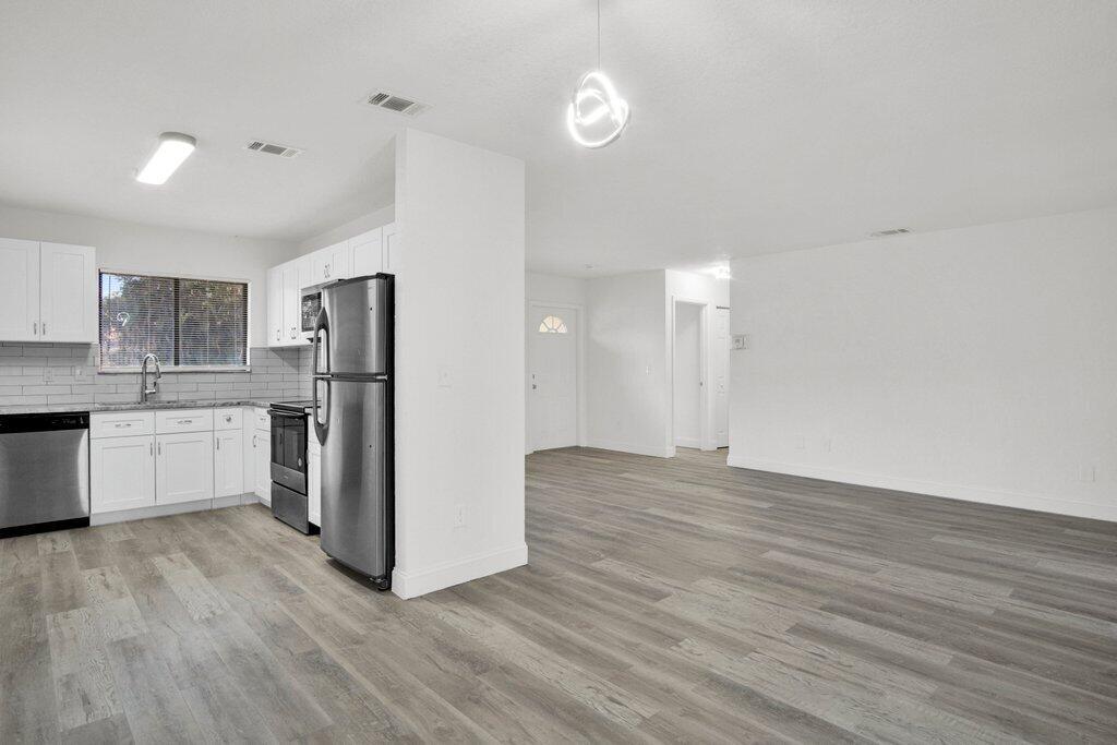 Beautifully renovated 2-bedroom, 1-bath home on a large lot with a one-car garage. The updated kitchen features white cabinets, granite countertops, and stainless steel appliances. The bathroom has been refreshed with new tile, vanity, and fixtures. Enjoy new luxury flooring throughout, offering a modern feel. AC 2016 and a new roof coming soon. Spacious yard provides plenty of room to relax or expand--move-in ready and full of charm!