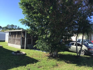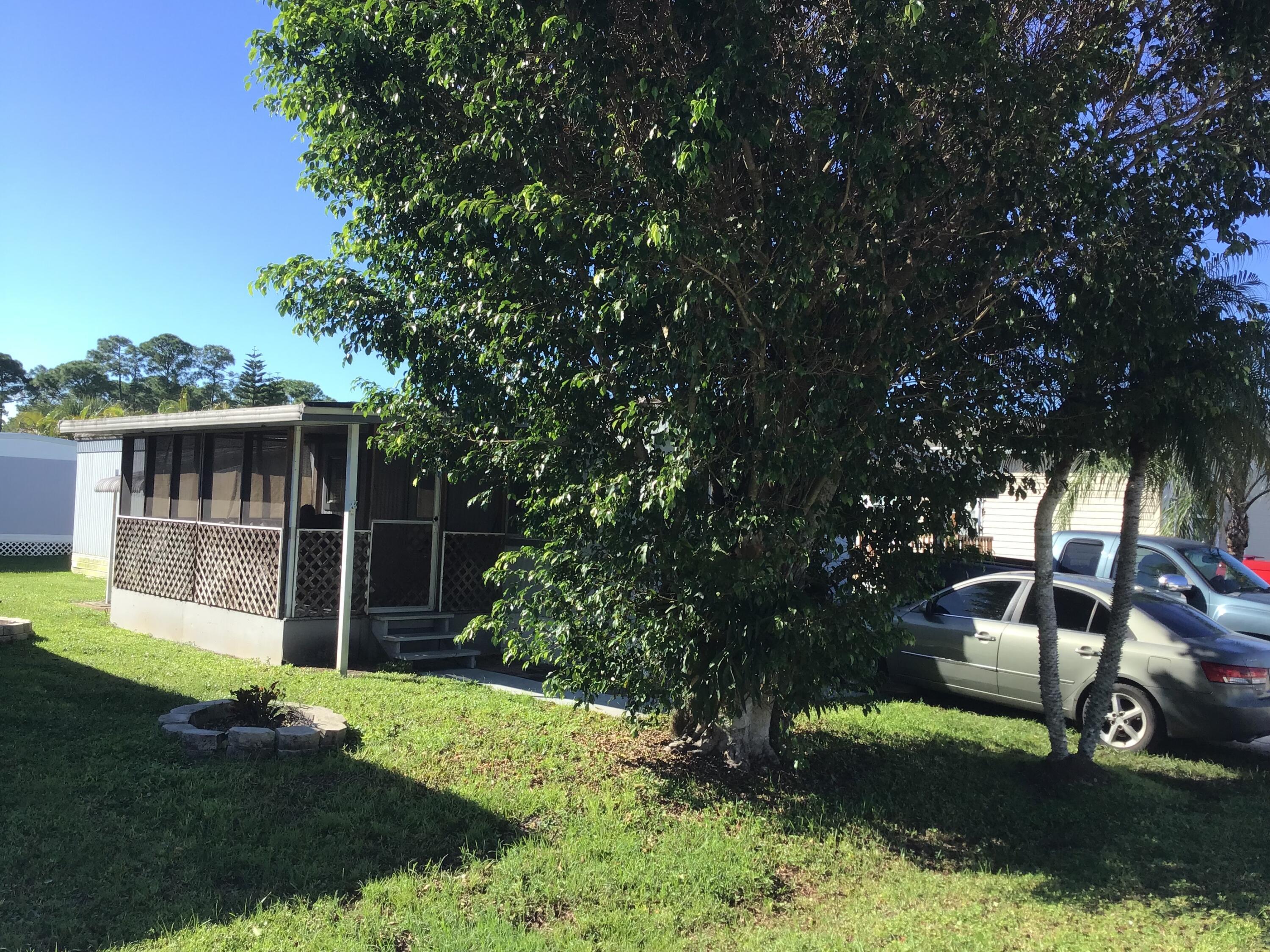 This is a 55+ community however will allow 45+ occupants. Fantastic location in SW Stuart, yet not far from downtown, shopping and the beaches. The home is nicely furnished and ready to go as the owner is moving overseas and is leaving everything, including a new large flat screen smart TV . The enclosed carport can be modified to add another bedroom/den or bathroom. Great features include enclosed utility room with full size washer/dryer along with an inviting elevated screen patio, shaded and private. Non-land owned home allows for no taxes, no insurance requirements. The updated kitchen has all stainless-steel appliances - vinyl floor throughout - molding and nice trim. Community clubhouse has a pool table and there is available Boat/RV storage at a minimal cost. Owner pays for indiv