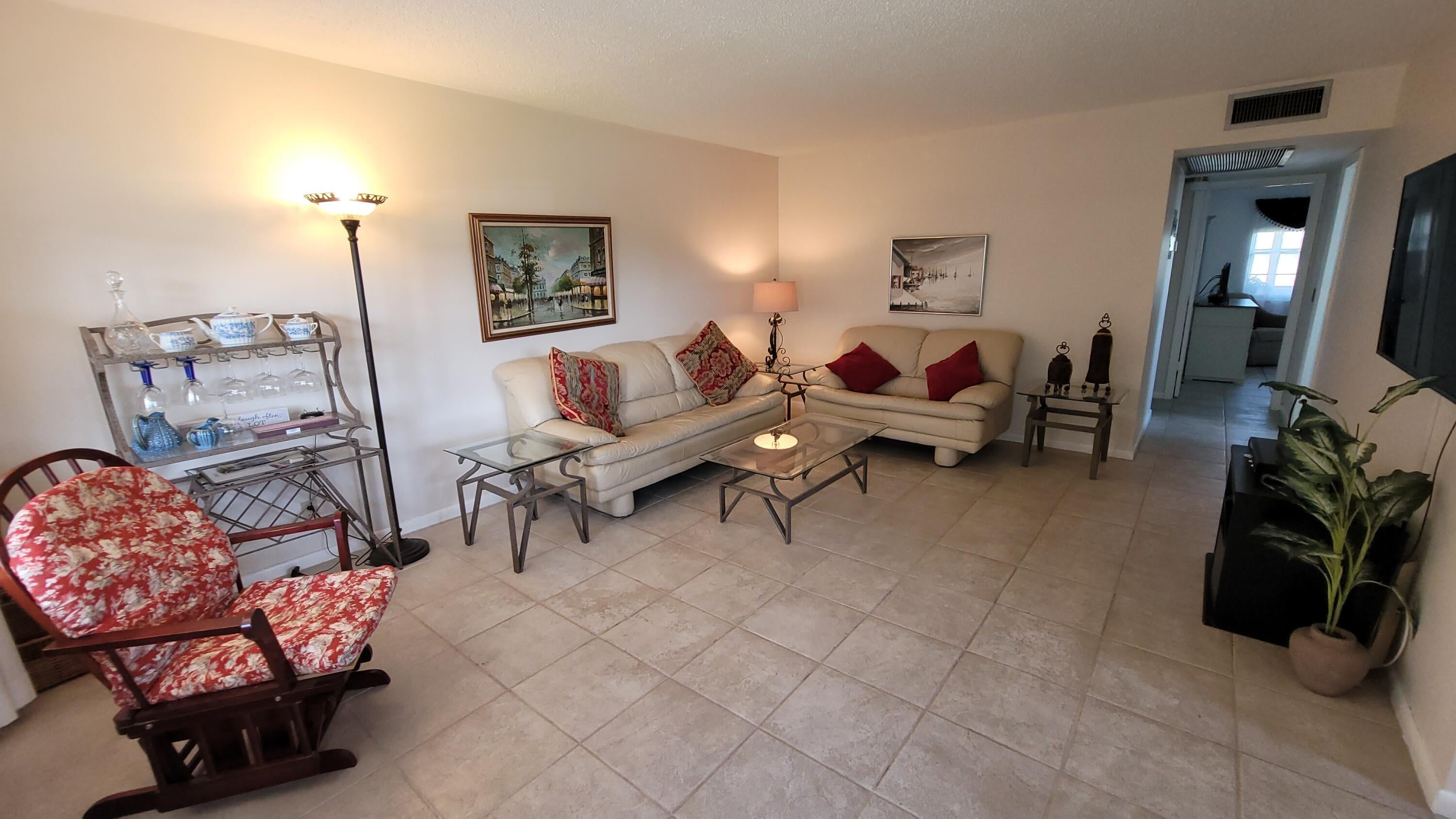 Nestled in the heart of vibrant West Palm Beach, this charming 2-bedroom, 1.5-bathroom condo is a perfect blend of comfort and convenience. Located just minutes from the vibrant downtown area and stunning beaches, it's ideal for anyone looking to enjoy the best of coastal living. Located on the 2nd floor, it offers convenience and comfort with recent upgrades including the air conditioning system and water heater, as well as newer toilets, kitchen faucet, dishwasher, and washer and dryer, the home offers peace of mind and energy efficiency. The in-unit washer and dryer (BOD approved) is a highly desirable feature, adding convenience to your daily routine.Additional highlights include external storage, a beautiful garden area to relax in, and reasonable maintenance fees with adequate reserves for future projects. The association has made recent upgrades, including non-slip walkways added in 2021and a new roof and full exterior painting in 2023. This condo offers the perfect opportunity to enjoy West Palm Beach living with modern updates and a well-maintained community. This pet-friendly condo is also rentable, making it a fantastic investment opportunity or a flexible living space. Residents also have access to a range of amenities, including a state-of-the-art fitness center, clubhouse, 17 swimming pools, and a plethora of community activities. The main clubhouse features a 1200-seat theater offering live entertainment and FREE current movies. Conveniently located just minutes from the beach, fine dining, shopping, entertainment options and access to Palm Beach International Airport and major highways, this condo offers the perfect blend of comfort and convenience. Experience the best that West Palm Beach has to offer in this pleasant residence. Welcome to the paradise of South Florida, resort-style social living at its absolute best. When you become the proud owner of a Century Village condominium, you begin the journey to experience the distinct Century Village "way of life" with luxurious recreational facilities and abundant social activities. Century Village West Palm Beach is an age restricted (+55) active adult community with 24- hour security and manned gated entrances. Century Village is situated on 29 acres, securely fenced just East of Florida's Turnpike with its two manned gates, one located on Okeechobee Blvd. and East Drive, and another on Haverhill Road and Century Blvd. Century Village is within 5 miles of the Palm Beach International Airport, Florida's Turnpike is less than one mile, I-95 is only three miles away, the Intracoastal waterway, and our pristine world-famous beaches are within 8 miles. Also within 5 miles is Rosemary Square (AKA City Place), our downtown entertainment, dining, and shopping hot spot. Palm Beach, one of the most beautiful and desirable locations in the world, is within a 20-minute drive. The Village boasts 7,854 units in 356 buildings with 309 associations (corporations). There is no master association which is unique in the state of Florida. Rather, the United Civic Organization (UCO) acts as an advisory group to the associations which send delegates to UCO meetings. The community newspaper is the UCO Reporter which is operated by the UCO Board. The magnificent 92,000 square foot Clubhouse features amenities including barber, beauty parlor, fitness center, theater, billiards, library, card playing and activity rooms, as well as an indoor pool and saunas. The newly remodeled 1209-seat theater hosts current run movies and live entertainment. Free private bus transportation within the village as well as frequent trips to shopping venues and other activities outside of the village. There are fifteen pools ensuring everyone has the possibility of living within walking distance to a pool. Other activities include tennis, petanque, shuffleboard, biking, sailing, canoeing, or just riding around in your golf cart. There is even an on-site drug store, limited medical services and free ambulatory services. The restoration of the clubhouse (which was damaged by Hurricane Frances) took many months and approximately 6 million dollars to complete. Most impressive is that this renovation required no special assessments to the members. The building is now complete and boasts a magnificent theater offering live shows by well-known entertainers and current run movies. There is a large party room that seats 512 people with a large dance floor and stage, card room, meeting rooms, hobby and craft rooms, billiard room, sewing room, music room, two exterior swimming pools and one indoor heated saltwater swimming pool, as well as shuffleboard, handball, bocce, and racquet ball courts. This beautiful new building was completely remodeled, upgraded and rebuilt to current code, including impact windows so there is no need for hurricane shutters on the building. The clubhouse is not owned by the associations, but by Beneson Capital Partners in New York, and is managed by WPRF, Inc. In addition to the clubhouse there is a large fitness center in the Hastings section of the Village that has free weights, exercise classes, various exercise machines, a resistance pool, and a regular swimming pool where water aerobics are offered. Also, for our residents we have a courtesy bus system which takes residents throughout the Village as well as to nearby stores, malls, restaurants, houses of worship and various excursions.