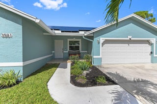 Discover an exceptional opportunity to own a spacious, single-family home with no HOA fees in a prime Boynton Beach location! This charming residence presents beautifully with a fresh, light blue/green stucco exterior, a two-car garage, and a landscaped front yard, offering immediate curb appeal. The covered front entry provides a welcoming space. Inside, the home offers a bright and airy open-concept living area with clean tile flooring that flows seamlessly throughout, ready for your personal touch.The kitchen is designed for modern living, featuring crisp white cabinetry that contrasts beautifully with dark, speckled countertops and a contemporary mosaic tile backsplash. The home is secured with hurricane impact windows, full home solar panels, brand new full home water filtration system with reverse osmosis in kitchen and offers a functional split bedroom plan. Its unbeatable location places you close to everything Boynton Beach has to offer, including major retail and diverse dining options. This is a best buy and a great chance to secure a non-HOA home that combines convenience, space, and the freedom to personalize.