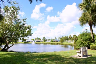 Waterfront Living! Bright and beautiful 2-bedroom, 2-bathroom home in the Palm Grove 55+ Community. Key upgrades include a double driveway, 2019 roof, 2021 A/C, Jacuzzi bath, granite countertops, built-in bookshelves, and hurricane shutters. Kitchen features pull-out shelf organizers for added convenience. HOA: $351/month includes Lawncare, Basic Cable, Wi-Fi, and Water.