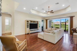 LAKESIDE LOCATION in PGA Village! This lovely 3BDRM/2.5BA/2CG home is being offered fully furnished/turnkey for an annual lease. A few of the many features of this special home include spacious floorplan, solid surface flooring throughout, kitchen w/ white cabinets, granite counters, SS appliances and charming breakfast nook overlooking the lake! Primary Suite also has lake views and a private ensuite w/ dual vanities, walk-in shower & soaker tub. Two walk-in closets! Two additional bedrooms share a full guest bath off the hall plus a half bath! Enjoy your morning coffee while taking in the serene lake views from the covered/screened lanai! Walking distance to the 'Island Club' featuring resort style pool, fitness facility, games room, pickleball, tennis and much more! Call today!