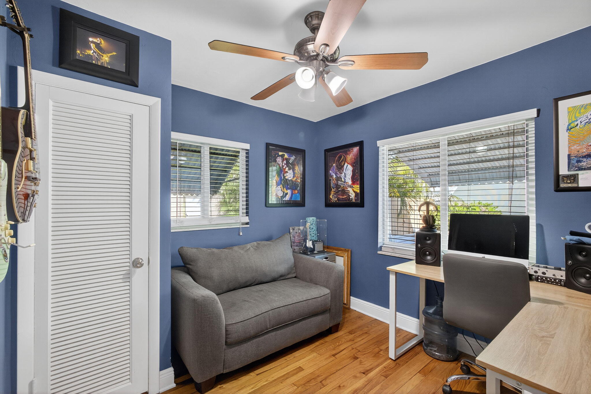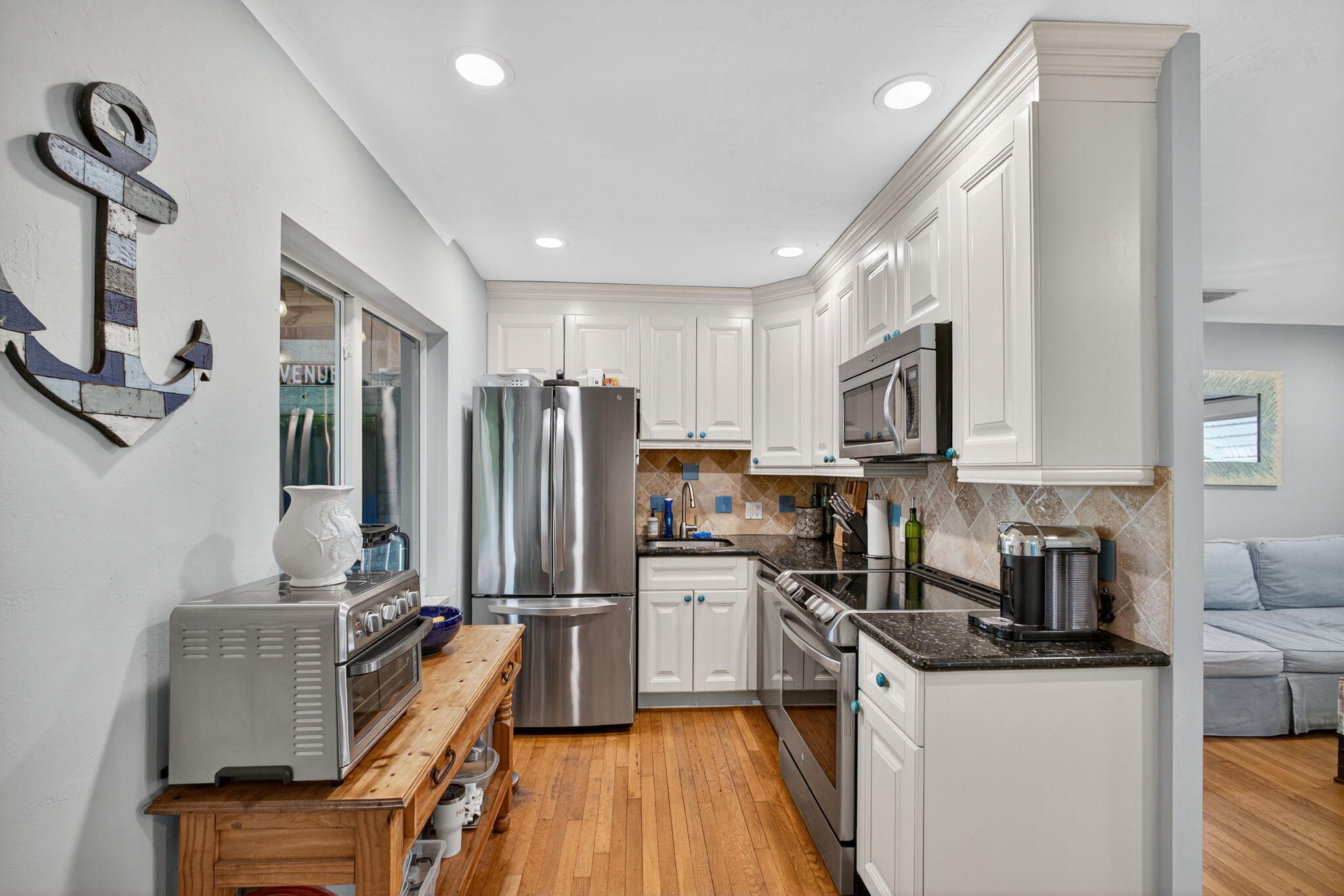 Welcome to 1711 N K Street in Lake Worth Beach! This charming 2-bedroom, 1-bathroom CBS home blends classic character with modern updates. Inside, you'll find original hardwood floors that add warmth and charm throughout. The kitchen has been beautifully updated with stainless steel appliances and contemporary finishes, and the bathroom has been tastefully renovated as well. Enjoy peace of mind with all-new impact windows and doors plus a brand-new central A/C system. The backyard is built for entertaining with a covered patio and a fully fenced yard -- perfect for outdoor dining, relaxing, or letting pets play. Just minutes from downtown Lake Worth Beach, local shops, and the ocean, this home is move-in ready and full of Florida charm. Downtown and the beach are just minutes away!