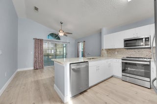 Welcome to easy living in this nicely updated villa in active 55+ community of Kings Isle. Residents enjoy low maintanence living with exterior care included. This villa is an end unit, giving you more living space and storage. Some improvements include, LVP flooring throughout, 5'' baseboards, granite counter tops, white cabinets, new SS Whirpool appliances, custom designer tile in master shower, new vanities & toilets in both bathrooms, new remote control fans, custom tile on the extended lanai with a beautiful view of preserve for additional privacy. Roof 2021,AC 2019, WH 2013, Ext paint 2025, shutters 2022. Endless ammenites and conviently located to all shopping, dining, interstates and Mets Stadium. Manned security gate !
