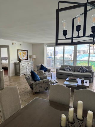 Beautifully furnished corner residence spanning 1,782 sq. ft., featuring 2 bedrooms, 2 bathrooms, and wraparound balconies totaling more than 450 sq. ft. The primary suite includes a king bed, while the second bedroom offers a queen. This desirable Model C northeast corner unit showcases breathtaking ocean and Intracoastal views from two private balconies. Elegant details include a Jacuzzi tub in the master bath and a renovated European-style kitchen with top-notch quartz countertops and premium appliances. Residents enjoy resort-style amenities such as infinity-edge pools, a full-service spa, and a 50,000 sq. ft. oceanfront fitness center.