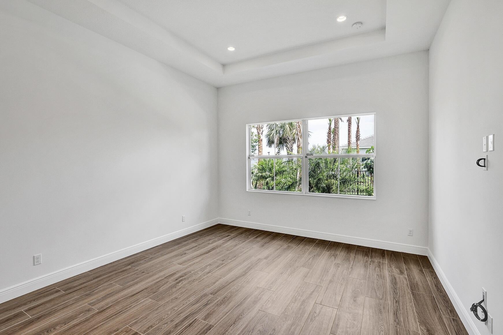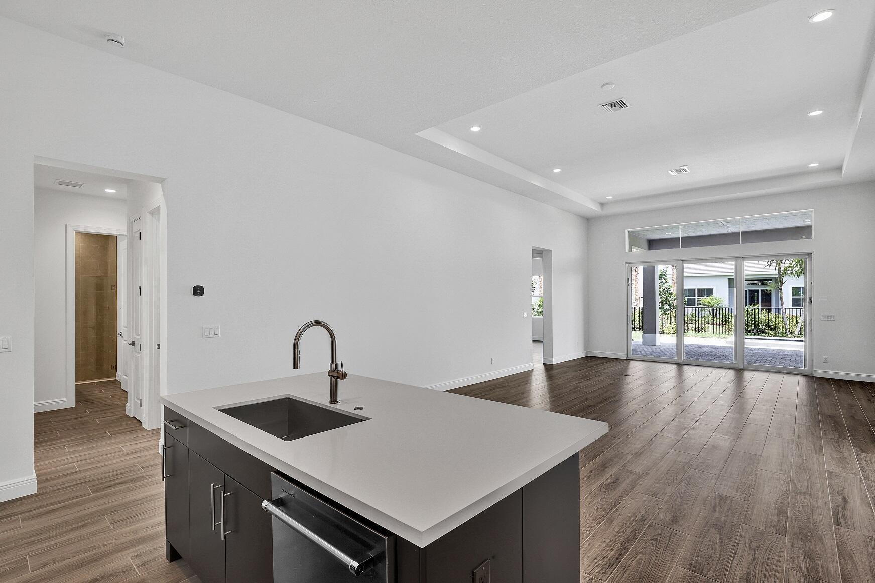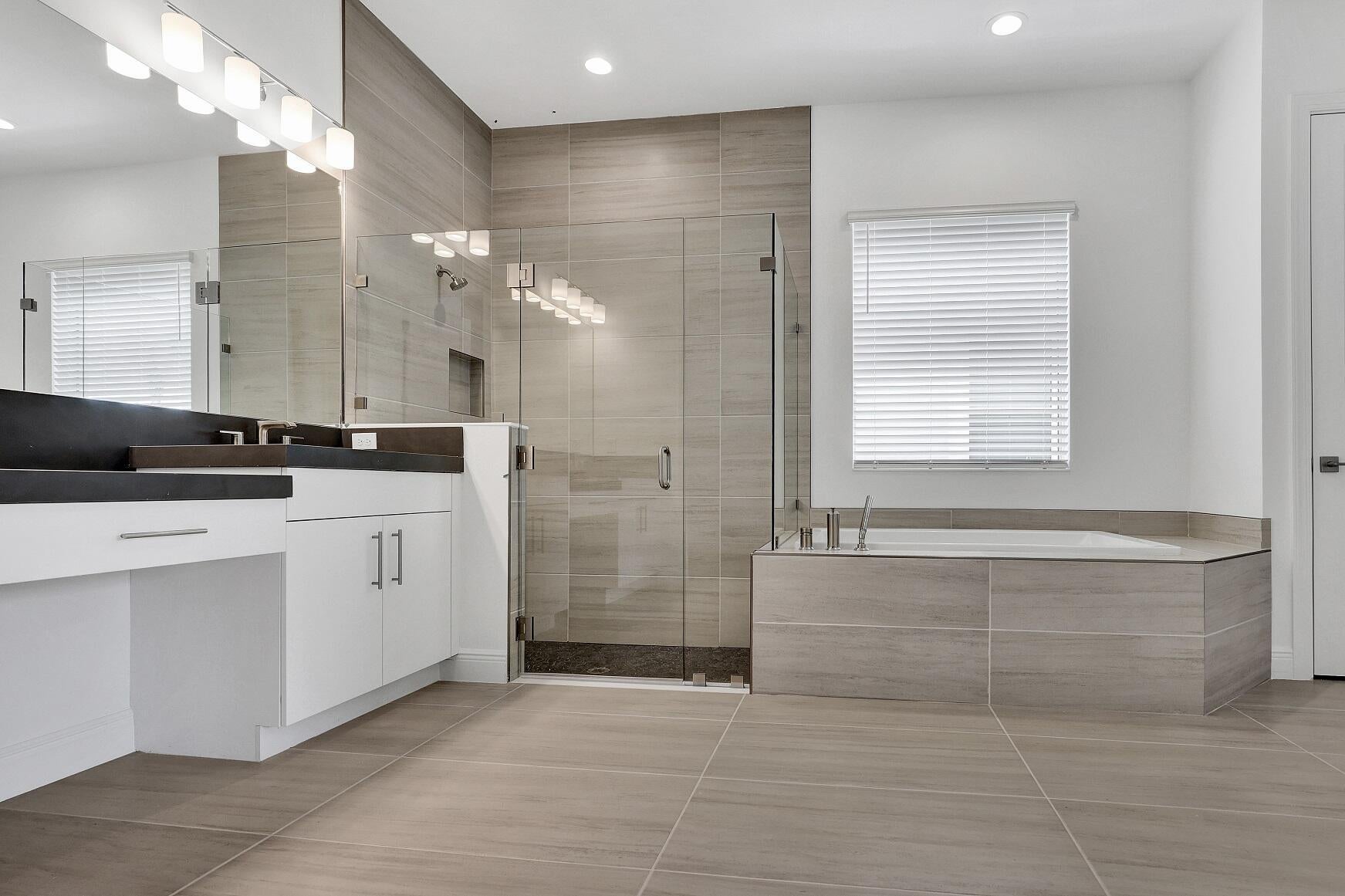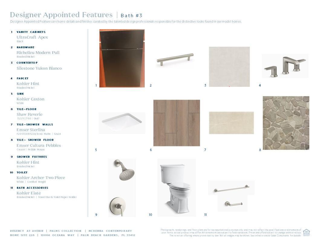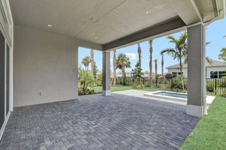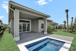 This McKenna home is stunning, boasting a striking Contemporary elevation with sophisticated veneer stone exterior that sets the tone for elegance. As you enter, you're welcomed by a coffered foyer with soaring ceilings, leading to an expansive 3-bedroom, 3-bathroom open-concept floorplan designed for both comfort and style.The entire home is adorned with exquisite porcelain tile flooring, providing a seamless flow throughout. The kitchen is a true standout, featuring quartz countertops, pantry, and upgraded appliances -- perfect for entertaining family and friends.Step outside onto your expanded covered lanai with luxurious in-ground spa, offering the perfect setting for relaxation. Located in Regency at Avenir, a manned-gate 55+ active adult community with large private clubhouse.