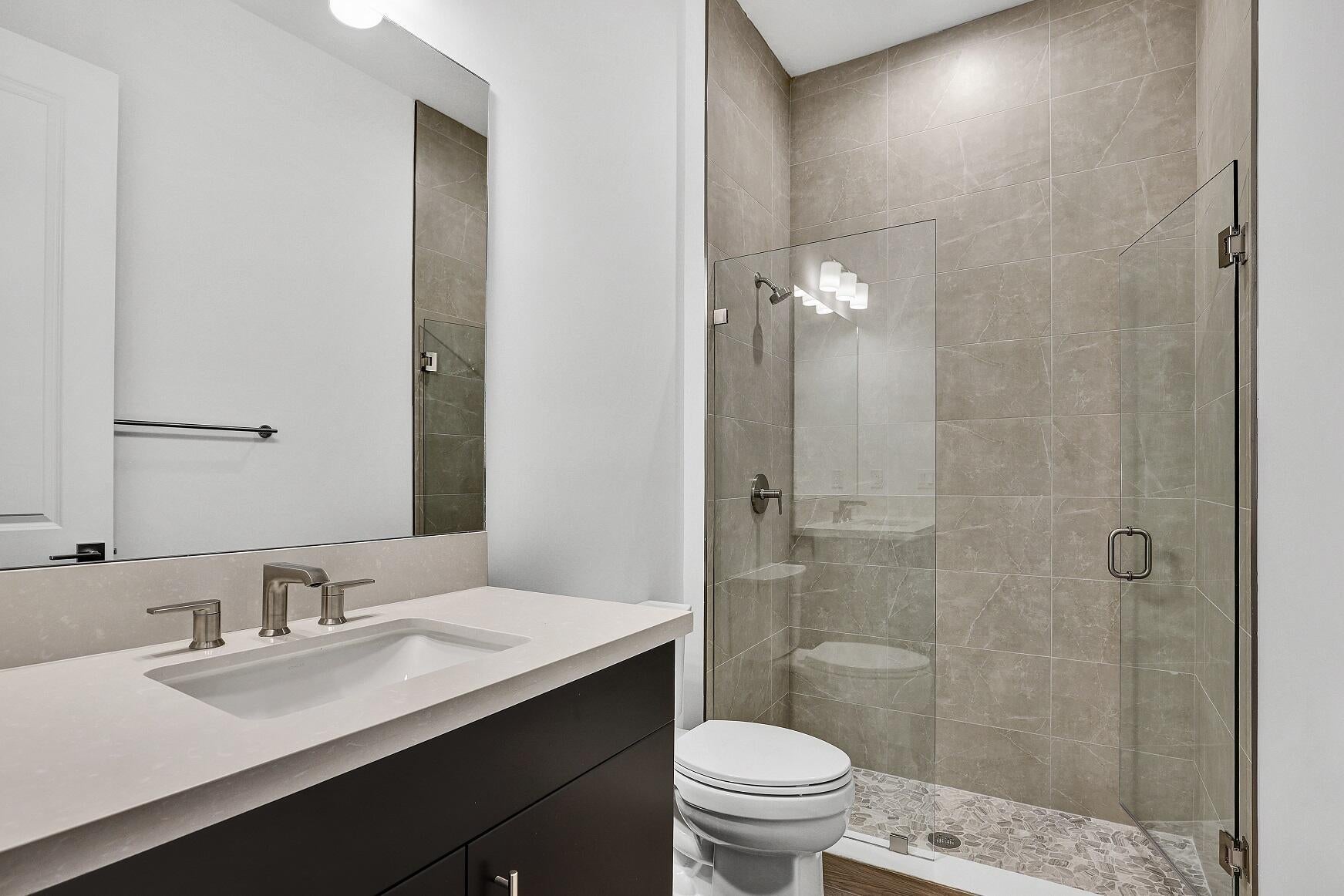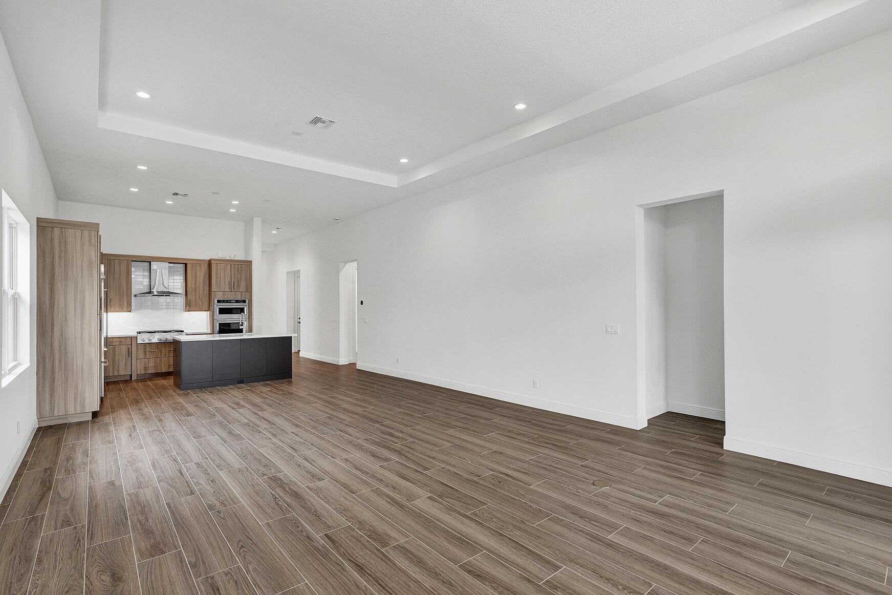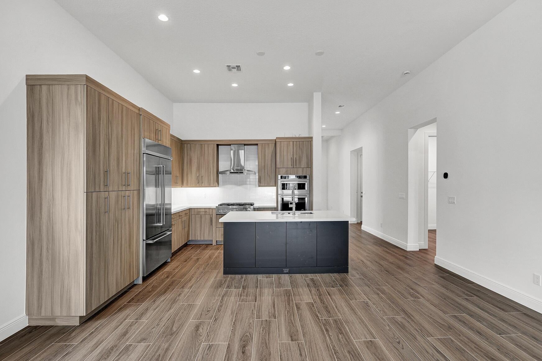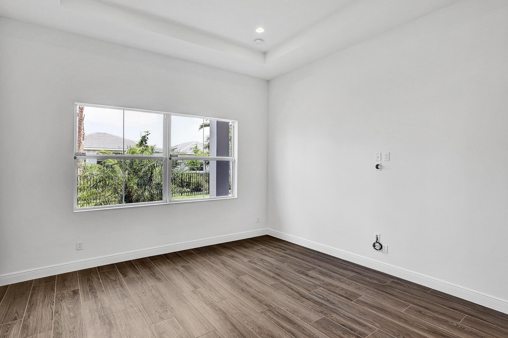 This McKenna home is stunning, boasting a striking Contemporary elevation with sophisticated veneer stone exterior that sets the tone for elegance. As you enter, you're welcomed by a coffered foyer with soaring ceilings, leading to an expansive 3-bedroom, 3-bathroom open-concept floorplan designed for both comfort and style.The entire home is adorned with exquisite porcelain tile flooring, providing a seamless flow throughout. The kitchen is a true standout, featuring quartz countertops, pantry, and upgraded appliances -- perfect for entertaining family and friends.Step outside onto your expanded covered lanai with luxurious in-ground spa, offering the perfect setting for relaxation. Located in Regency at Avenir, a manned-gate 55+ active adult community with large private clubhouse.
