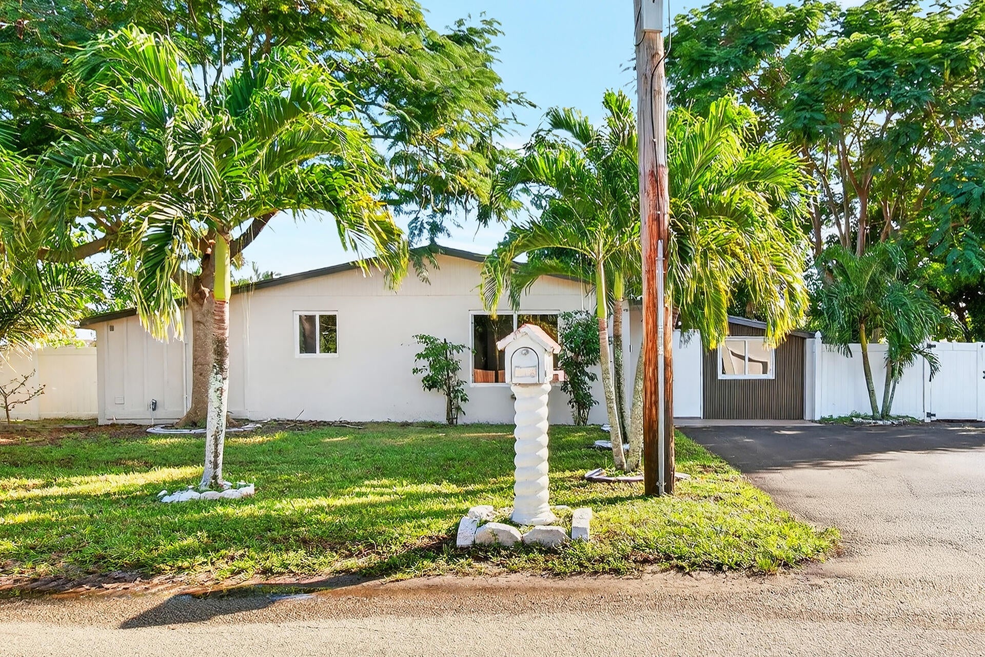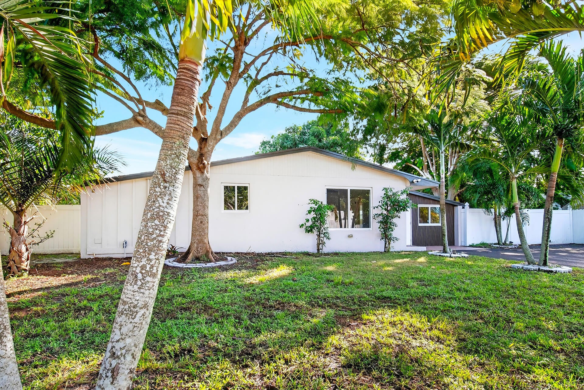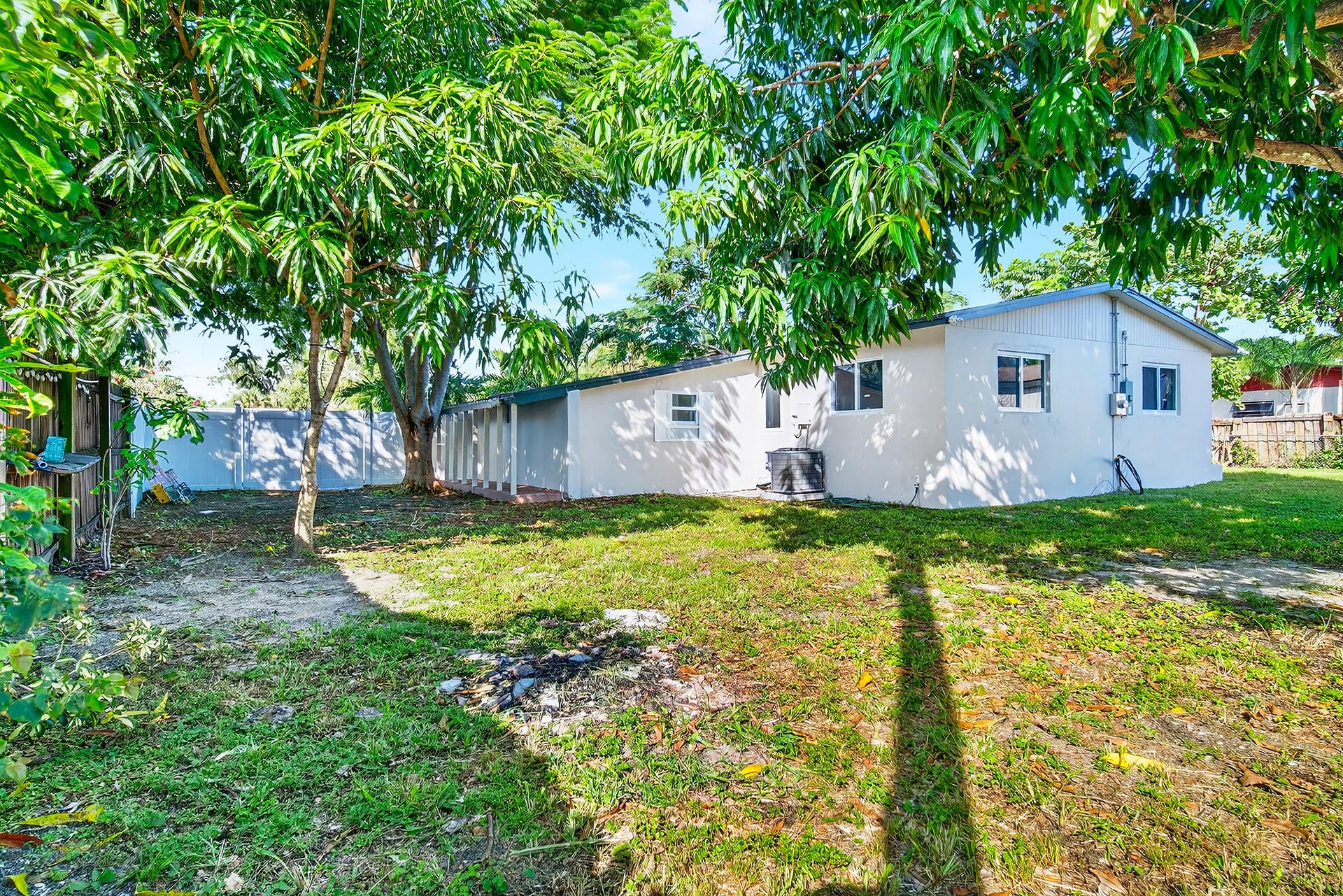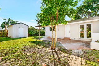 Don't miss the opportunity to live in the heart of WPB, make this house your home, use it as rental income, or both. NO HOA. Fully renovated, featuring a newer roof ('19), water heater ('21), HVAC ('24), and brand-new impact windows. The modern kitchen features new shaker cabinets, elegant quartz countertops, and a porcelain backsplash, complemented by new Samsung appliances and a LG dishwasher ('24). All baths were updated with contemporary finishes. New laminated flooring, recessed lighting, painted inside and out, and a new driveway. Enjoy the convenience of two side entrances, for guests or potential rental income. Spacious backyard, with a Shed, mango trees, and room for a pool. Includes security cameras. Located near the airport, shopping, dining, and highways. Move-in ready!