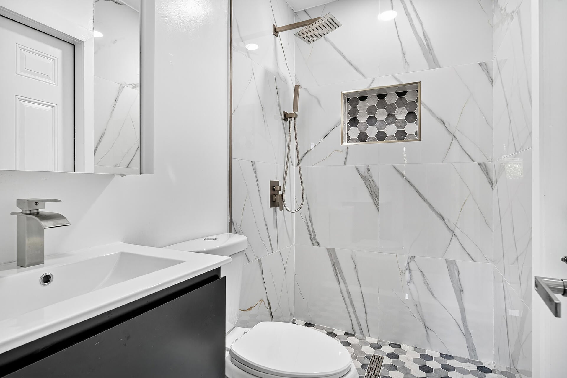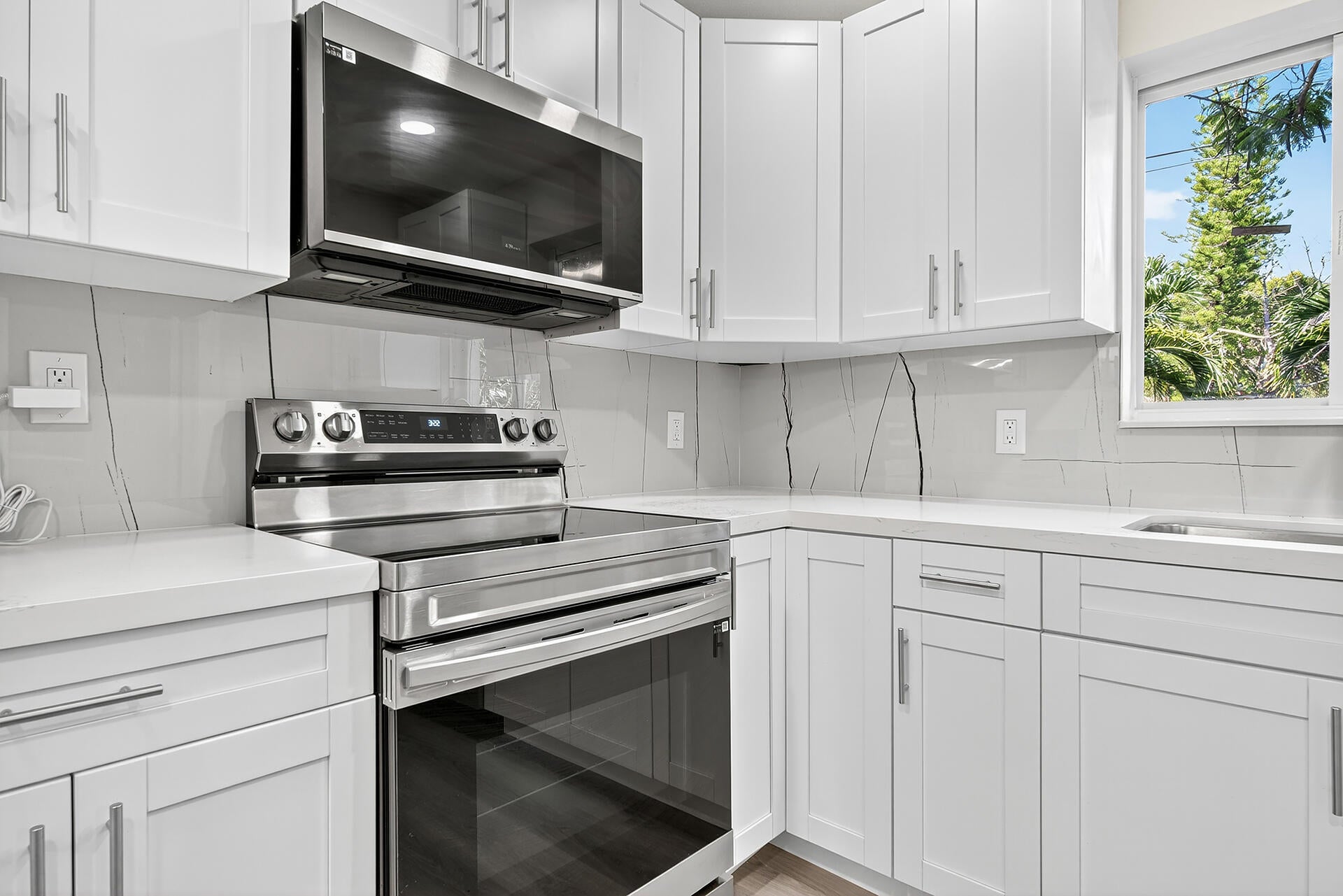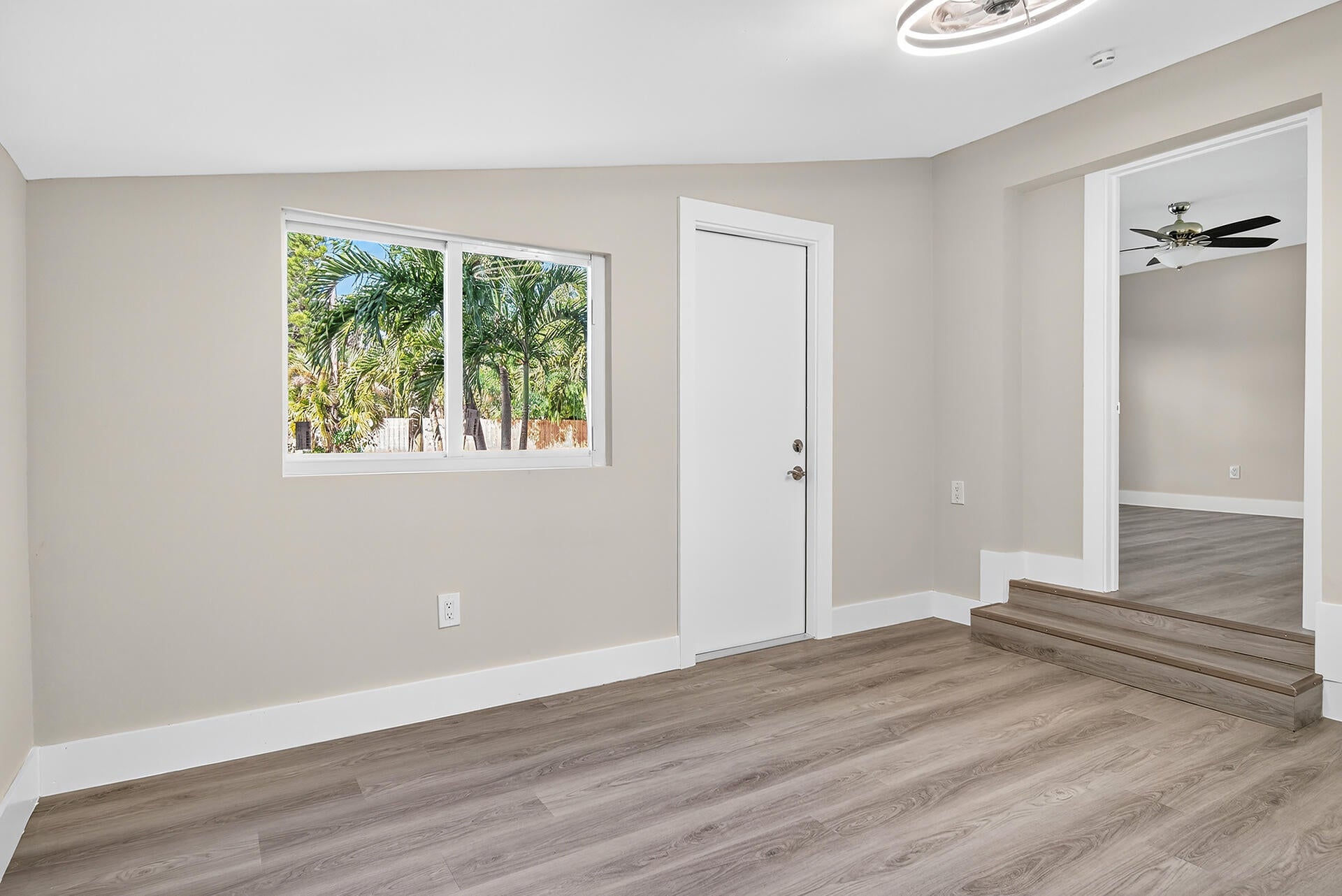 Don't miss the opportunity to live in the heart of WPB, make this house your home, use it as rental income, or both. NO HOA. Fully renovated, featuring a newer roof ('19), water heater ('21), HVAC ('24), and brand-new impact windows. The modern kitchen features new shaker cabinets, elegant quartz countertops, and a porcelain backsplash, complemented by new Samsung appliances and a LG dishwasher ('24). All baths were updated with contemporary finishes. New laminated flooring, recessed lighting, painted inside and out, and a new driveway. Enjoy the convenience of two side entrances, for guests or potential rental income. Spacious backyard, with a Shed, mango trees, and room for a pool. Includes security cameras. Located near the airport, shopping, dining, and highways. Move-in ready!