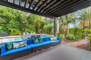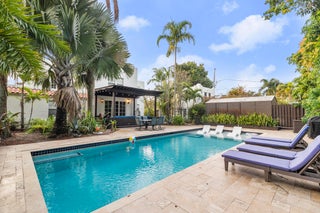 Two homes -- one booking -- a proven high-performing compound! This 8 BR / 5 BA estate features a 5-bed main home and 3-bed guest home with rear-alley access. Heated pool, 6-person hot tub, fire pit with six Adirondack chairs, and bright modern interiors. With $150K in upgrades (cabanas, barrel sauna + cold plunge, themed rooms, outdoor TV, pool table, upgraded loungers), potential income can reach $400K gross. Operate as one luxury resort-style estate or separate listings. Near Palm Beach Island & Downtown.