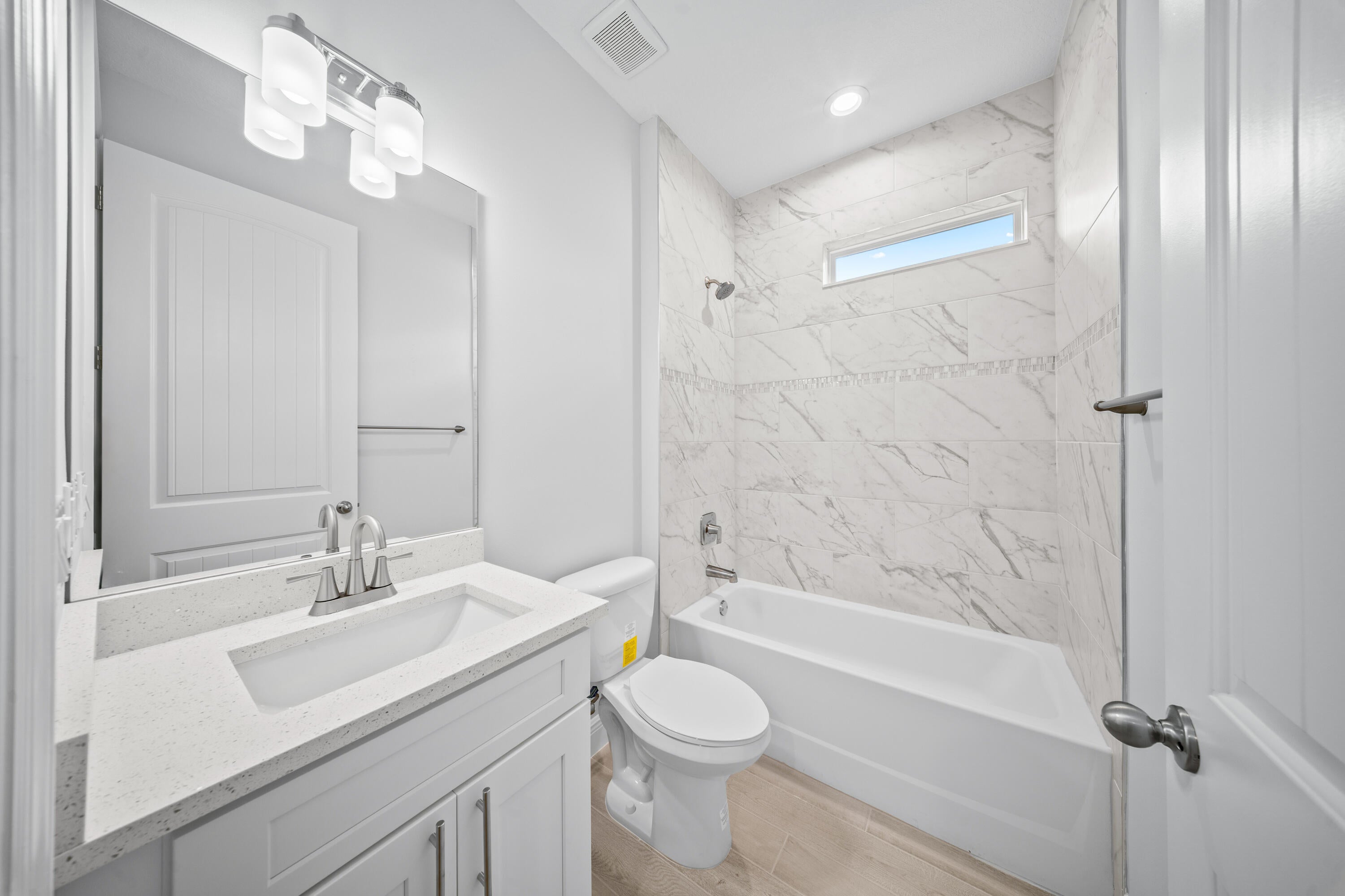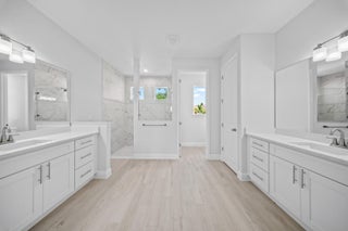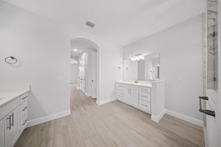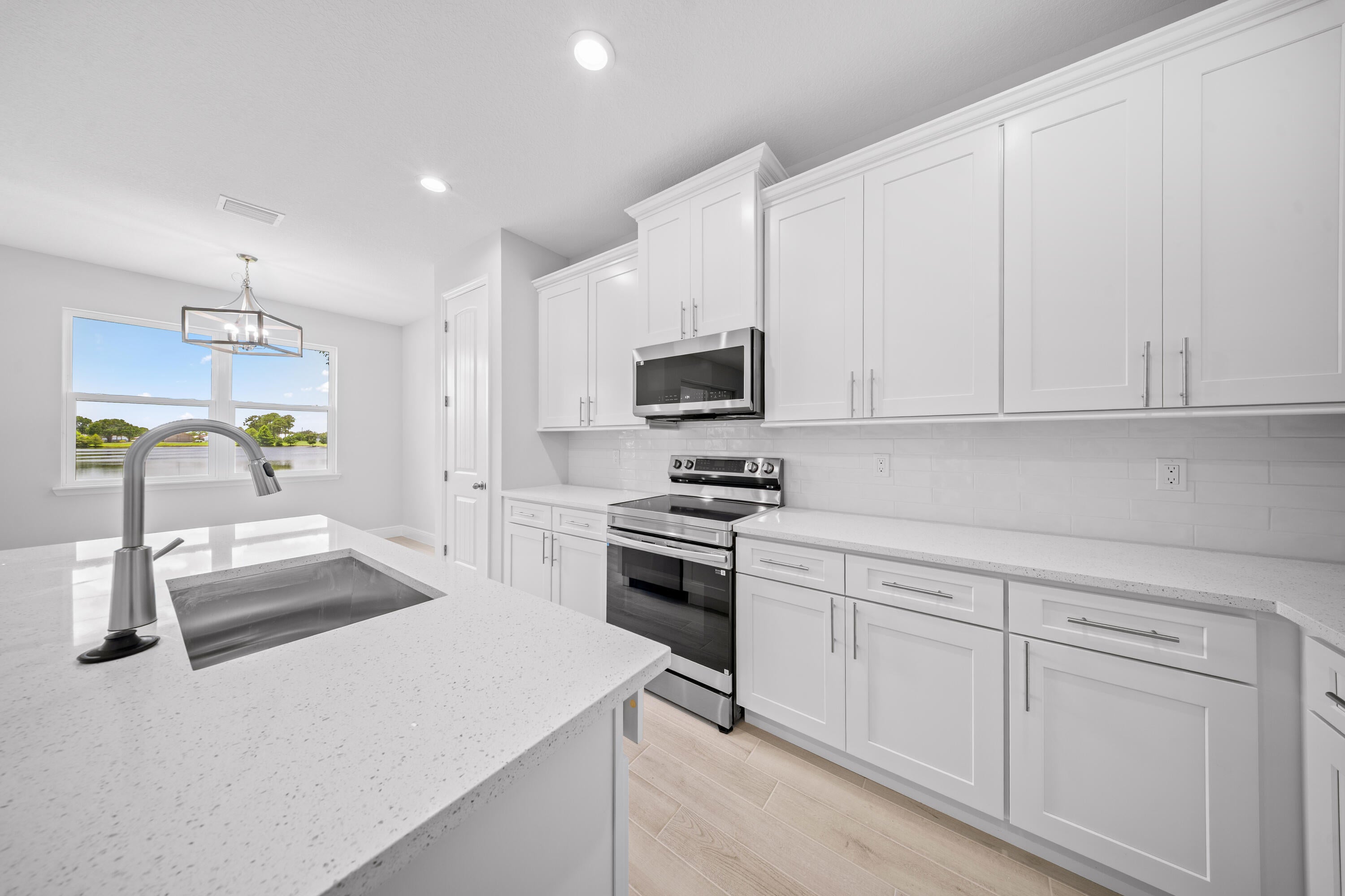 This custom new construction 4 bedroom Coastal model is loaded with upgrades. These upgrades include IMPACT windows, 8 foot doors, 9'4'' ceilings throughout, plank tile throughout the home (NO CARPET), stacked stone on the exterior, 42 inch white shaker cabinets with soft close doors and drawers, quartz countertops, stainless steel appliances including the fridge, big baseboards, upgraded tile in the bathrooms to the ceiling and the list goes on.