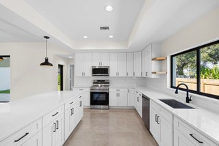 New Home MOVE-IN READY! No HOA! This stunning 4-bedroom, 3-bathroom home offers a modern open-plan layout. Featuring tile flooring throughout, including the back porch and entry floor, this home is filled with natural light, thanks to big impact windows, doors, and garage door. Low E Windows. The spacious kitchen includes quartz countertops, stainless steel appliances, and a large pantry. The luxurious master suite boasts a spa-like bathroom with a free-standing bathtub, shower, dual sinks, and a spacious walk-in closet. The back porch with ample space comes with water and electrical connections ready for you to install a Summer Kitchen.