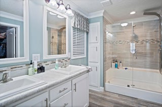 ONE OF A KIND! You OWN the land, no HOA. This 4 bedroom 2 bath manufactured home redefines expectations, blending beautiful design with superior craftsmanship. Built to latest specs, this spacious open concept invites entertaining with the gourmet kitchen, granite counters throughout, and tray ceilings. The walk in shower as well as a tub fit every need. YOU MUST SEE THIS HOME TO BELIEVE IT. Too many upgrades to list, but a few are large crown molding and base molding, chair rail, 3/4 inch subfloor, 2x6 exterior framing, 2.x4 interior framing. Ridgeway is not age restricted or pet restricted. Only minutes from beaches, boating, dining, golf, Ridgeway enjoys the cooling breezes from the nearby Intercoastal Waterway. See Features list in document section additional information.