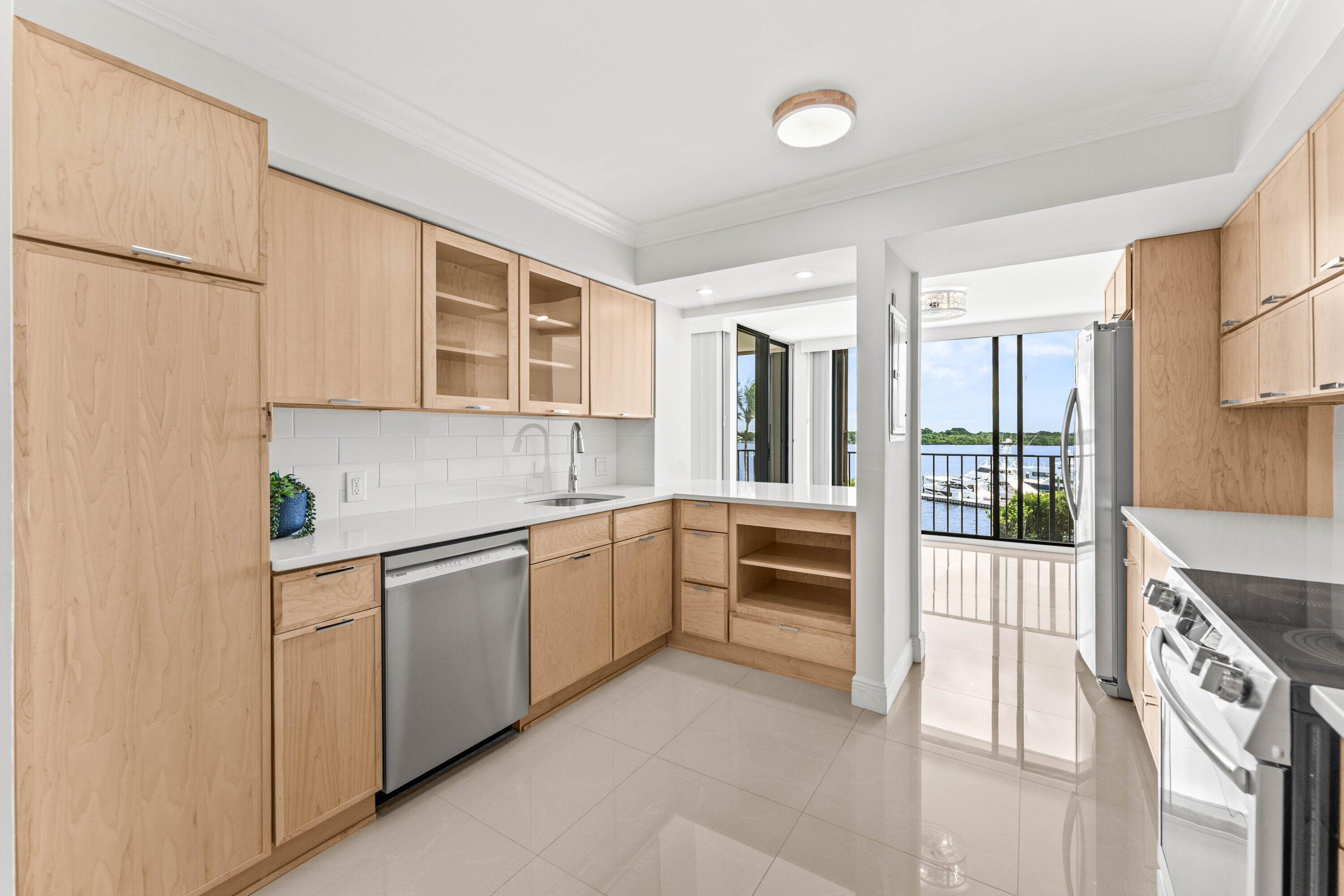 Don't miss this exciting all-newly remodeled GEM at Old Port Cove, (Quay South), with its 48 linear ft of waterfront for amazing sunrises, expansive daytime views and spectacular sunsets! It's tall ceilings, crown moulding, gleaming tiled floors and special lighting throughout its open flow of rooms are only waiting for your choices of furnishings to call it ''home.'' Designed and renovated with details beyond the norm, all of its former interior wiring has been replaced, all new-to-code, along with all new plumbing. Included is a state-of-the art Hydroviv water filtration system in both kitchen and bathrooms. The condo has all new solid-core custom-made interior doors by Jenn-Weld. The kitchen boasts custom grade contemporary natural maple cabinets and two pantries for additionastorage. Both kitchen and bathrooms have top of the line Caesarstone pure white quartz counters with 10-yr warranties and include under-cabinet remote-controlled lighting. Elegant tiled showers complement the separate bedrooms and vanity areas with ceiling to floor shelving. The Master "wing" enjoys a walk-in closet and an All-in-One Washer/Dryer unit. All appliances are high-end with 3-5 yr extended warranties provided in addition to a paid HVAC maintenance program until June 2027. Additionally, an allowance is being offered for the buyer's personal selection of glass shower doors in the bathrooms, which both feature the comfort of taller 19" Kohler toilets. Nothing to do except to move right in and enjoy this beautiful Unit for years to come!!