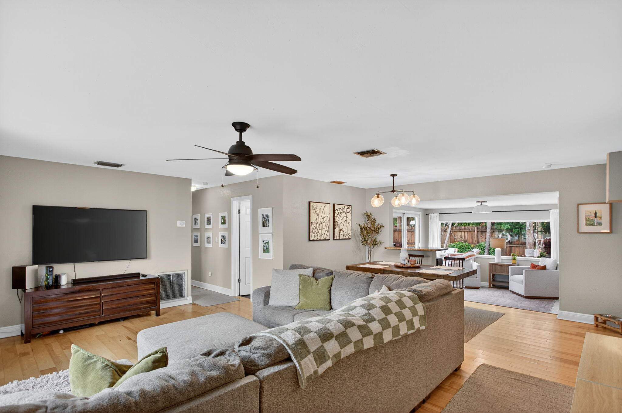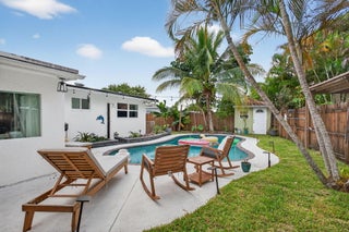 Welcome home to a move-in-ready South Florida retreat where every detail has been upgraded for comfort, style, and peace of mind! This 3-bedroom, 2-bath pool home offers an inviting feel from the moment you walk in bright, open, and thoughtfully designed for effortless everyday living. Inside, wood and tile flooring flow throughout no carpeting anywhere. The semi-split floor plan provides versatility, with the primary suite and guest room on one side and a third bedroom privately tucked off the den. The updated galley kitchen features modern Samsung appliances and connects seamlessly to the dining and living areas for easy entertaining.Both bathrooms were fully remodeled to the studs with quality finishes and new underground plumbing! Message me to see!Welcome home to a move-in-ready South Florida retreat where every detail has been upgraded for comfort, style, and peace of mind! This 3-bedroom, 2-bath pool home offers an inviting feel from the moment you walk in bright, open, and thoughtfully designed for effortless everyday living. Inside, wood and tile flooring flow throughout no carpeting anywhere. The semi-split floor plan provides versatility, with the primary suite and guest room on one side and a third bedroom privately tucked off the den. The updated galley kitchen features modern Samsung appliances and connects seamlessly to the dining and living areas for easy entertaining. Both bathrooms were fully remodeled to the studs with quality finishes and new underground plumbing! Approximately 95% of the original cast-iron pipes were replaced with PVC, and the remaining section professionally scoped was confirmed in excellent condition. Major improvements include a new Owens Corning dimensional-shingle roof (2025), new Trane A/C (2024), new natural-gas water heater (2024), and a new attic fan (2025) for better airflow and efficiency! All windows and doors are impact-rated, including custom PGI hurricane bay windows at the front and rear that frame views of the lush backyard and sparkling pool. The primary bedroom even features a relocated window overlooking the pool adding both privacy and natural light! Outside, the backyard feels like a private resort with a tiki hut, side-yard turf, outdoor shower, and a built-in natural-gas grill, hooked-up & ready for entertaining! Surrounded by mature landscaping, it's the perfect space to unwind, dine, and enjoy year-round! The sellers share that the neighbors are exceptional part of what makes this home and community so special. Every upgrade was done with care and long-term comfort in mind. This is the kind of home that feels right the moment you walk in and even better when you stay!