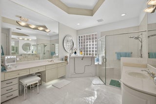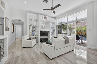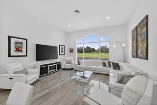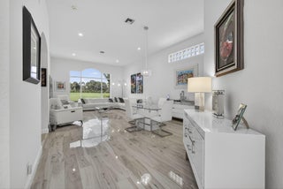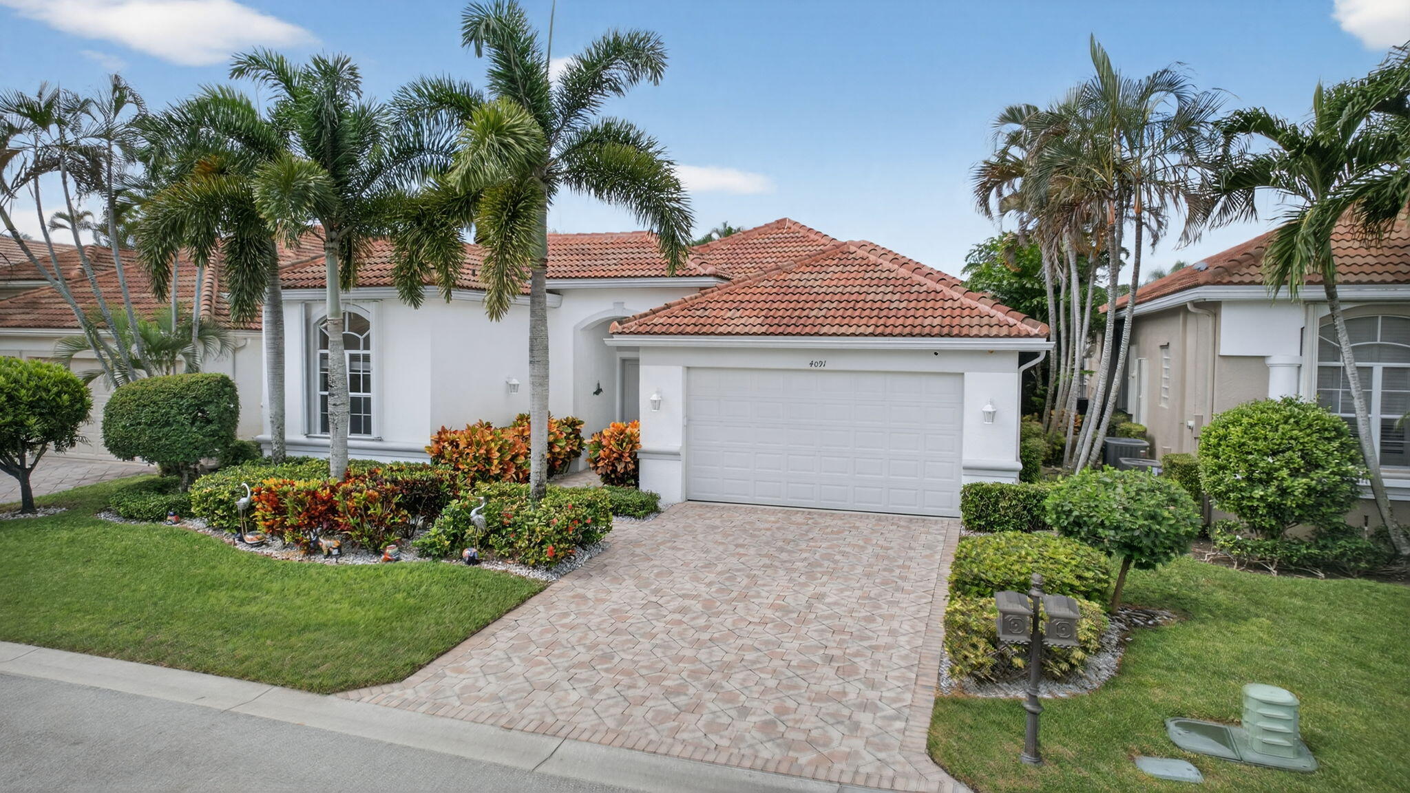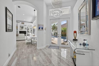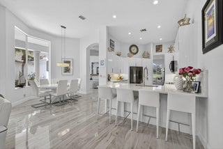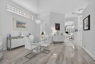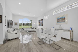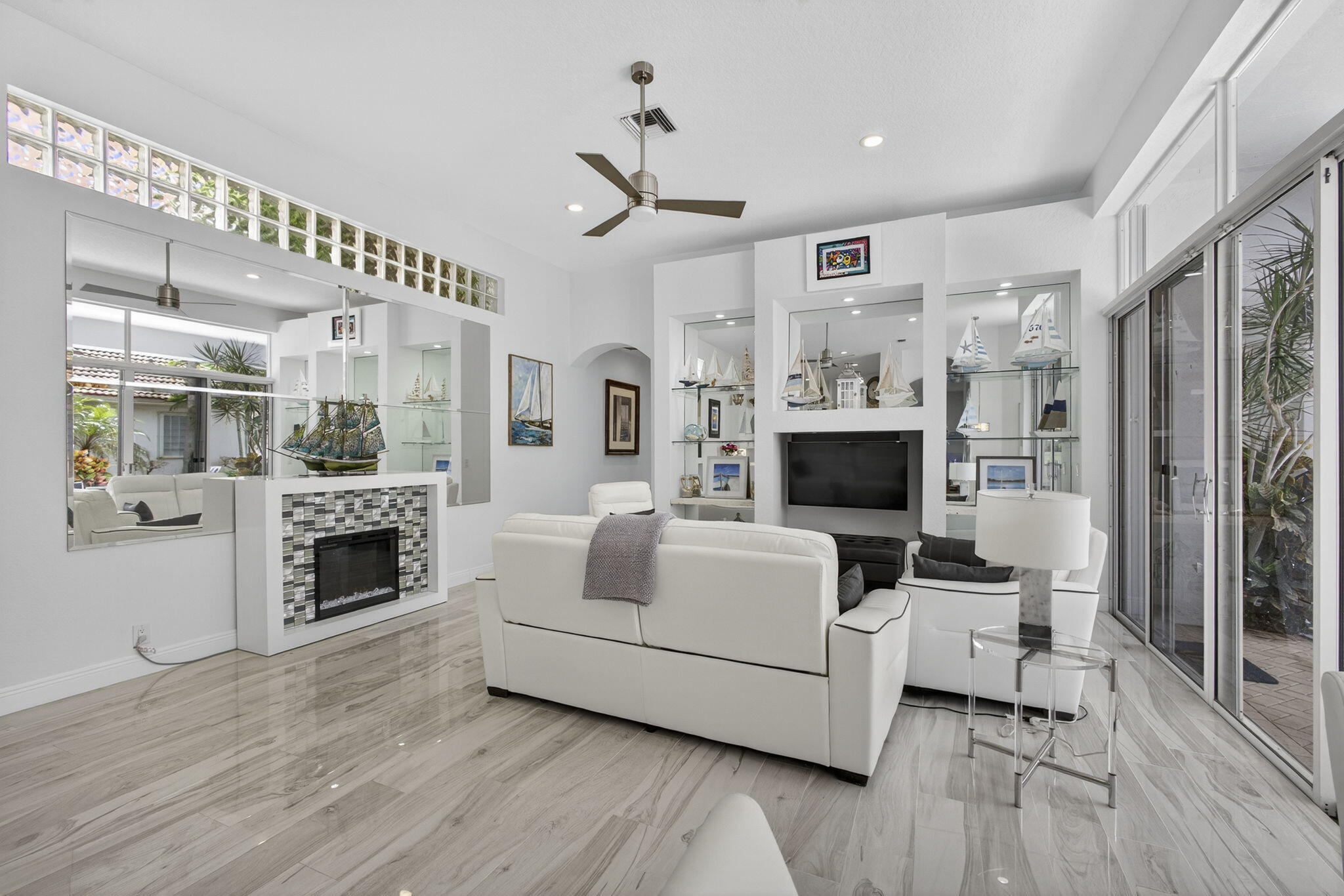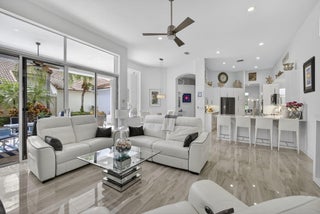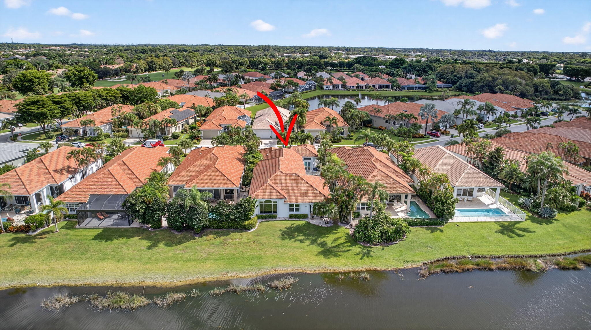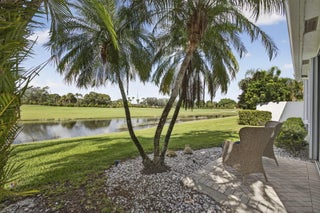 Rarely available courtyard model in Laurel Estates. This stunning home features a private courtyard w/ a large patio & pool surrounded by lush landscaping, plus an oversized 1BD/1BA guest suite with direct courtyard access, ideal for in-laws or guests. The beautifully updated kitchen offers white quartz countertops, white cabinets with pull-outs, and new appliances. Elegant gray & white French porcelain tile flows throughout. The primary suite features new impact French doors that open to the back patio with beautiful lake and golf course views. The great room and dining areas share the same scenic view. A full security system with cameras and remote access adds peace of mind, while the pool area includes a custom safety gate and tasteful blue accent decor for a tranquil outdoor retreat.Wycliffe Golf & Country Club Is a mandatory membership community, with one of the best lifestyles In South Florida. Showcasing two newly renovated challenging 18 hole championship golf courses, with contrasting styles. There are 14 Har-Tru tennis courts, with center court Stadium seating. The sports court features 8 pickle ball courts, plus 4 Bocce courts. Private dining room "Flavours" surpasses the highest expectation. The "Watermark", dining room continues to have great parties and entertainment, and who doesn't love our "Grill" for breakfast, lunch and dinner. Wait until you see "The Cliff". This lobby bar and lounge is the highlight of the recent renovation. In addition, we love our state-of-the-art fitness center, with Pilates studio and classes, aerobics, yoga, spin, water aerobics, personal trainers and more fitness classes than a person could take in a day. Thyre is our full-service spa, offering retail products along with fine services. Enjoy the sauna, steam, and Olympic Size Swimming pool. Wycliffe offers Ladies and Men's card rooms, clubs and organizations for every interest. Fabulous programs and special events, lots of dinner dances, trivia nights, shows and activities. When needed we even have physical therapy on campus. Best of all we are located just minutes from the International Polo and Dressage and Jumping events, at the Wellington Equestrian Center. Centrally located, Wycliffe has easy access to Boca Raton, Delray Beach, Palm Beach, City Place and the West Palm Beach airport. Wycliffe homeowners association provides Comcast high speed internet, telephone and cable TV to contain the X1 platform with whole-house DVR, High Definition and 3 additional HD boxes which cover up to 4 TVs with voice activated remotes, including HBO and Showtime. The high speed internet service of 150 mbps speed and telephone service, local and long distance calling, included in the HOA. All landscaping maintenance, sprinkler systems, exterior painting, pressure cleaning the roofs, and security is included in the quarterly HOA maintenance fee. Wycliffe has roving guards, paramedics on campus, monitored alarm systems, and manned gates.