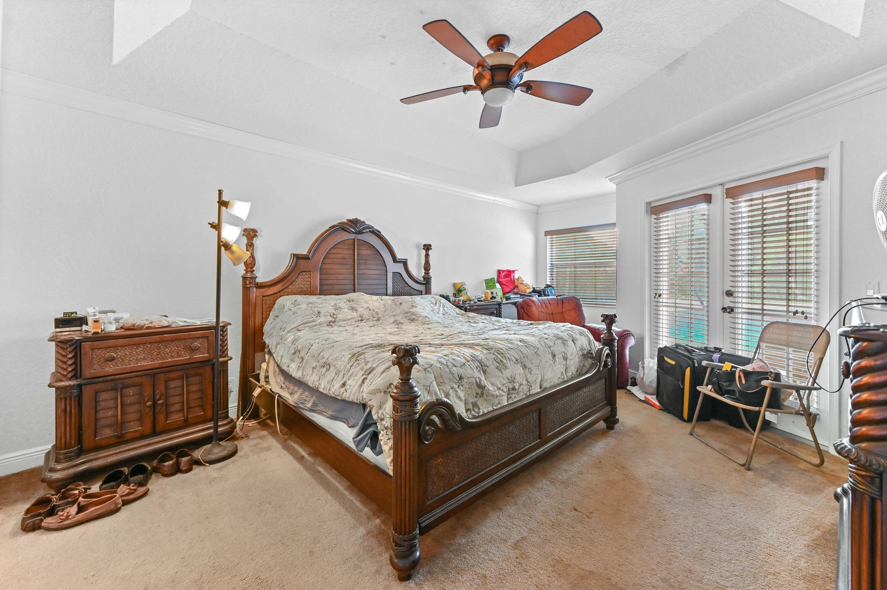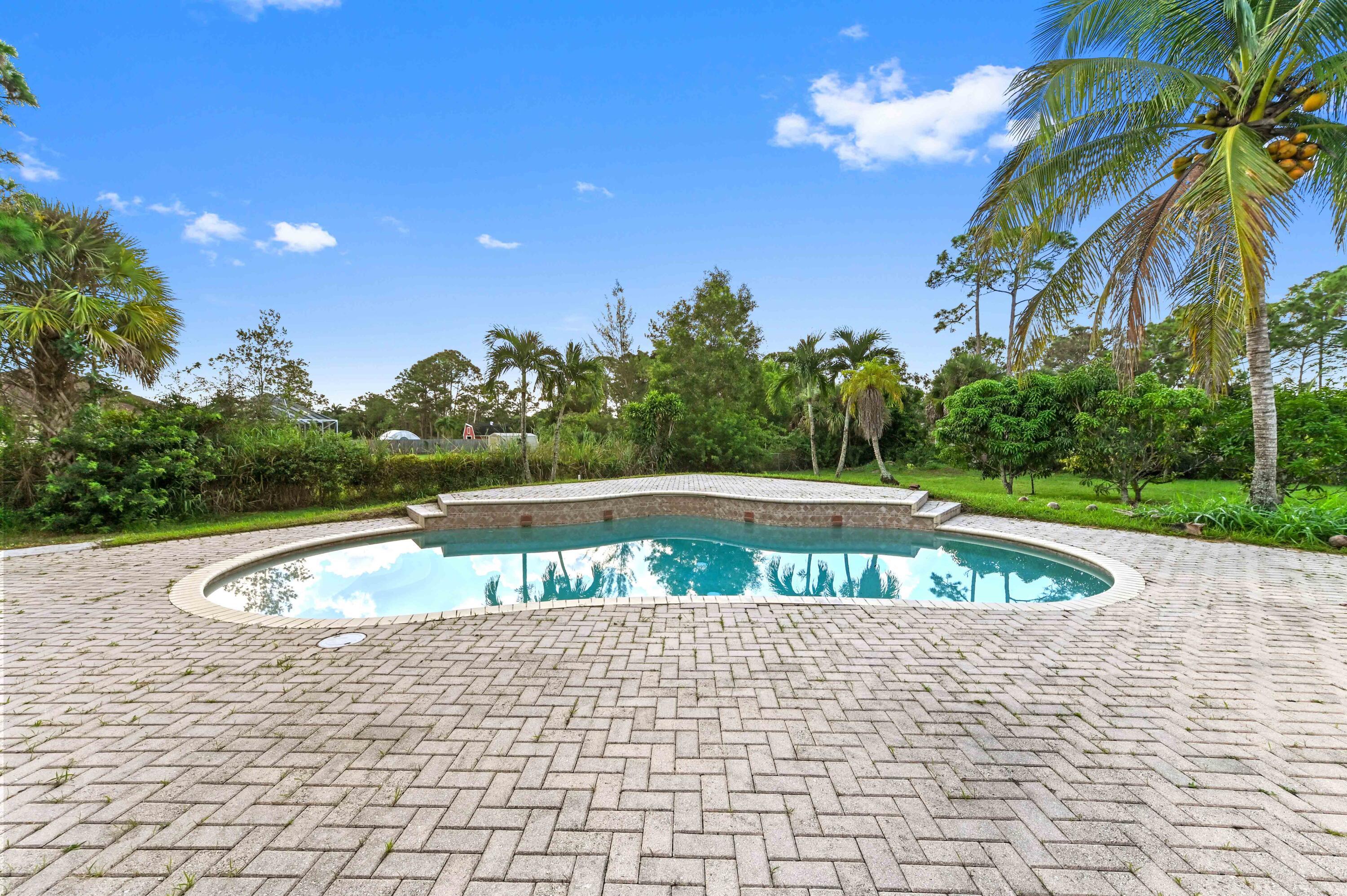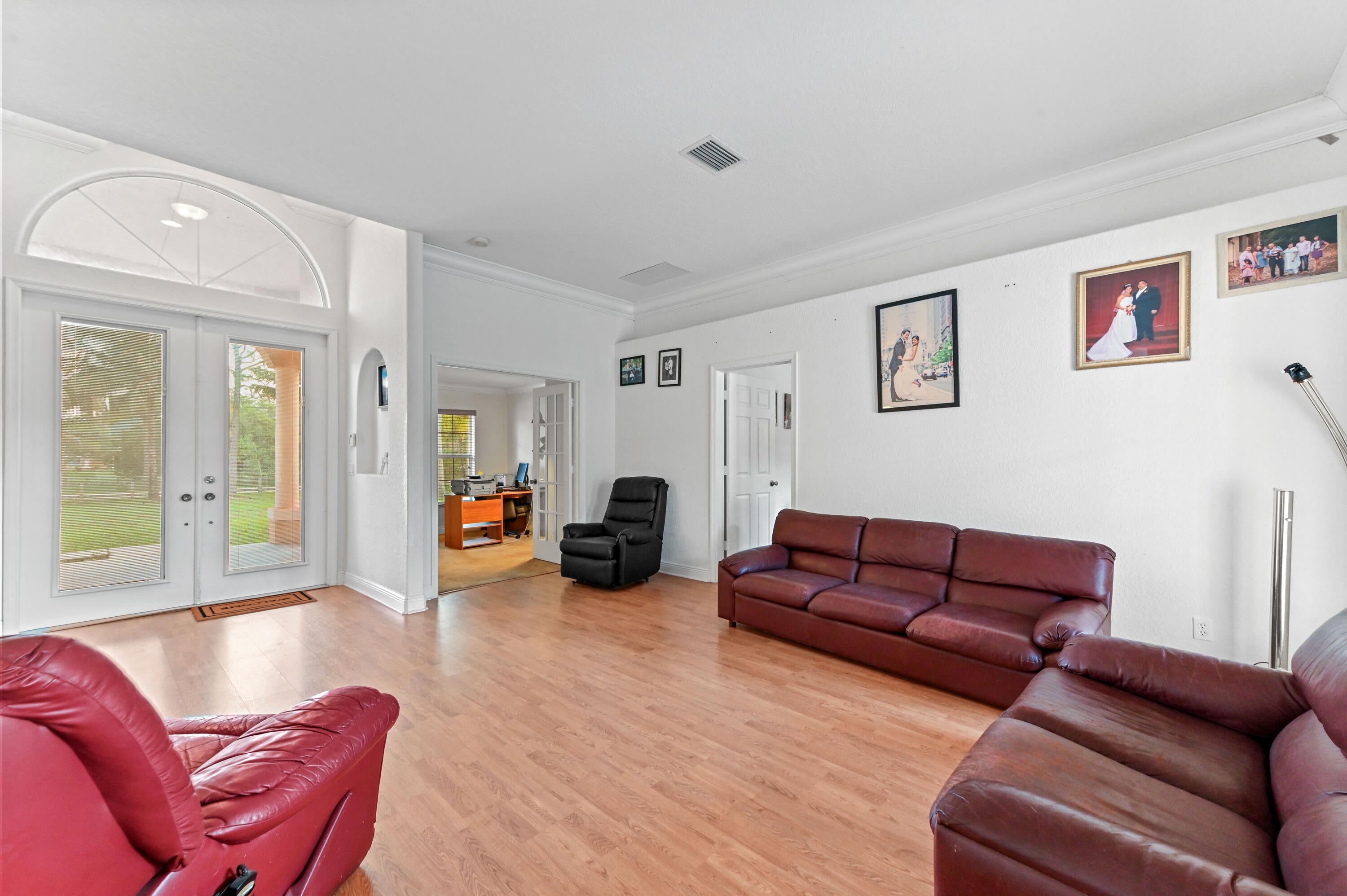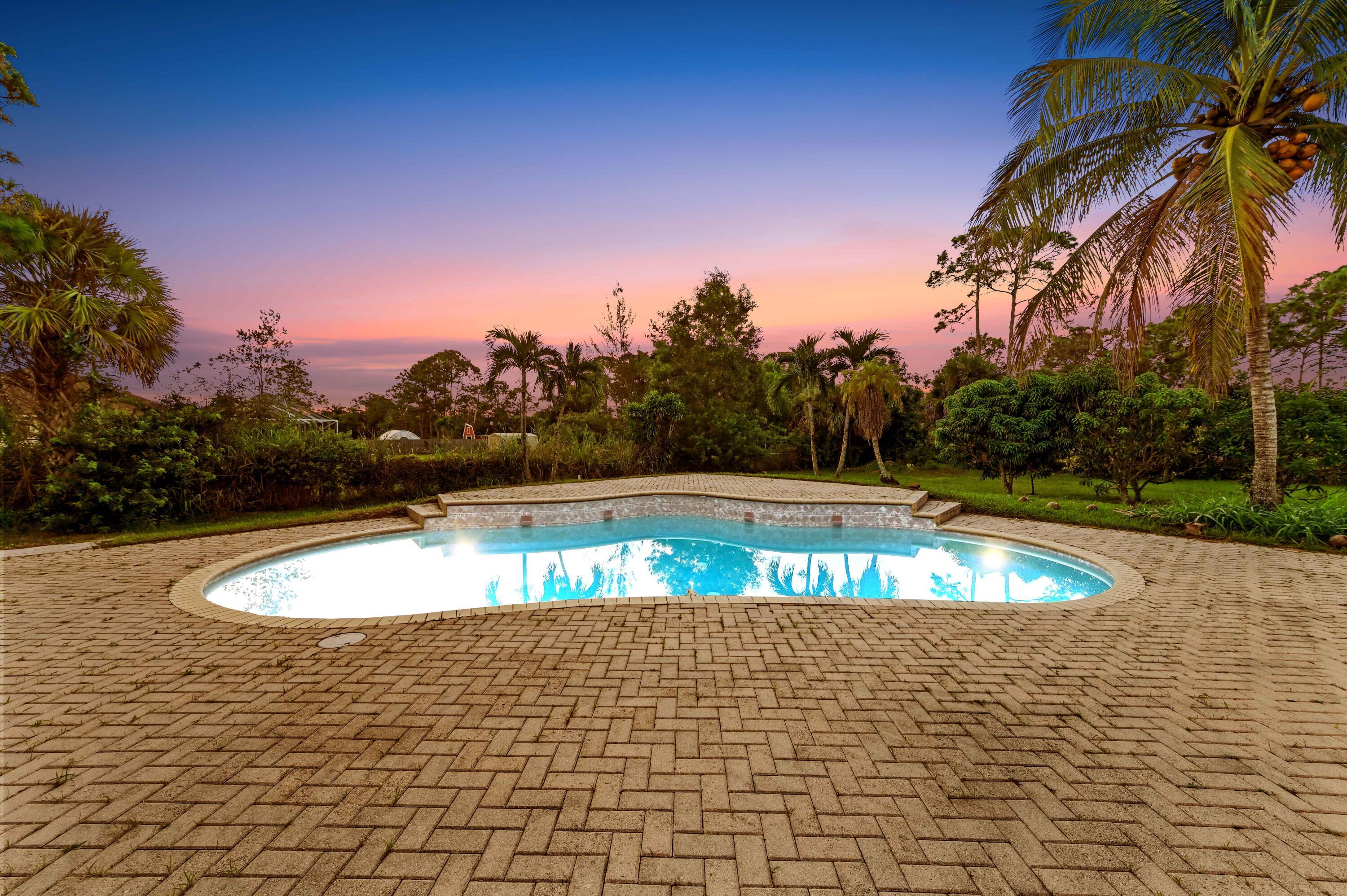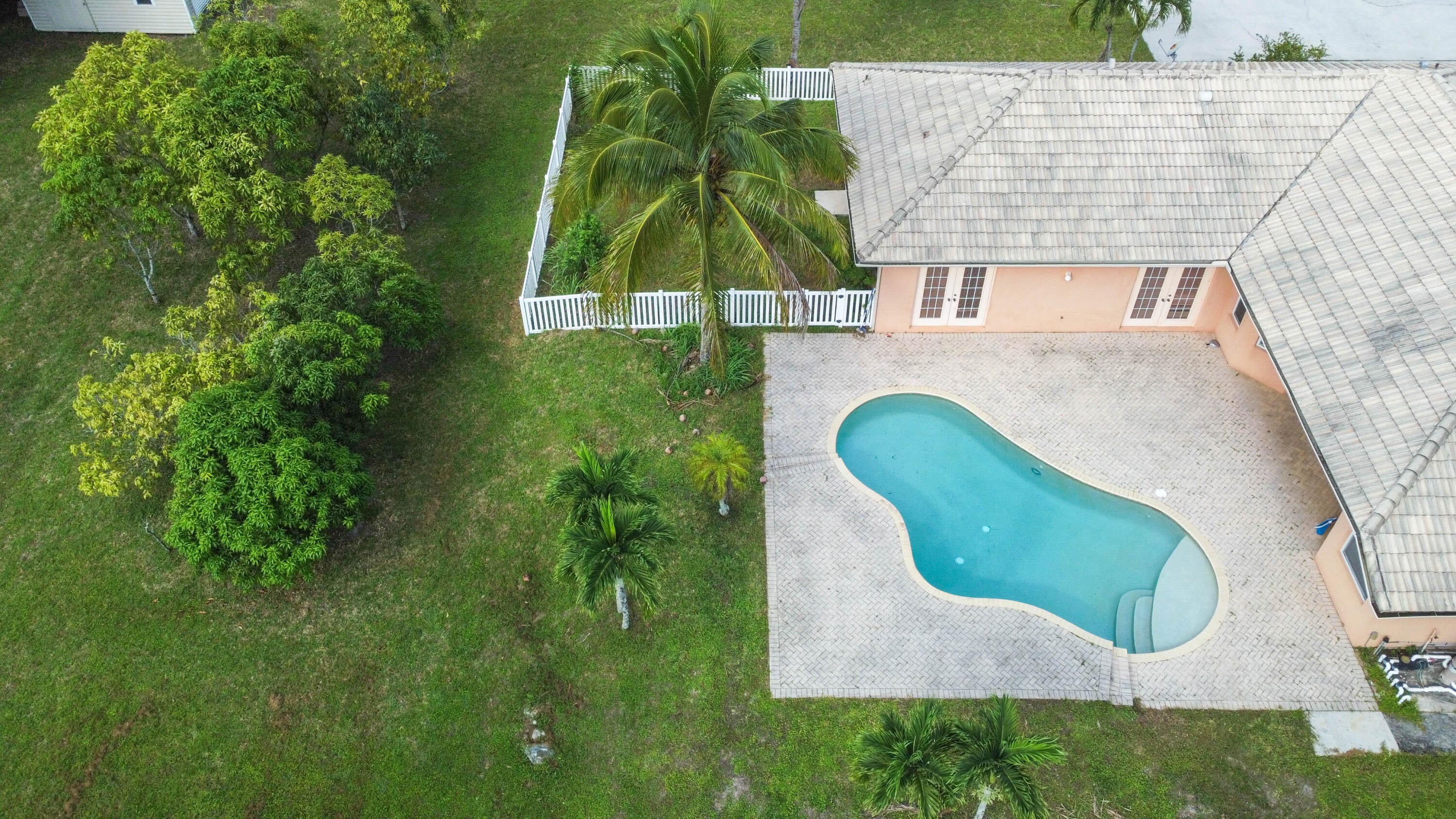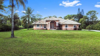 Prepare to be amazed by this truly stunning and feature-rich ranch home, perfectly situated on a fully fenced 1.25-acre canal-front lot in a highly desirable Acreage location. This magnificent property was designed for luxury and comfort, featuring five bedrooms and three baths, all meticulously planned. Step inside to discover a spacious and elegant interior boasting designer features, including knockdown textured walls and ceilings and stylish wood laminate flooring throughout the main areas. The home offers both formal living and dining spaces, complemented by a truly huge family room perfect for large gatherings.The heart of the home is the gourmet kitchen, which features granite counters and a suite of designer appliances. The masterful layout includes a highly sought-after three-way split bedroom plan, ideal for privacy or accommodating an in-law suite. The deluxe master suite is a true sanctuary, boasting a beautiful tray ceiling, an elegant gorgeous bath, and convenient His and Hers closets. Functionality is paramount, with a side-entry garage and a spacious utility room complete with a folding area and laundry tub. This great home is located just minutes from fine shopping, dining and much more!