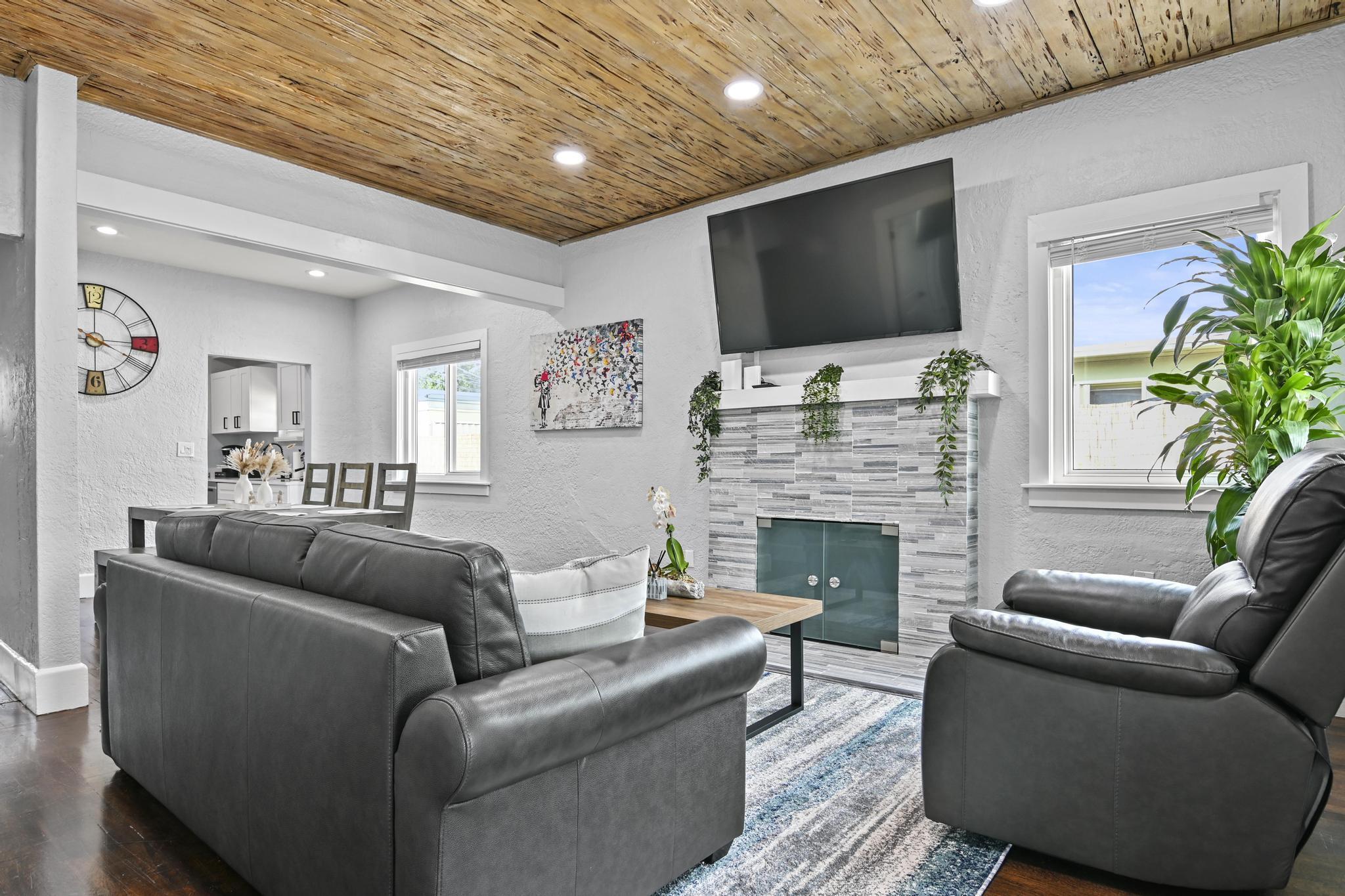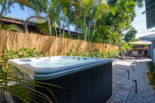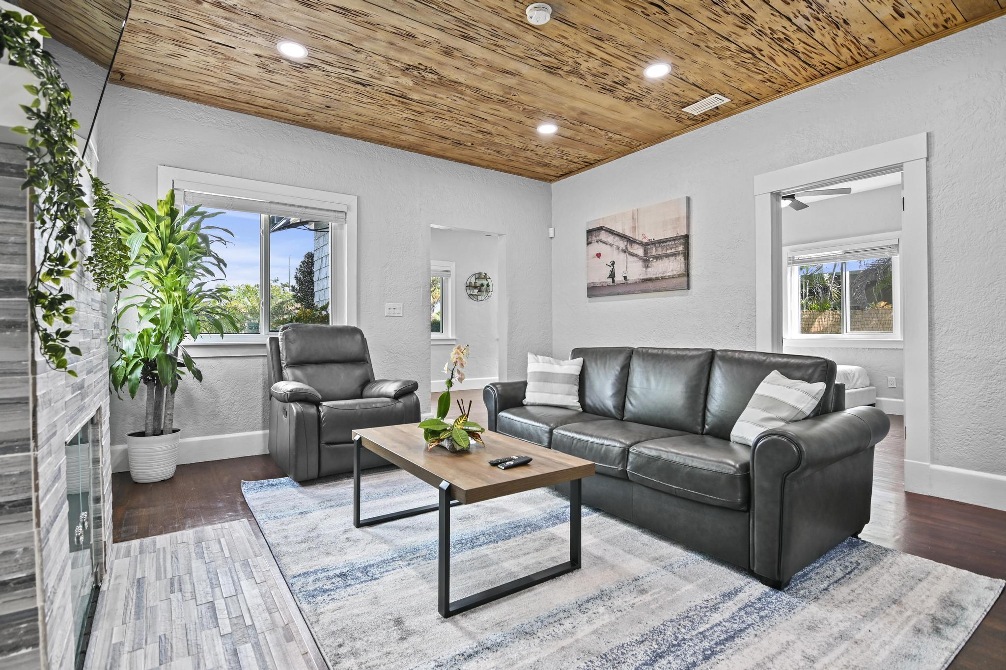 Great DUPLEX opportunity to own this amazing home with a GUEST house in the backyard. START COLLECTING INCOME RIGHT AWAY! FURURE BOOKINGS ARE AVAILABLE TO THE NEW OWNER! The main house is a 2 + DEN/ OFFICE bedroom, 1 bathroom, and the guest house is 2 bedroom, 1 bathroom with a full kitchen, offering incredible rental potential. Live in one and rent the other, or use both as an income producing short-term rental. The spacious backyard is perfect for entertaining, featuring a HOT TUB for ultimate relaxation. IMPACT WINDOWS, throughout both homes provide peace of mind and energy efficiency and hurricane safety, Both houses has newer AC . With no HOA restrictions, bring your pets, store your boat, or RV. Minutes from beaches, dining, and major transit lines.