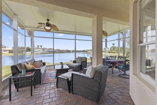 Impressive waterfront home on oversized lot located in sought after Portofino Shores community! Welcome to this luxurious and modern 3 bed 2 bath open concept floor plan with cathedral ceilings, tile flooring plus an oversized screened lanai surely to leave you relaxed! A bonus patio space provides room for grilling and chilling. Portofino Shores offers an abundance of amenities which are well maintained and add to the beauty of the community. Amenities include a lovely clubhouse, pool and patio areas, tennis, pickleball and bocce courts, a fitness center as well as double sidewalks and a preserve trail. You will enjoy gorgeous expansive lake views throughout this stunning home! Close to white sandy beaches, world-famous fishing, boating, lush golf courses and fine dining! Check it out!