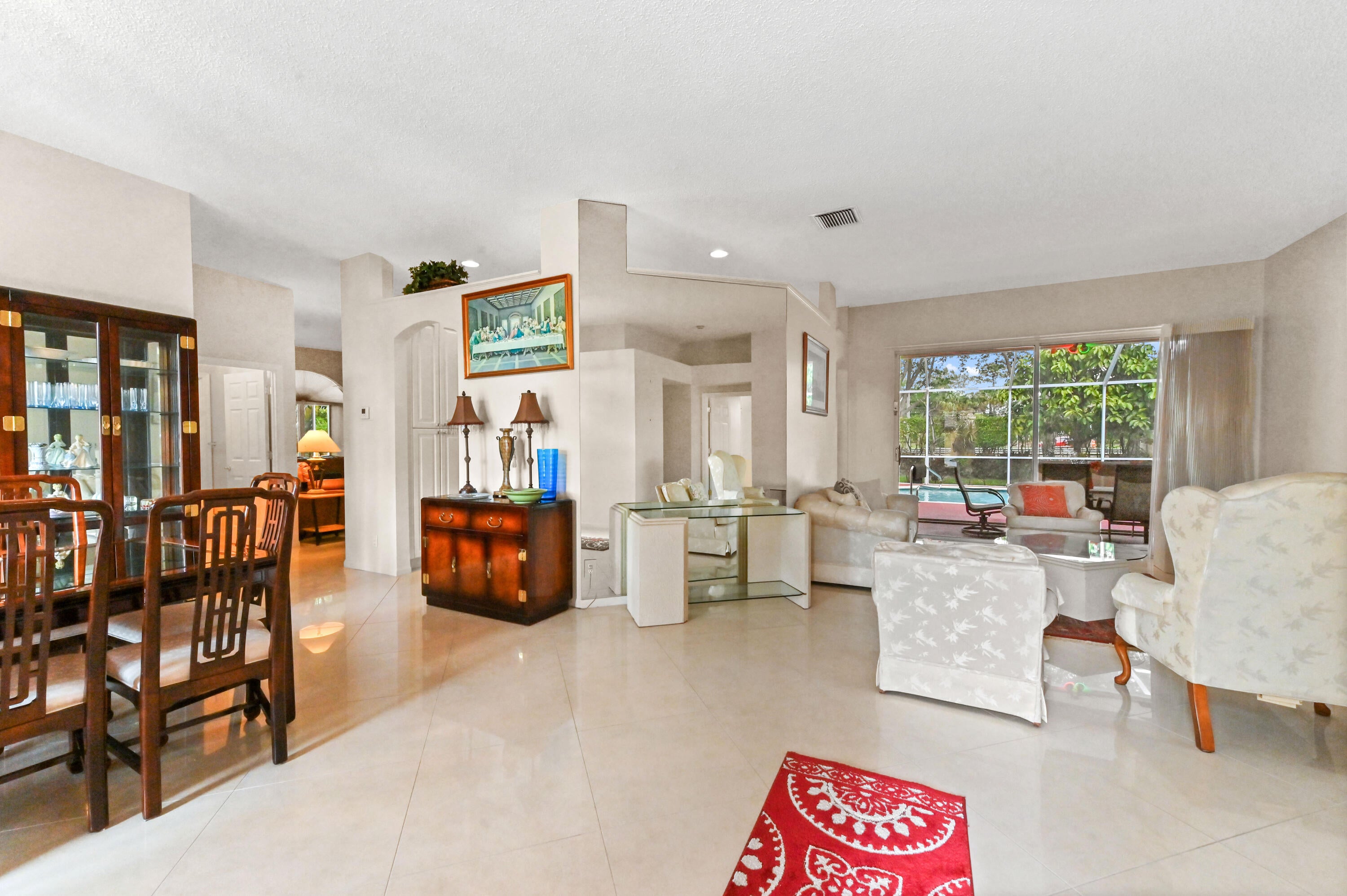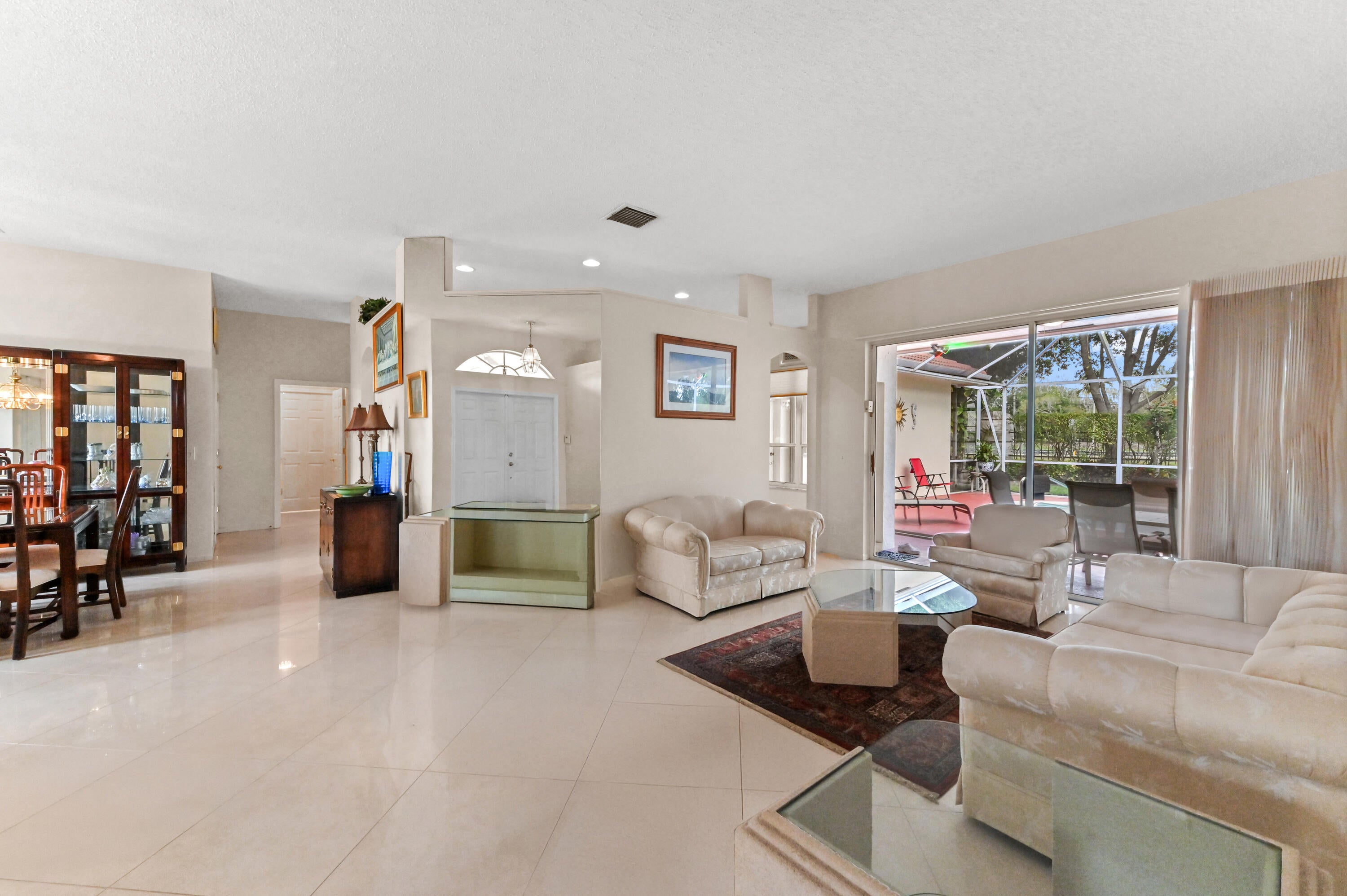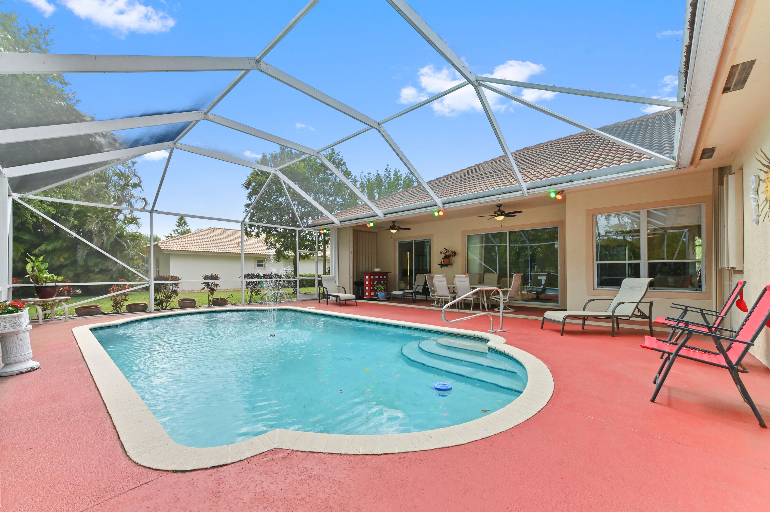 Welcome to this spacious one-story home in the desirable Cypress Lake Estates community. It offers 5 bedrooms, 3 bathrooms, and 2,514 square feet of comfortable living space all on an extra large private lot. This well-maintained home features a screened pool and patio, perfect for relaxing or entertaining year-round. Enjoy peace of mind with accordion shutters on all windows, including the main door and patio. The home offers a bright, functional layout with tile flooring throughout the living, dining, and family areas, plus a versatile office/den ideal for remote work or study. The kitchen is equipped with appliances, ample cabinet storage, and a countertop with bar seating, flowing seamlessly into the living spaces.A dedicated laundry room includes a tub, washer, and dryer for added convenience Retreat to the master suite featuring a dual-sink vanity, separate tub, and shower. A 2-car attached garage completes this wonderful home, located in a sought-after neighborhood with great amenities and easy access to schools, shopping, and dining. Don't miss this incredible opportunity to own a well-maintained home!