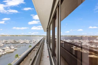 Outstanding marina and ocean views from every room of this 2BR / 2.5BA luxury condo. Wood flooring throughout the main living areas. Spacious living room with panoramic views and a formal dining area off the kitchen. The kitchen features white cabinetry and an updated stainless steel range. Full-size laundry room. Large primary suite with two walk-in closets and a spacious bath offering dual sinks, a soaking tub, and a walk-in shower. Private guest suite with its own bath, including a tub/shower combo and walk-in closet. Enjoy the large, covered, wrap-around balcony and floor-to-ceiling windows and doors that showcase the incredible views.Lake Point Tower is a luxury building offering top-tier amenities including a newly renovated fitness center, new pool, 24-hour concierge, secured garage parking, and a 24-hour manned gatehouse. Conveniently located near PBI Airport, shopping, dining, golf, and miles of beaches.
