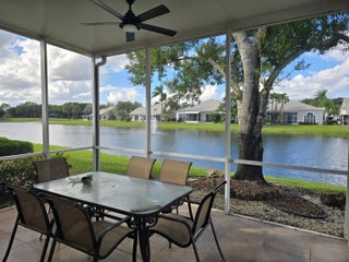 Beautiful home that is open and bright. Very spacious living and dinning area. Great outdoor space with a covered and screened patio with great views of the lake. Large kitchen w/ breakfast area and family room. Primary bedroom large with a Hugh walk in closet w. build ins, 2nd bedroom is nice size, plus a small den could be office or study. the community has pool, playground, tennis and more . Great schools , Close to shopping and entertainment and more .