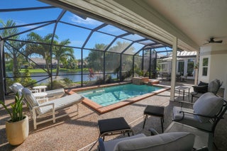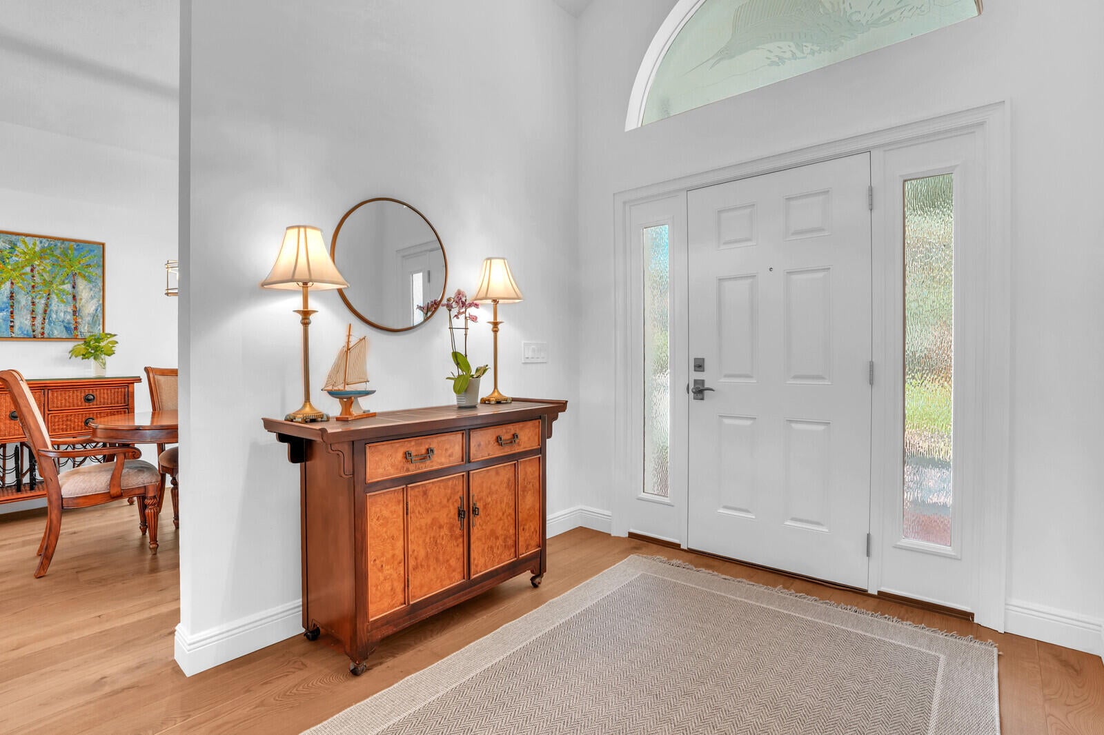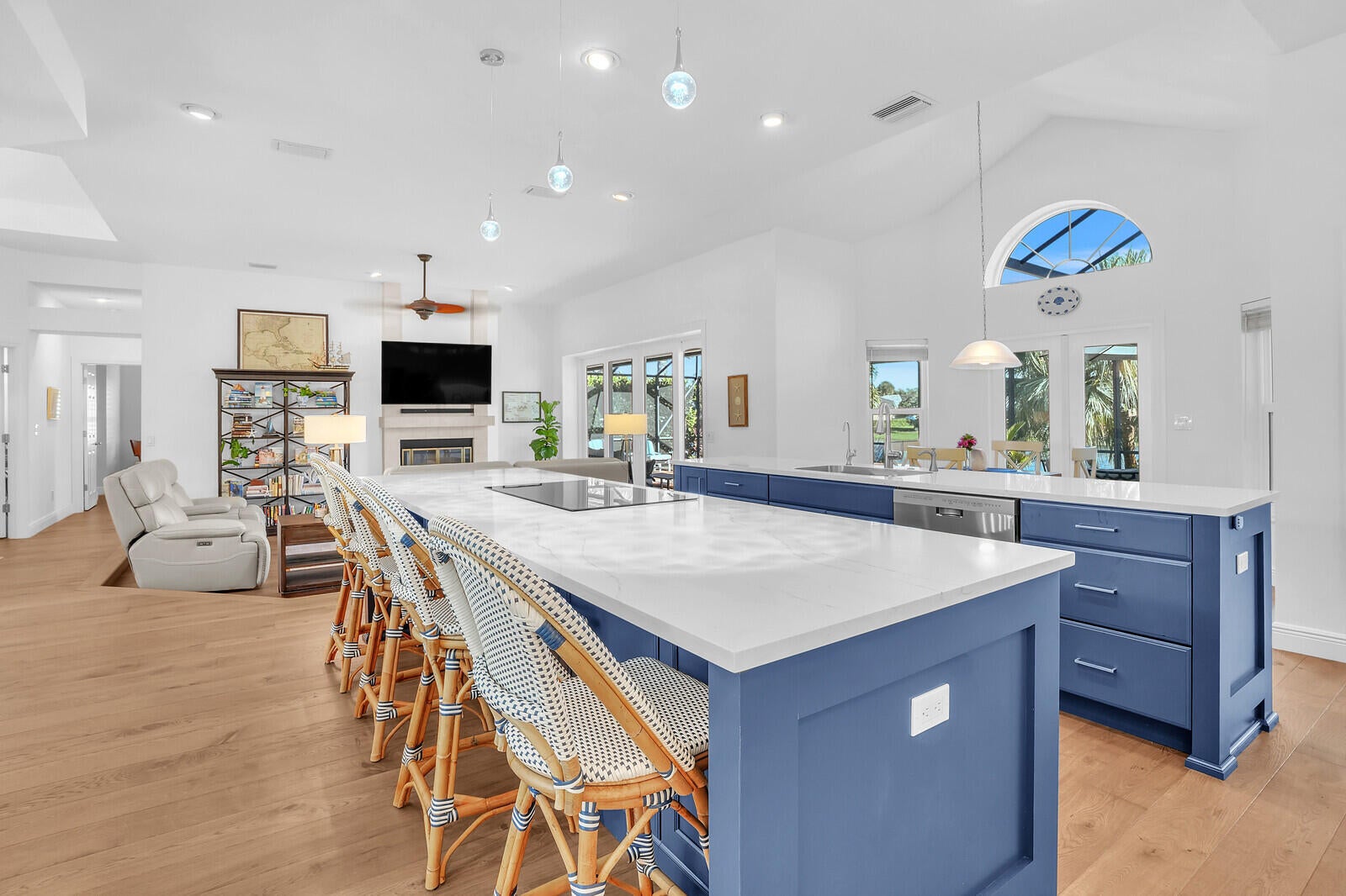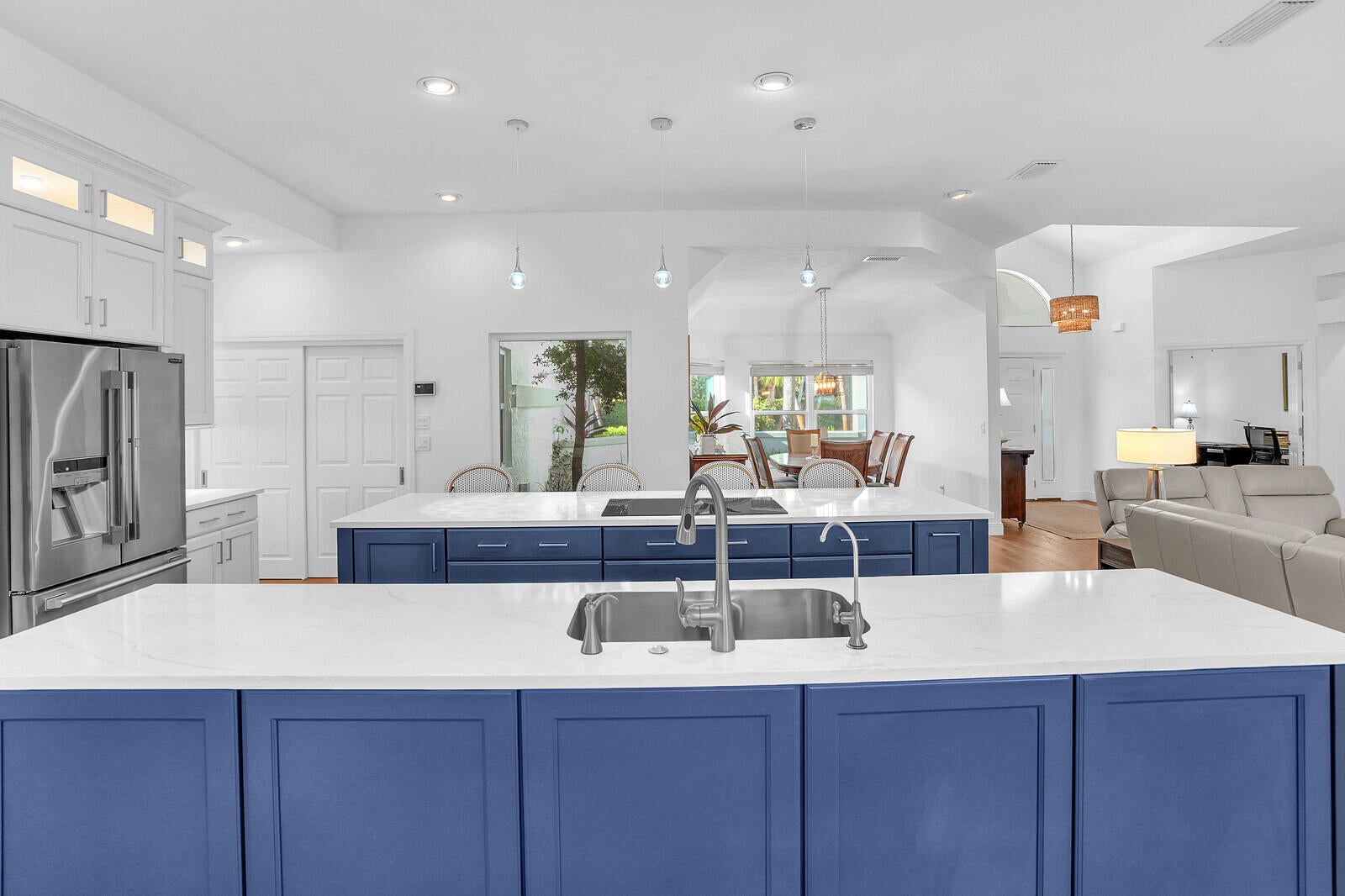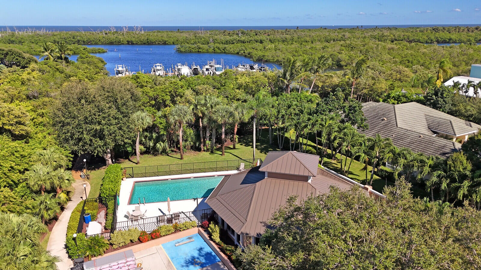 Bring Your Boat! Experience luxurious coastal living in this exquisitely remodeled 3-bedroom, 3.5-bath lakefront, pool home with 2-car garage, located in the sought-after gated community of Marina Bay in Hobe Sound. One of only 37 homes in this private waterfront enclave, this former model home is perfectly positioned on a generous .459-acre lot, offering rare privacy, tranquil lake views, and an assigned 50-foot boat slip in Marina Bay's private marina just off of the ICW. Completely reimagined between 2023 - 2025, the heart of the home features a forward-thinking dual-island kitchen design, with custom one-piece quartz countertops, a seamless motion-activated sink, and reverse osmosis water to both the sink and refrigerator. Outfitted with Signature Kitchen Suite Wi-Fi enabledappliances including a combination speed-cook and steam wall oven, 36" French door refrigerator with craft ice, and a 36" flex induction cooktop, this space blends elegance and efficiency. Pendant lighting, custom pantry cabinetry, and new ceiling lights elevate the functionality and aesthetic. New Old Growth French engineered hardwood flooring flows throughout the main living areas and bedrooms, while the entire interior and exterior were professionally painted in 2023. Designer lighting, new door hardware, and thoughtfully chosen chandeliers in the dining room and foyer reflect attention to every detail. Mechanical updates ensure both comfort and peace of mind. A top-tier Trane XV20i 3-zone HVAC system with smart thermostats, a 220V garage outlet for EV charging, updated electrical throughout, and direct Cat-6 internet wiring provide seamless, modern living. The garage floor was finished in 2025 with a sleek epoxy coating for a clean, high-end look. The home is protected by a 2024-installed mechanical seam aluminum metal roof with coordinating gutters, built to withstand the elements in both form and function. Outdoors, enjoy the fully upgraded pool and spa, heat pumps, spa pump and filter, resurfaced deck, and newly screened enclosure with black no-see-um mesh and new door system. Professionally designed landscaping, updated irrigation, and lighting complete the lush exterior. Whether you're entertaining poolside, savoring peaceful lake views, or heading out from your private slip with 24K boat lift and can accomodate an 11 foot beam and 40 foot boat for a day on the water, this Marina Bay home offers a rare blend of refined upgrades, space, and exclusive coastal lifestyle-all within one of Hobe Sound's most desirable boutique communities. Call today for more details and to schedule a private showing.