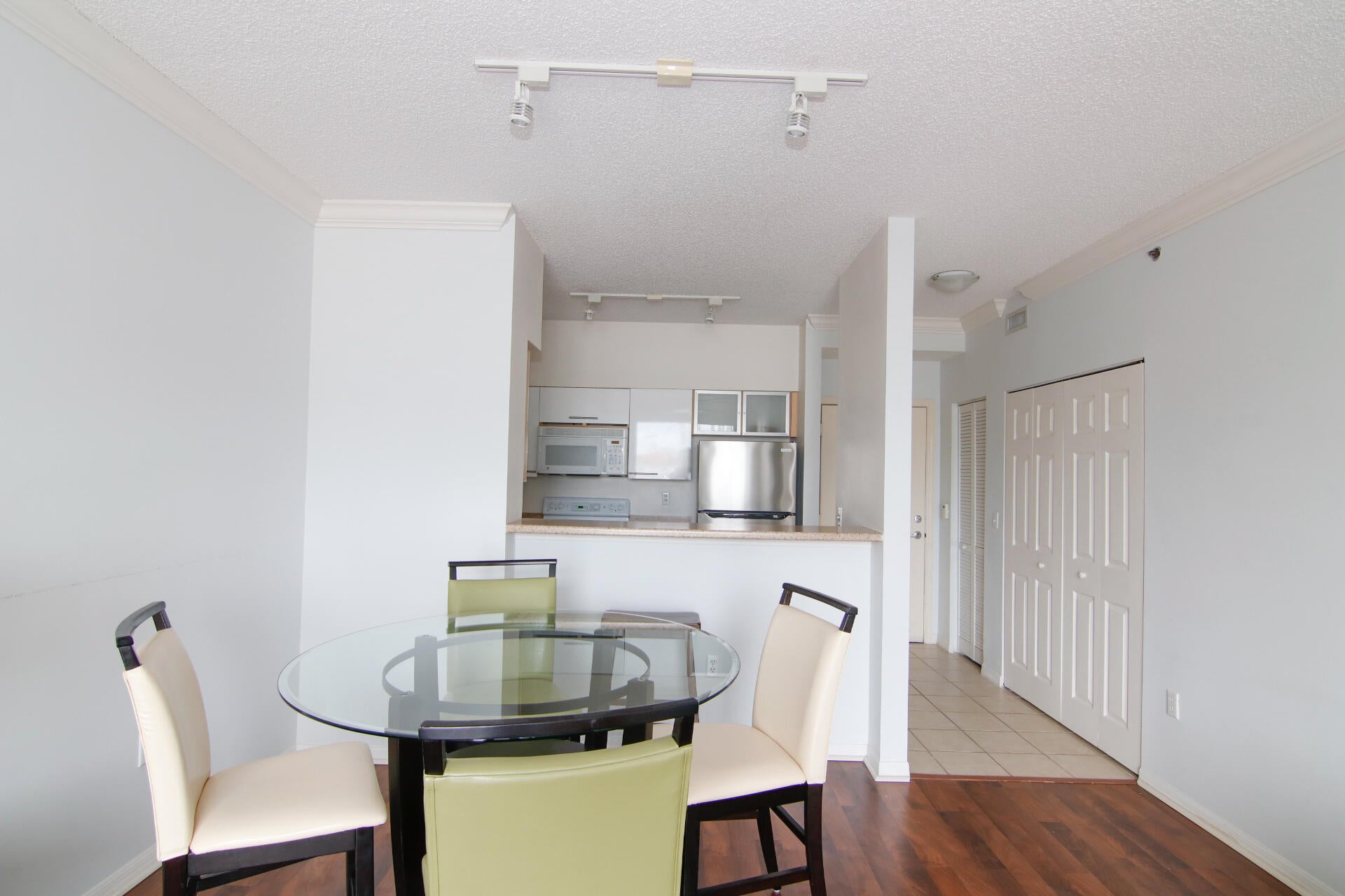 Upgraded clean turnkey unit facing the city with nice wood floors and European cabinets. Tastefully furnished one bedroom and one bathroom spacious unit. This well maintained community offers high-speed internet, cable, two-car parking, fully equipped gym, sparkling pool and spa, BBQ area, billiard, social room and concierge service. The Montecito is situated in the walking distance of City place and Clematis Street entertainment, shopping and unparalleled access to the pulse of the nightlife. You'll have the best urban living at your doorsteps. Easy access to the West Palm Beach airport and I-95 highway.