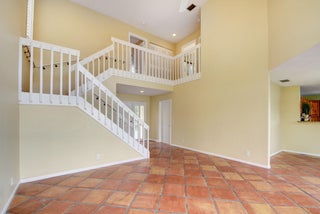 INCREDIBLE LAKE VIEWS WITH 100FT OF DIRECT CULDESAC WATERFRONT! NO CARPET! UPGRADED 3 BEDROOMS 2.5 BATH & 2 CAR GARAGE WITH HUGE PATIO & A VERY LONG DRIVEWAY ON AN OVERSIZED LOT. LIGHT, BRIGHT & AIRY WITH 3 SLIDING DOORS & ADDITIONAL WINDOWS TO APPRECIATE THE EXCEPTIONAL VIEW. TILE DOWNSTAIRS AND LAMINATE STAIRS, LOFT AND BEDROOMS, PLANTATION SHUTTERS, GOURMET KITCHEN INCLUDES UPGRADED WOOD CABINETS, GRANITE & STAINLESS APPLIANCES. SEPERATE LAUNDRY ROOM, UNDER STAIR STORAGE, PRIMARY BATH HAS GRANITE & LARGE TILE SHOWER & LARGE WALK IN CLOSET. WALK TO THE COMMUNITY POOL, SPA & FISHING PIER. LOCATED IN THE HEART OF WELLINGTON. A-RATED SCHOOLS. COME LIVE THE DREAM. ONCE YOU SEE THIS WATER VIEW YOU WON'T WANT TO LEAVE!